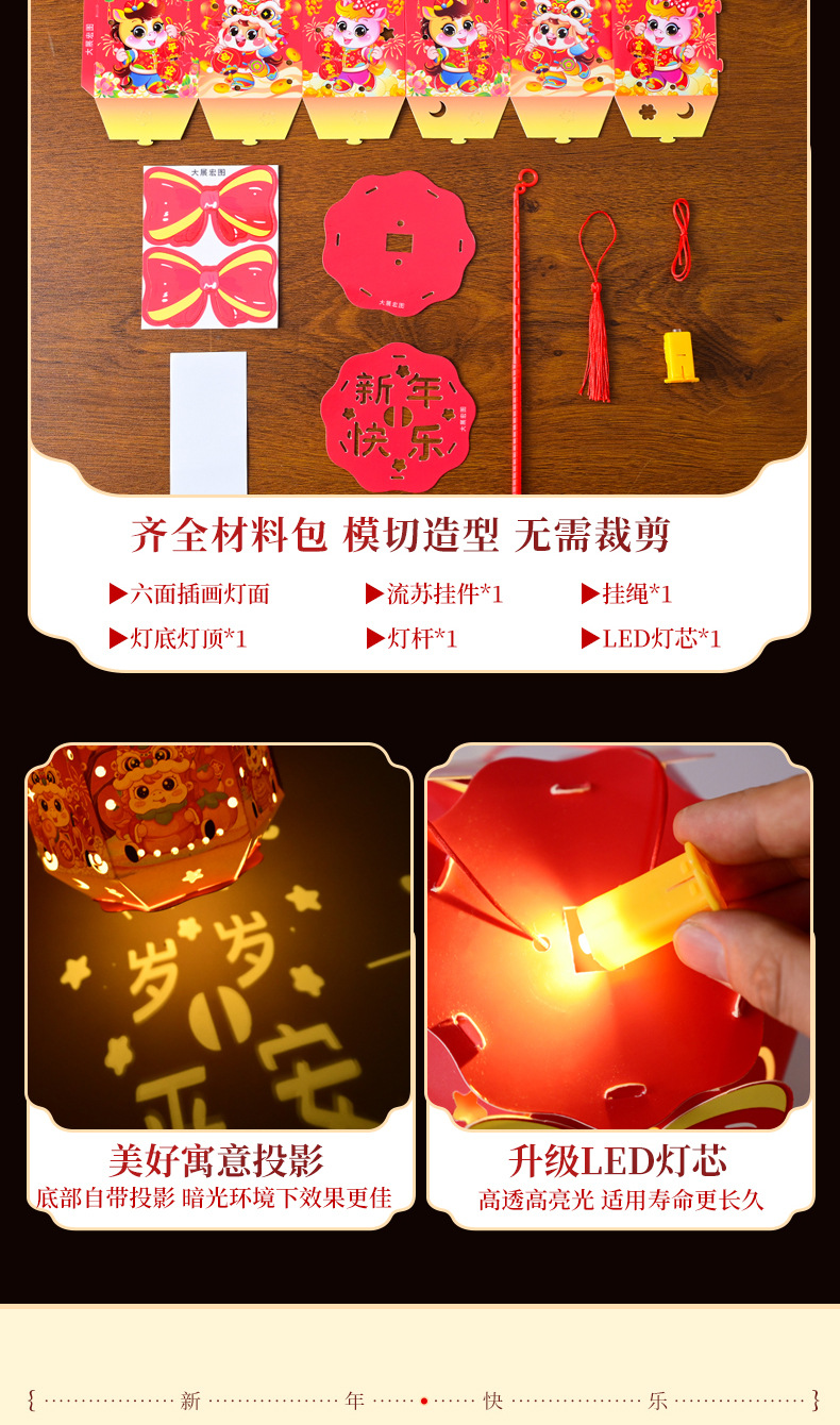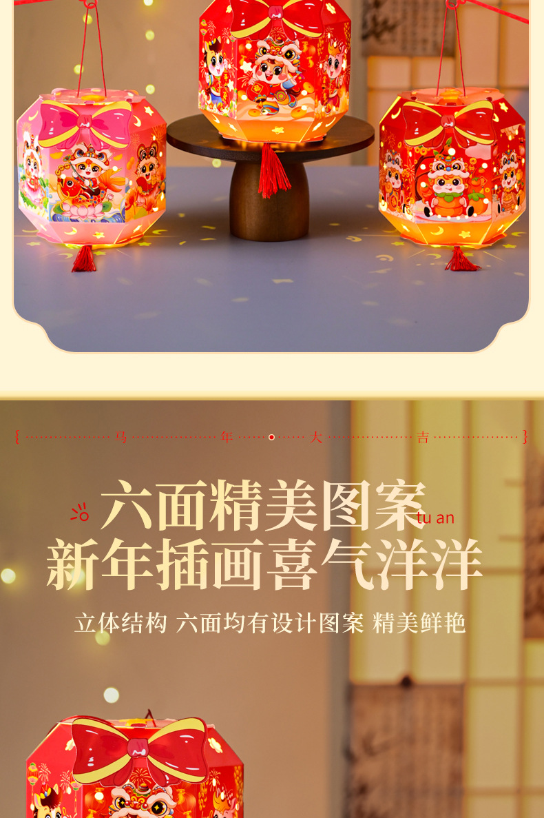 新年灯笼新款卡通灯笼春节花灯手工diy儿童手提小灯笼中秋节