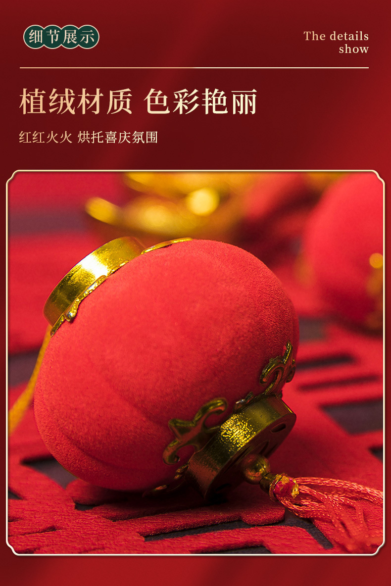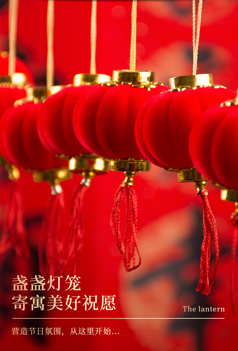 小红灯笼挂件新年2025新款植绒春节过年大门口喜庆绿植装饰品挂饰