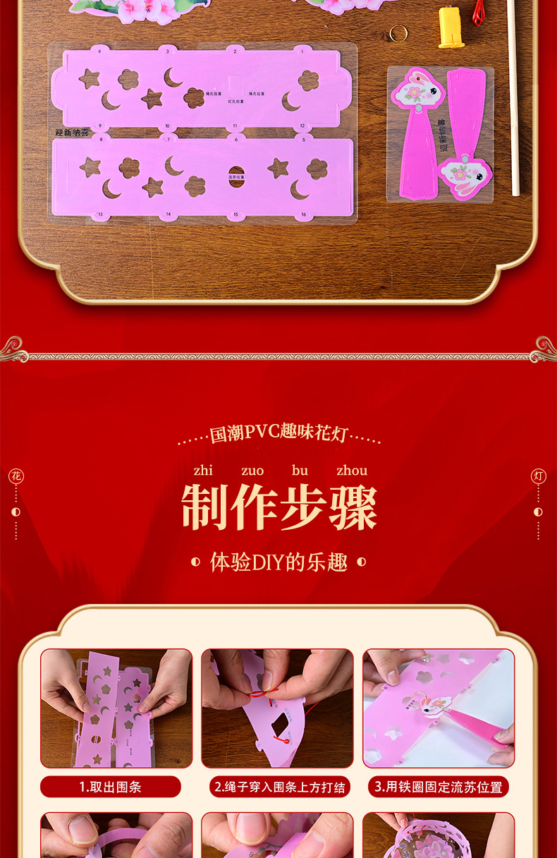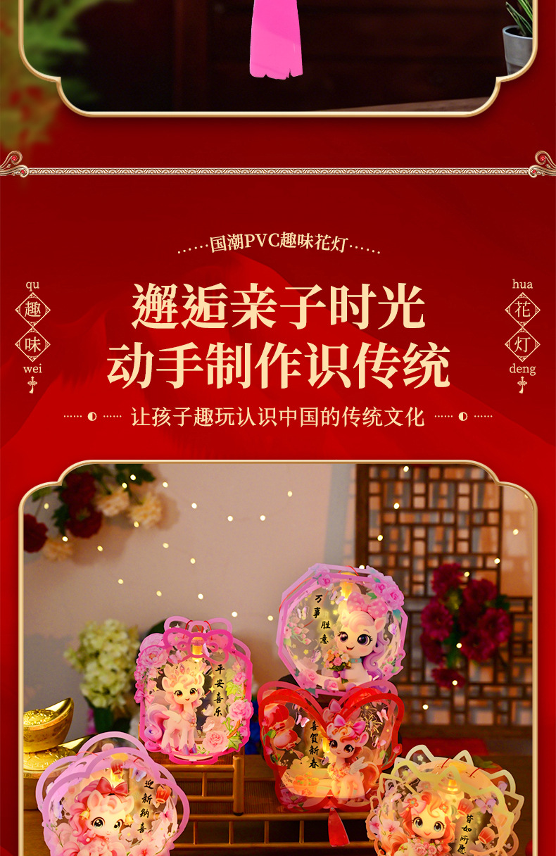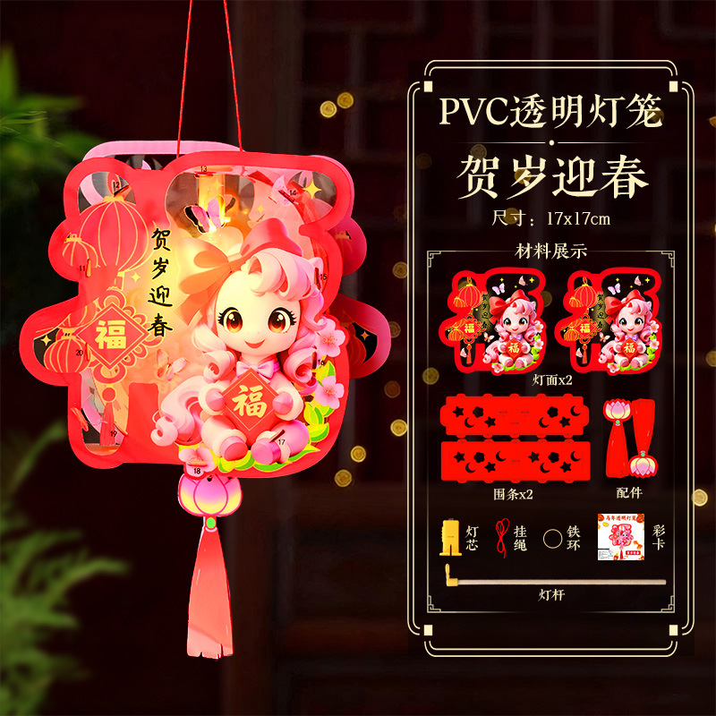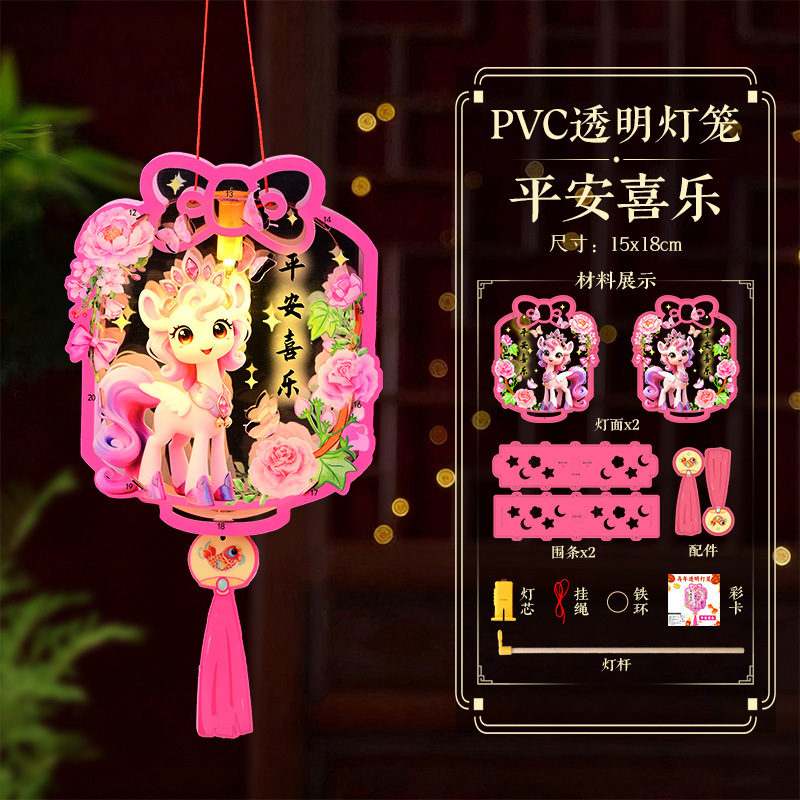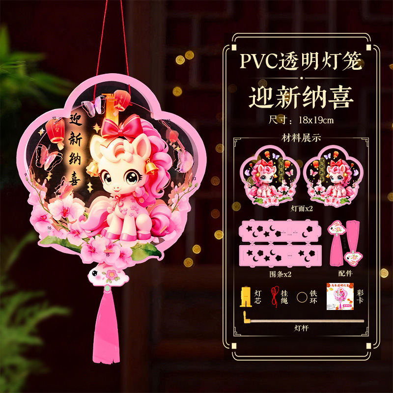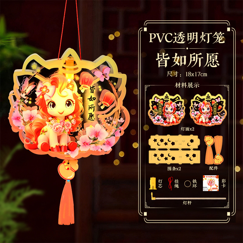 2026年新款马年灯笼透明PVC材质手工diy发光手提灯笼古风材料包