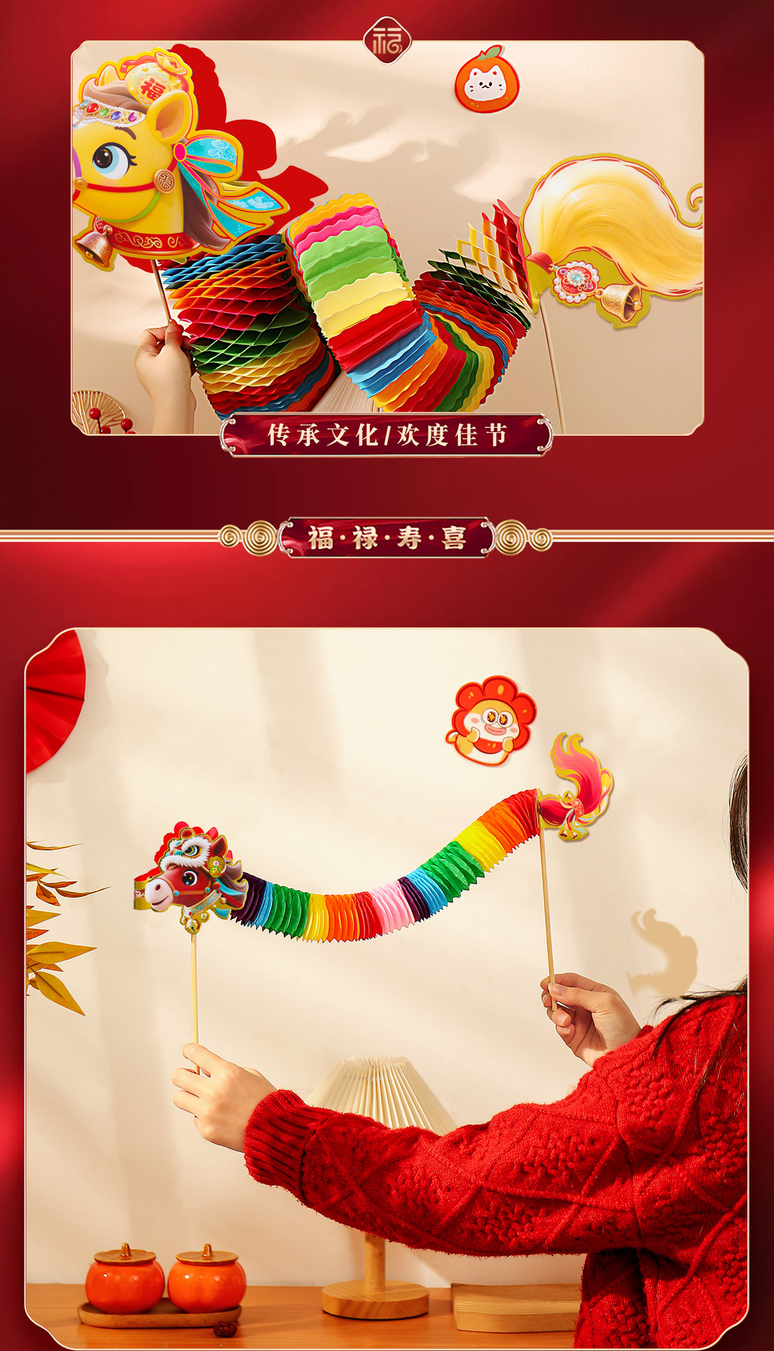 2026新年元旦灯笼儿童马年舞龙装饰手工diy花灯宫灯手提龙灯礼物