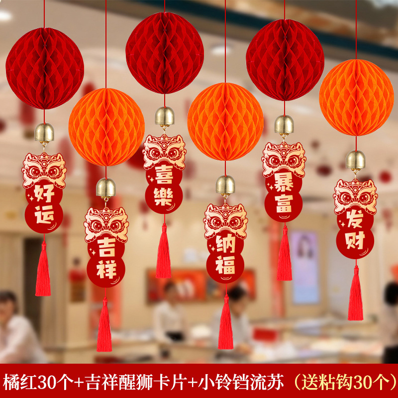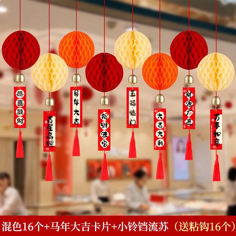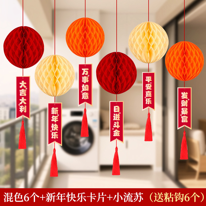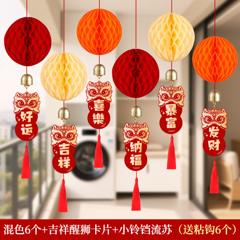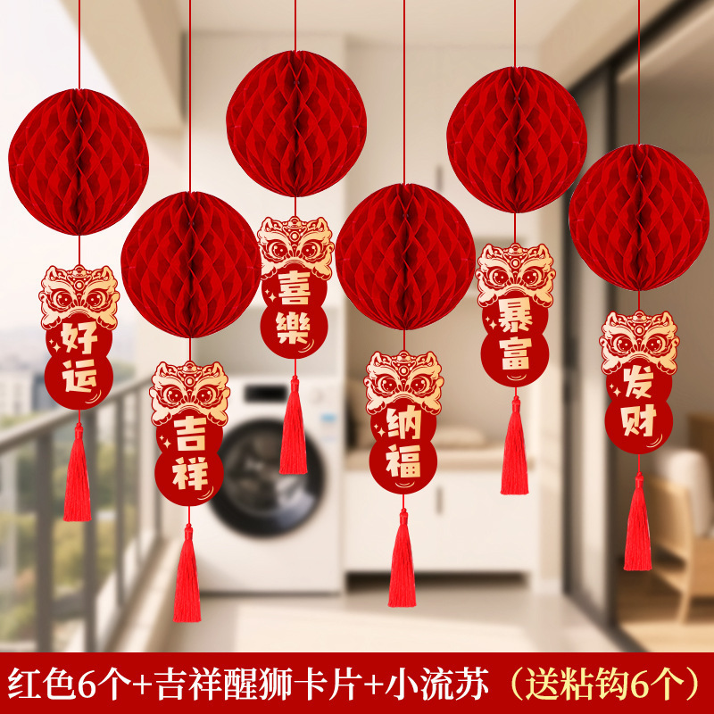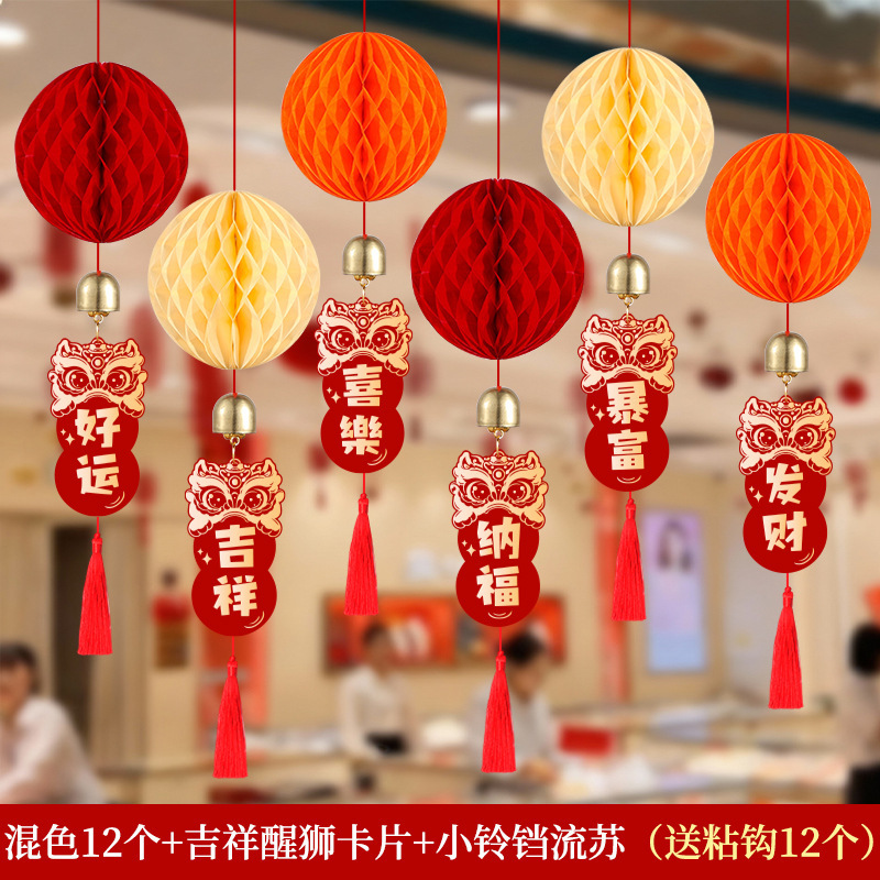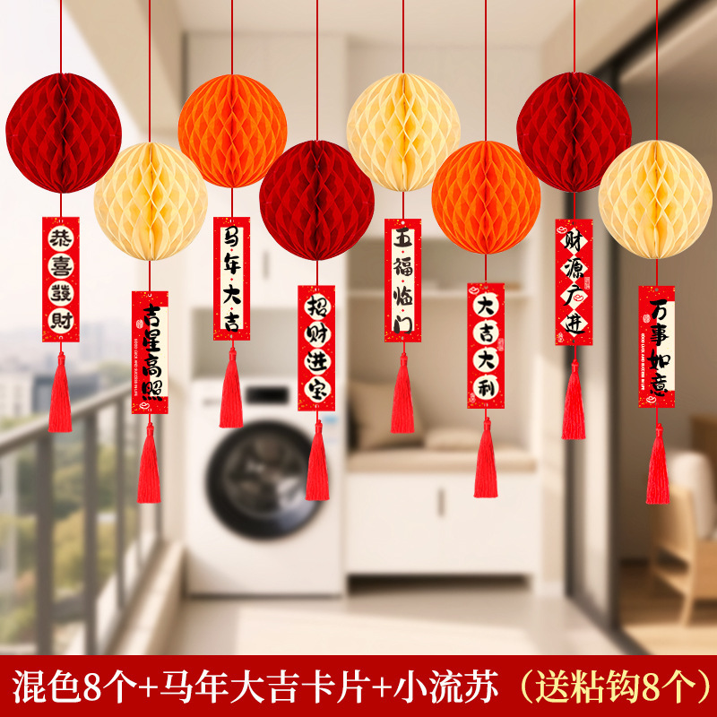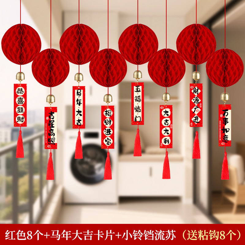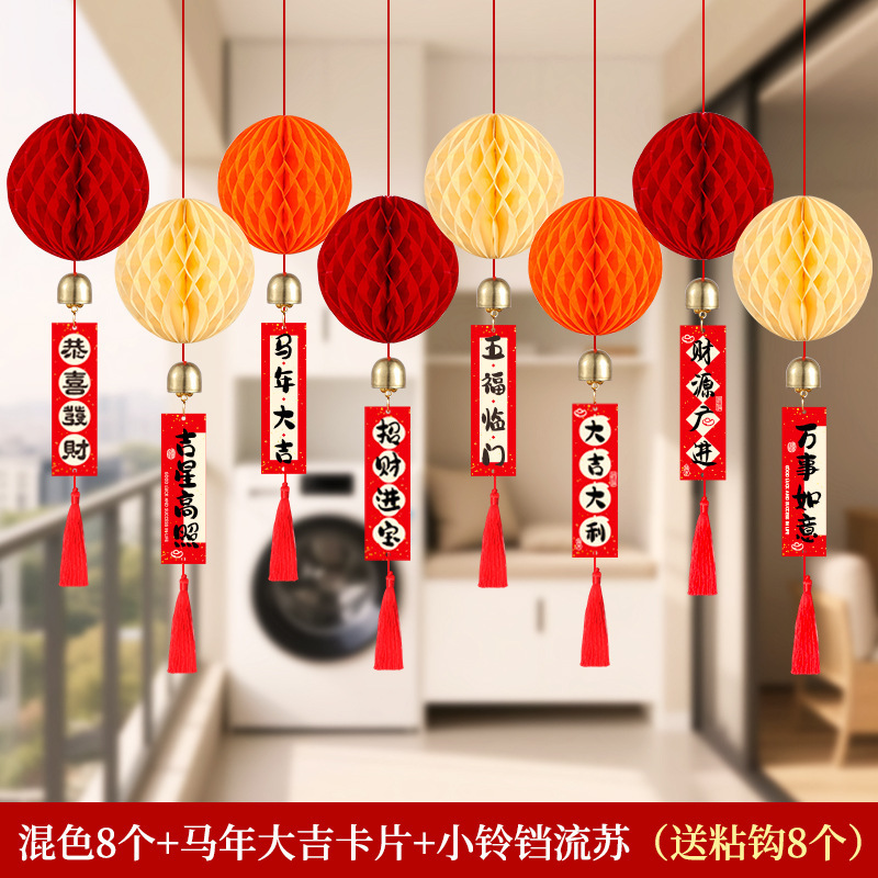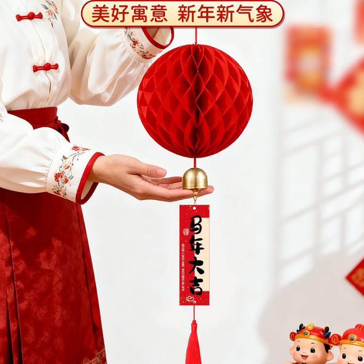 2026新款灯笼挂饰马年红纸蜂窝球布置元旦幼儿园教室氛围场景装饰