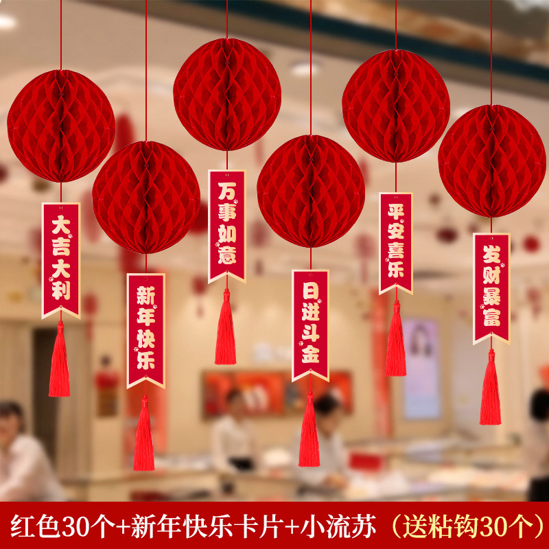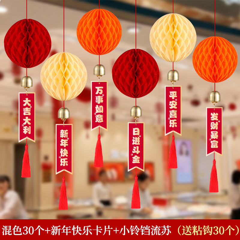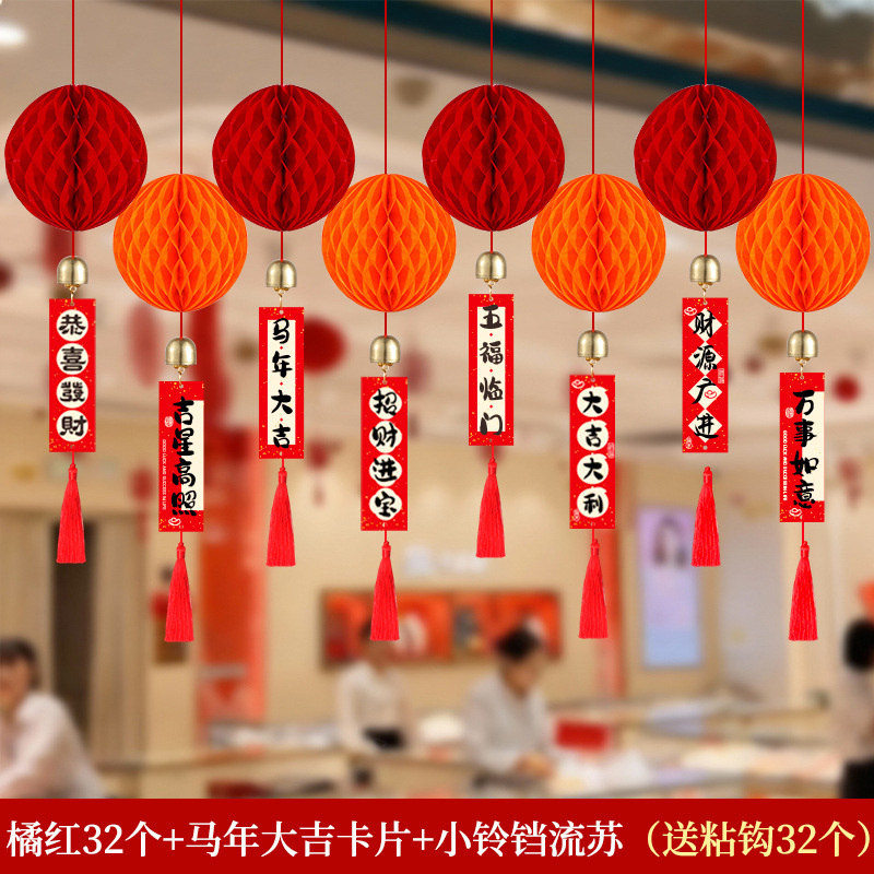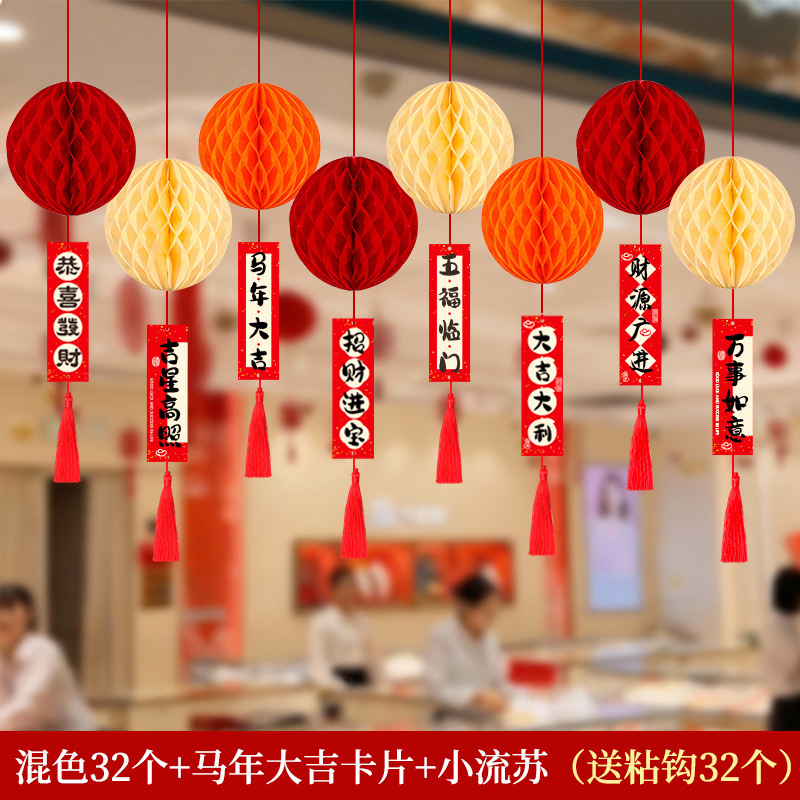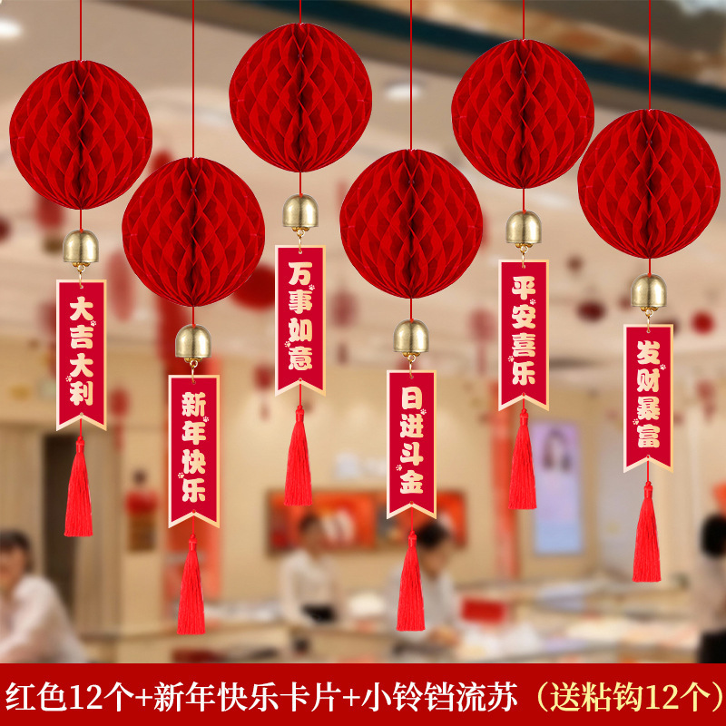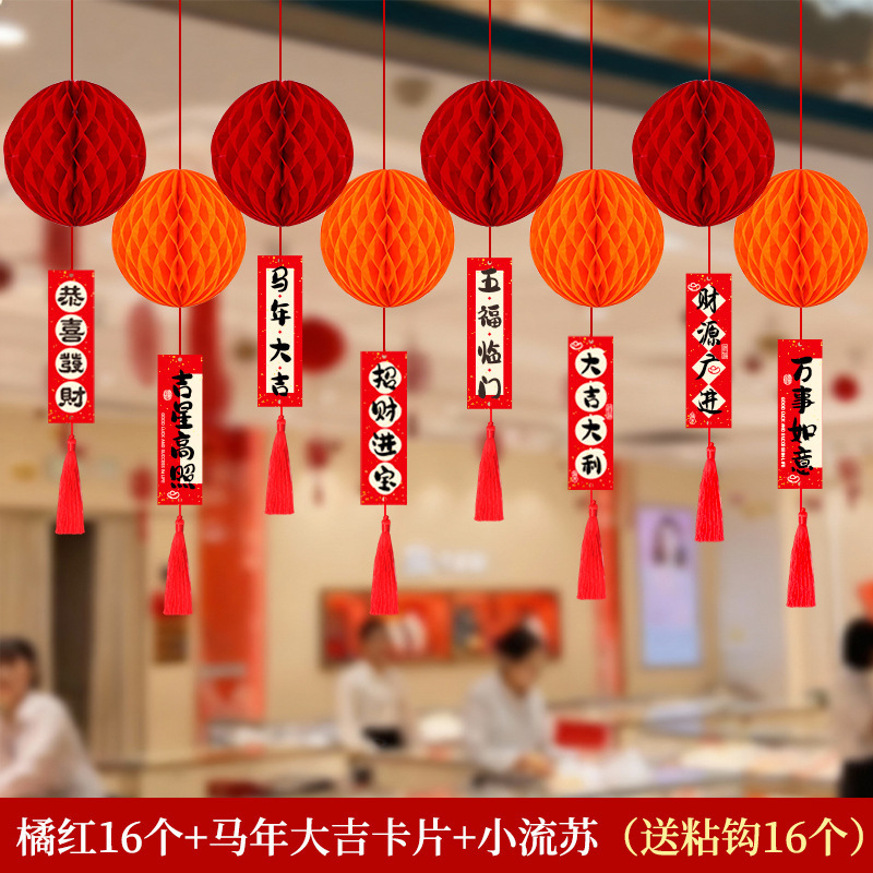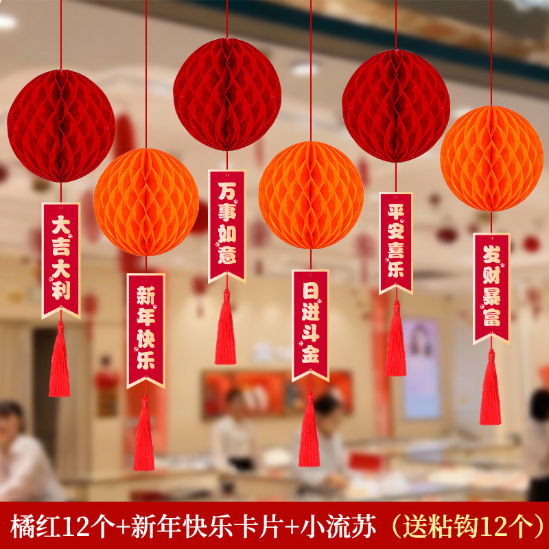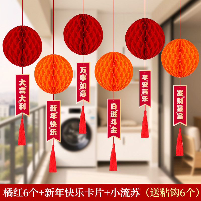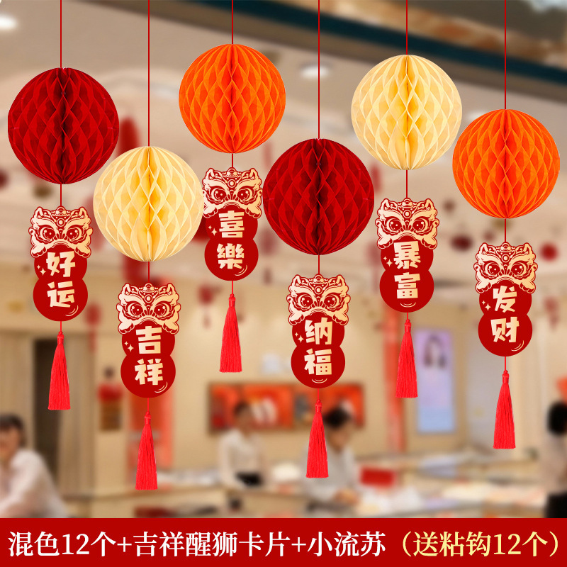 2026新款灯笼挂饰马年红纸蜂窝球布置元旦幼儿园教室氛围场景装饰