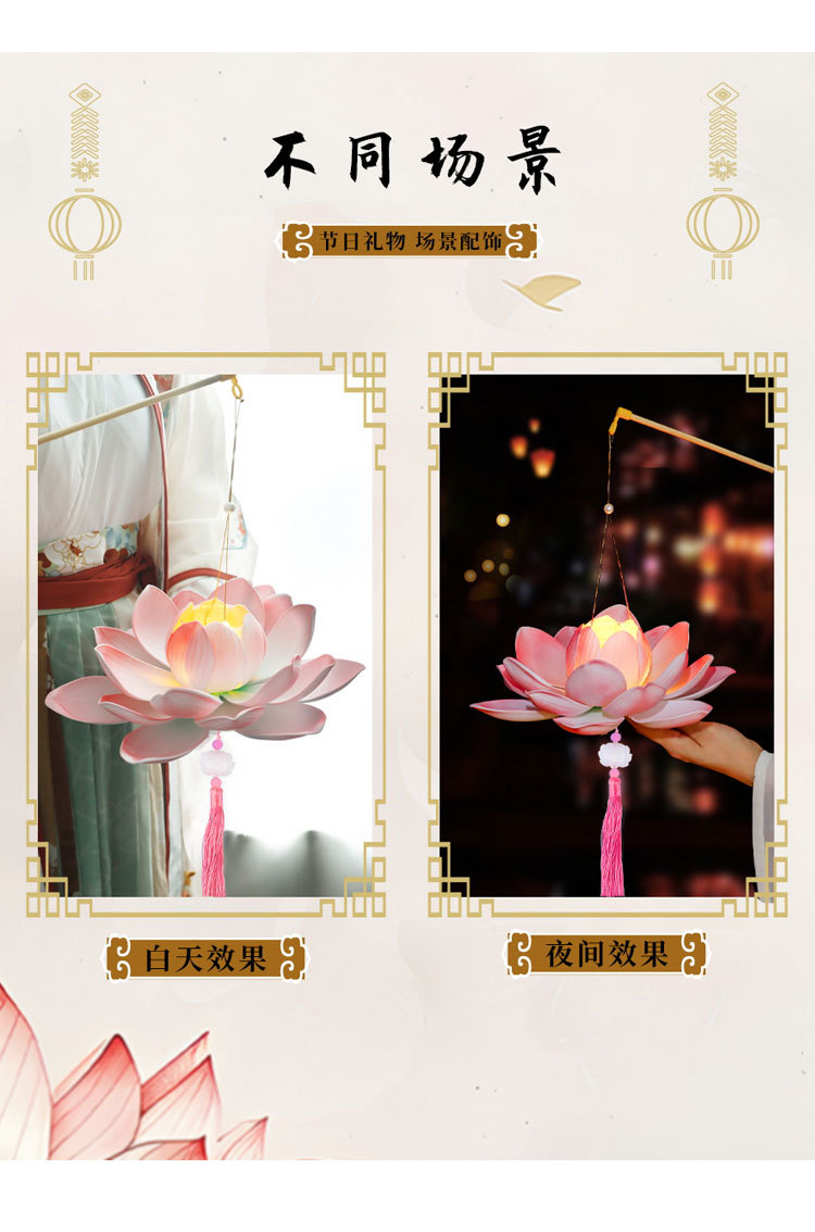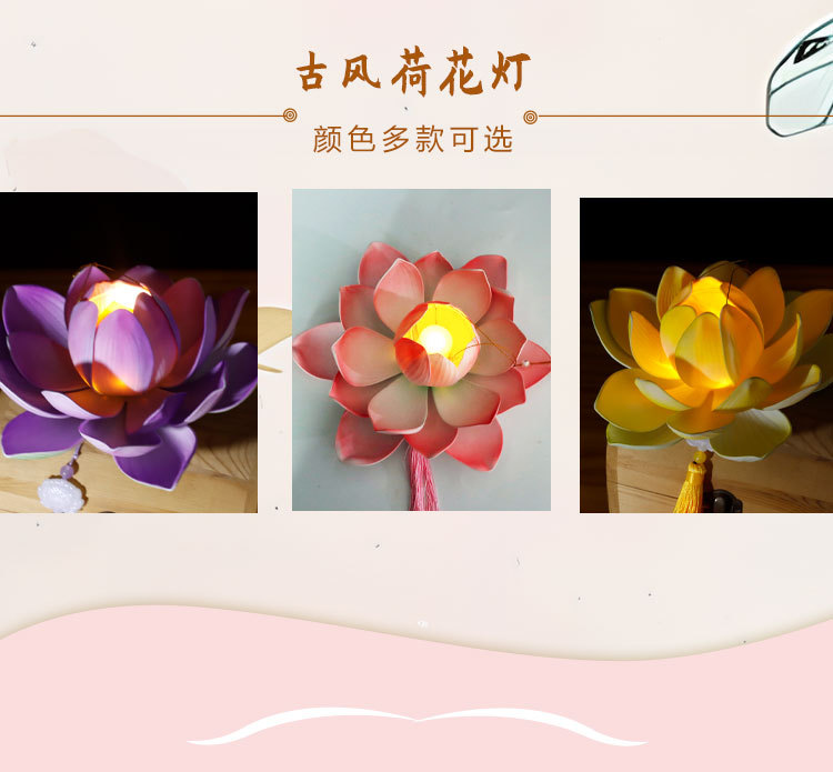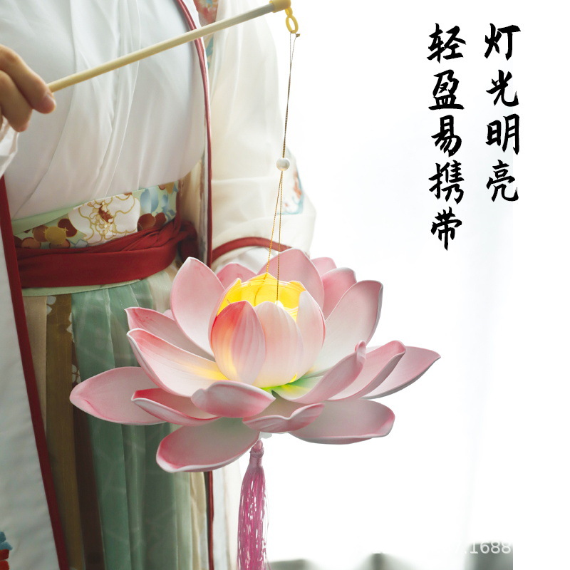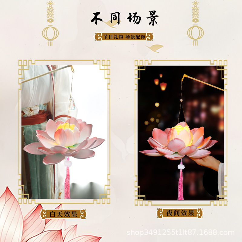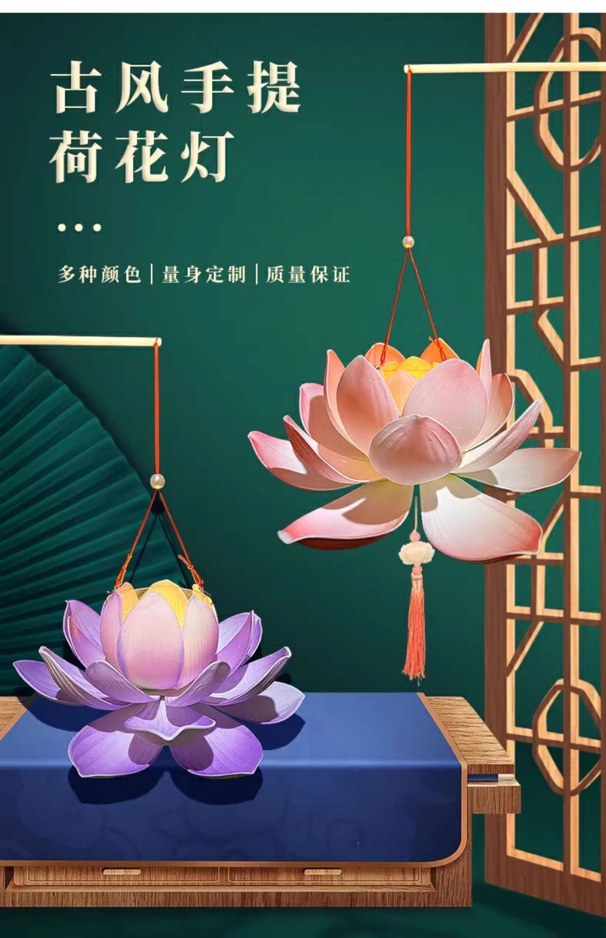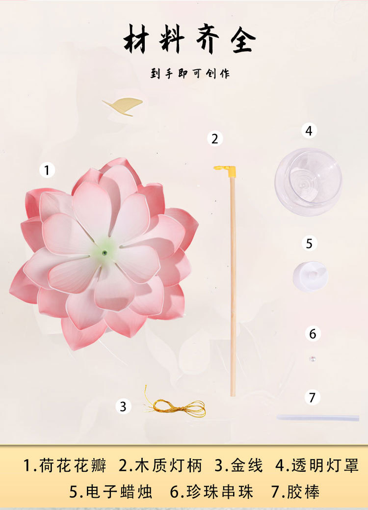 2026马年新年中式古风荷花灯笼手工材料包儿童手提发光道具莲花灯