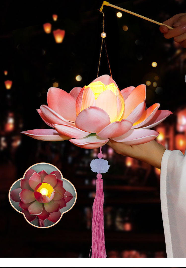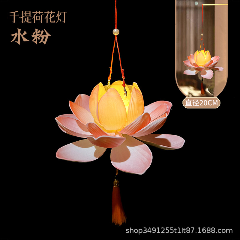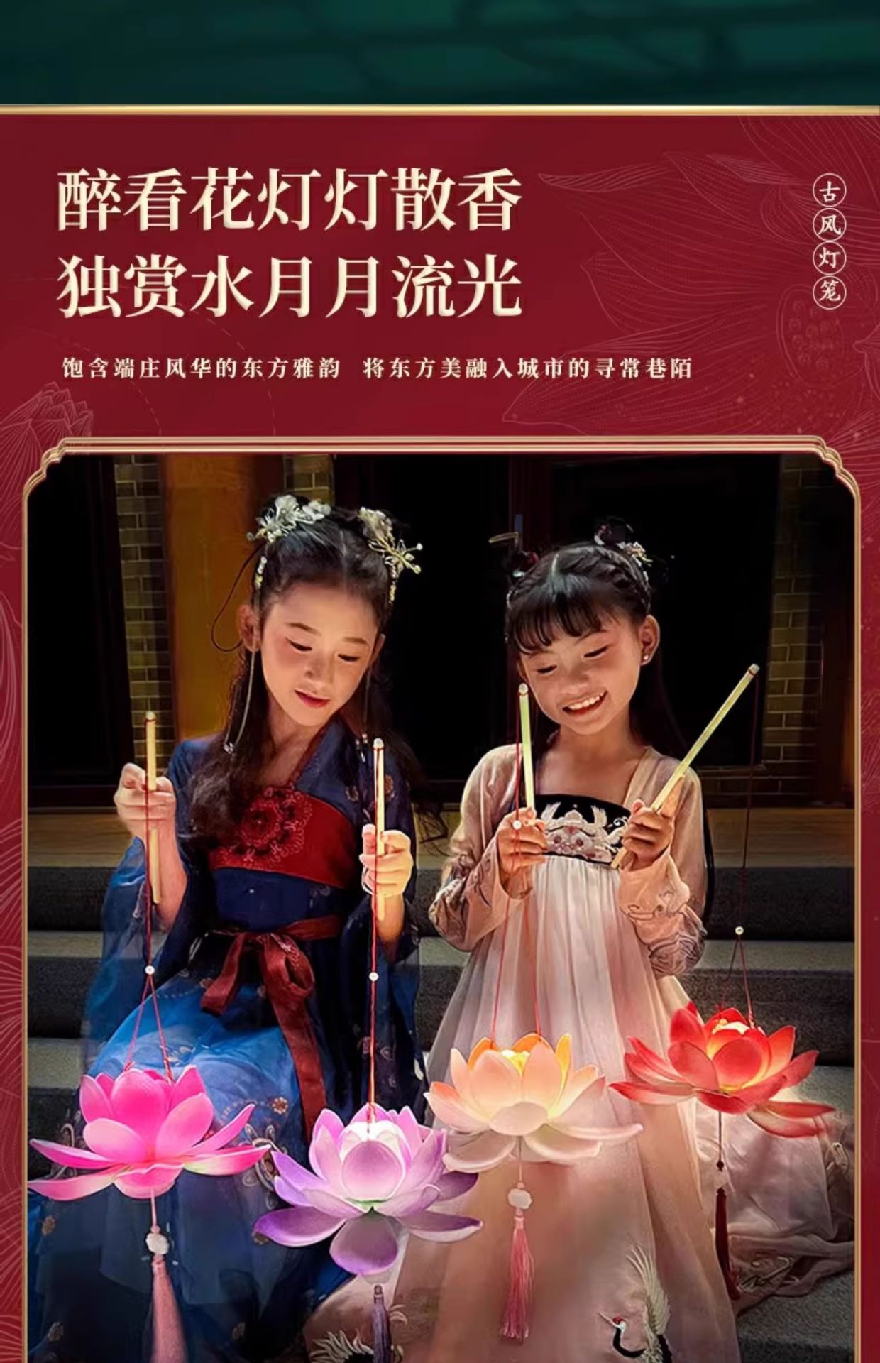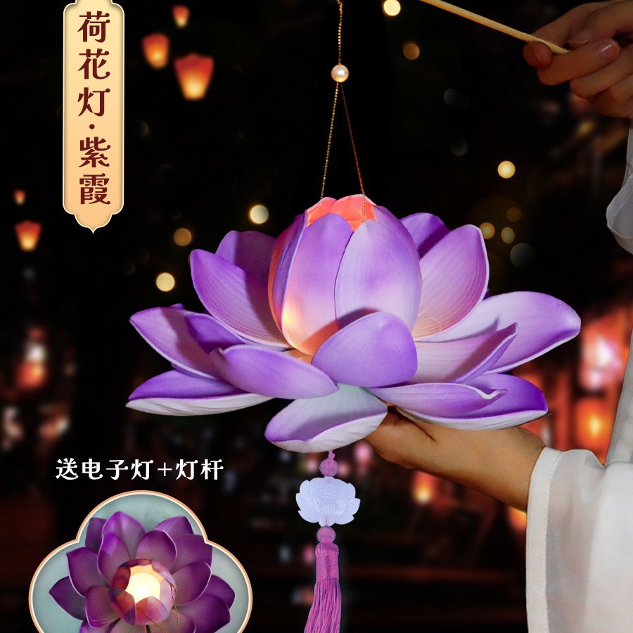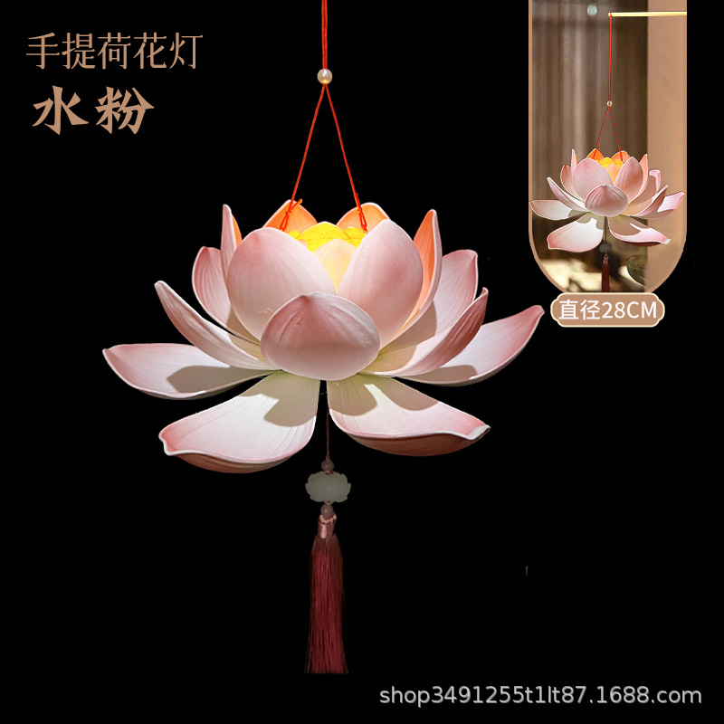 2026马年新年中式古风荷花灯笼手工材料包儿童手提发光道具莲花灯