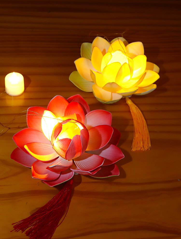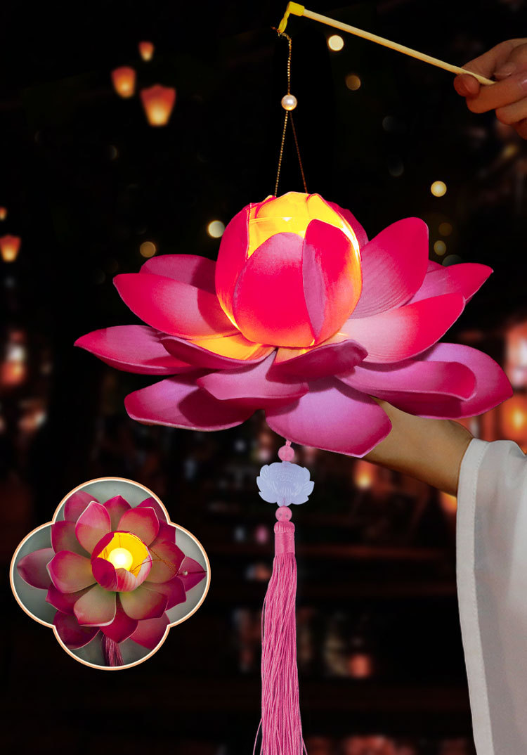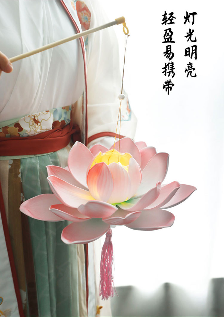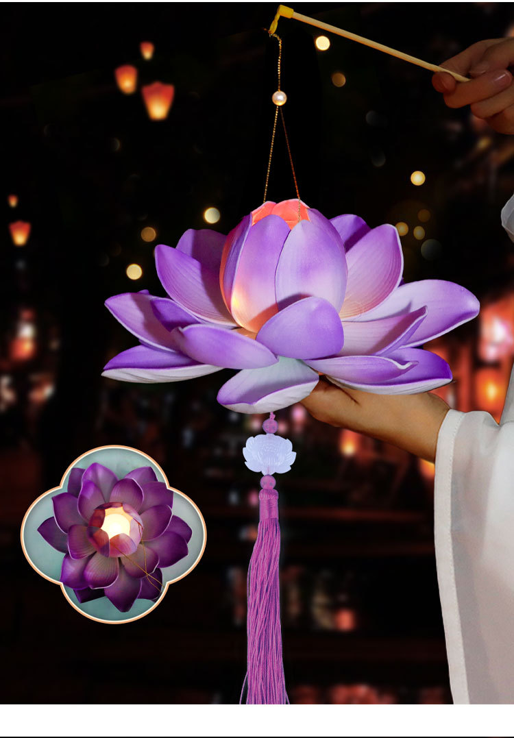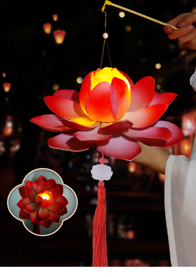 2026马年新年中式古风荷花灯笼手工材料包儿童手提发光道具莲花灯