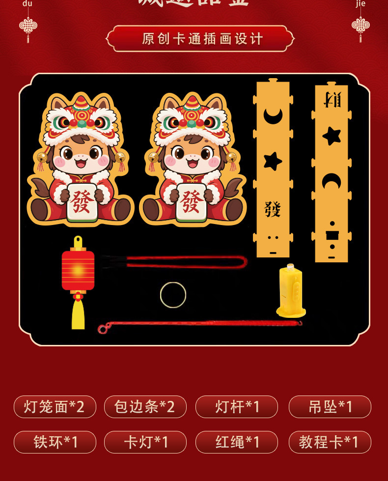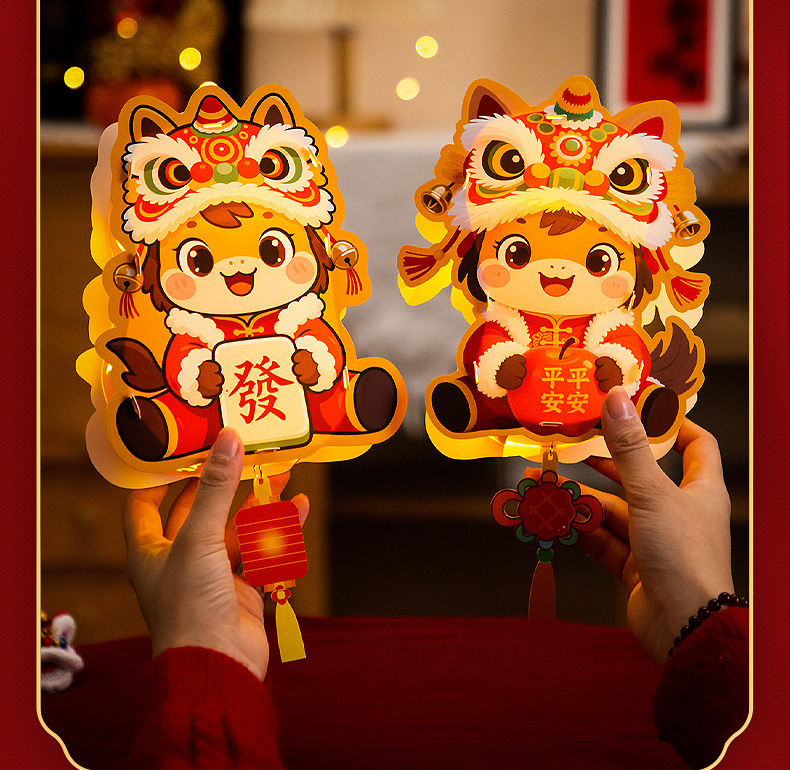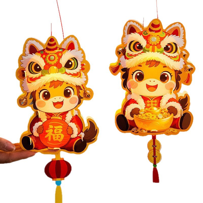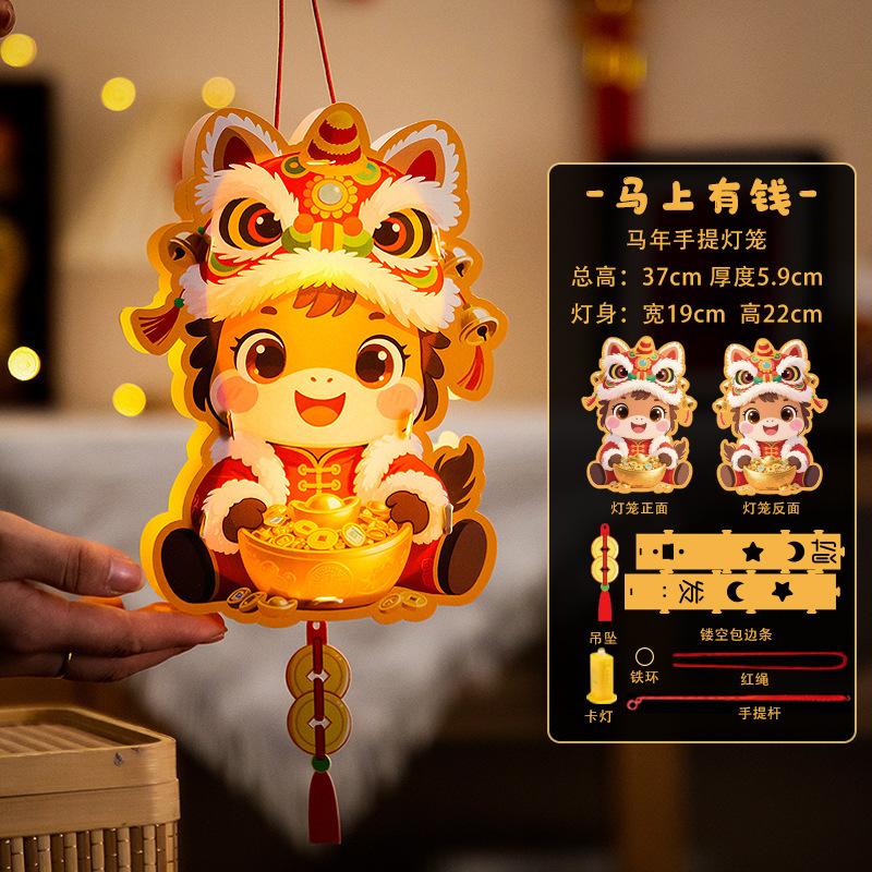 2026年新款马年灯笼手工diy材料包 卡通儿童手提发光新年国潮花灯