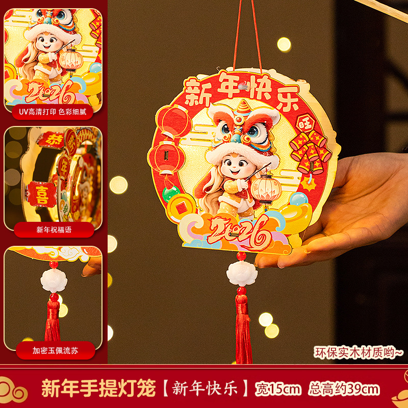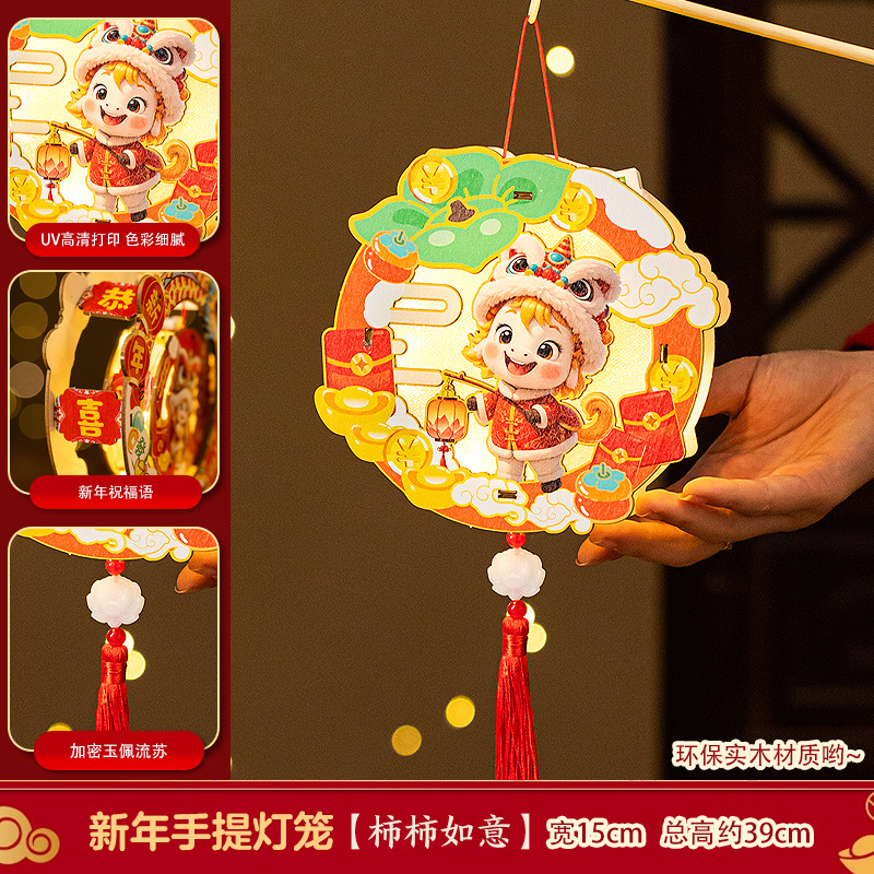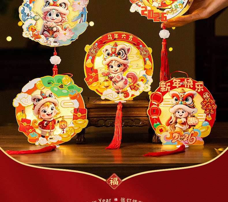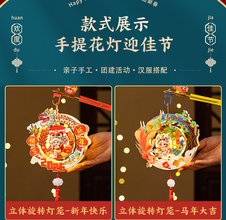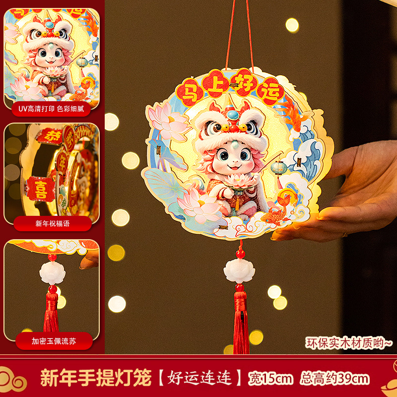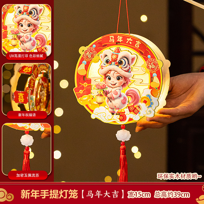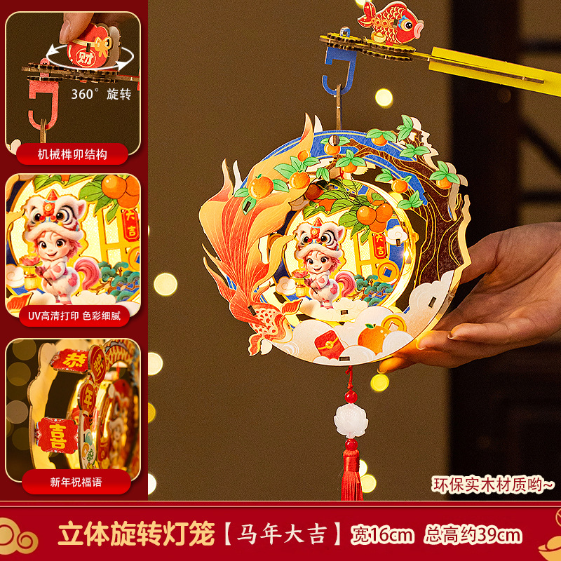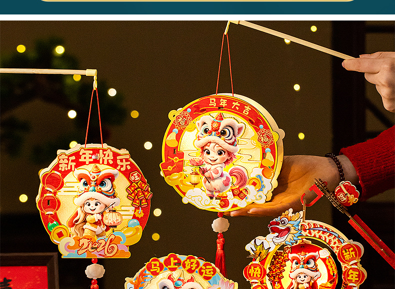 2026新年元旦马年灯笼发光手提花灯儿童手工diy材料包小宫灯摆摊