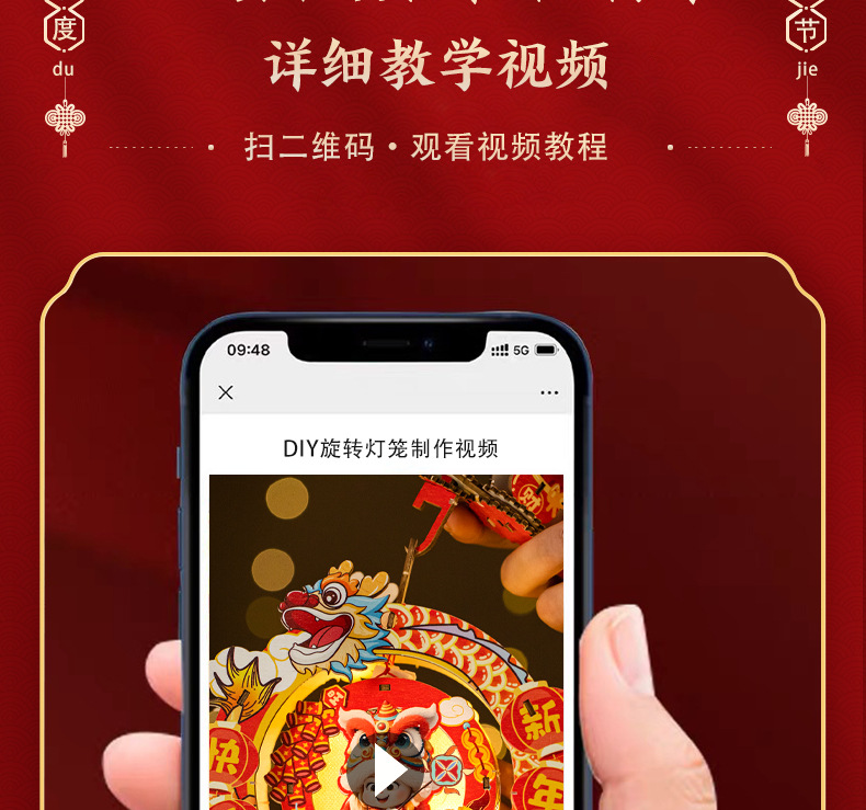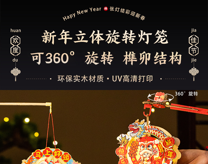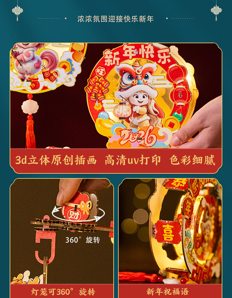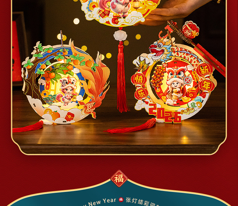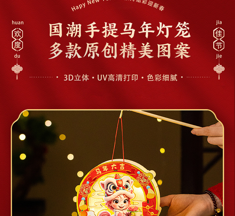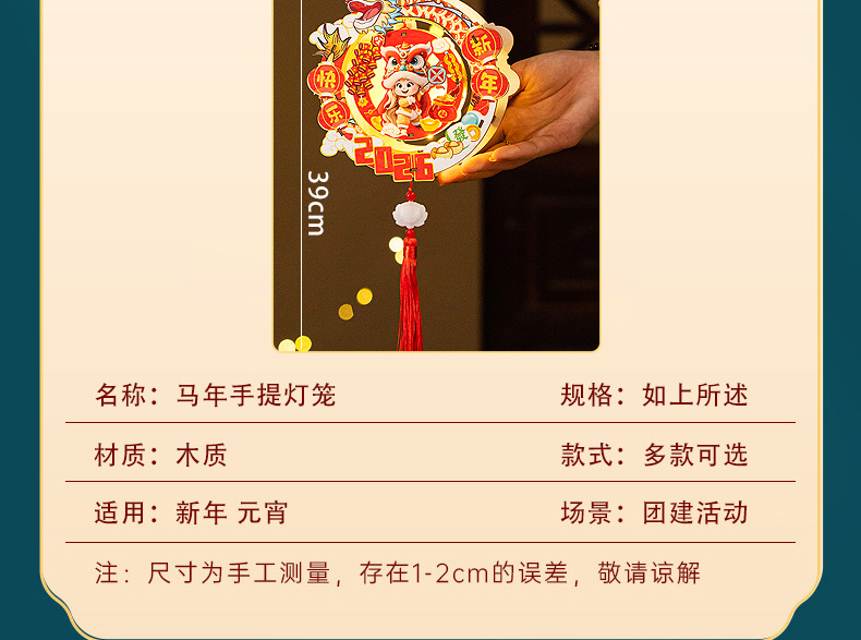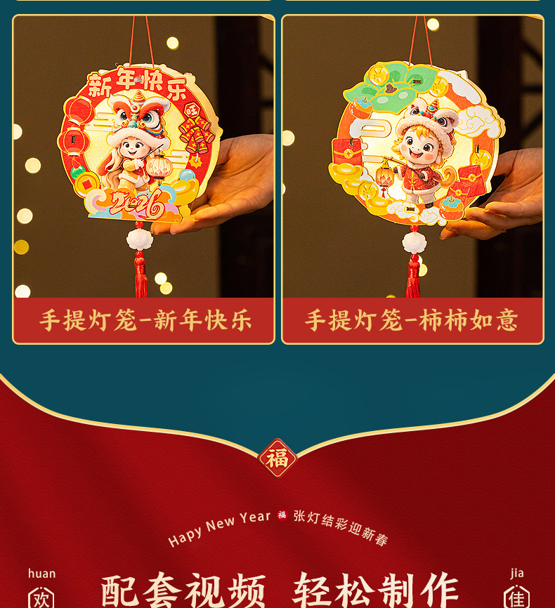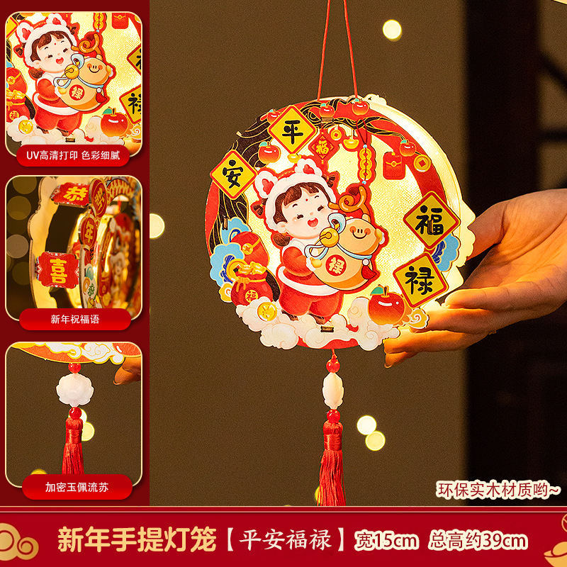 2026新年元旦马年灯笼发光手提花灯儿童手工diy材料包小宫灯摆摊