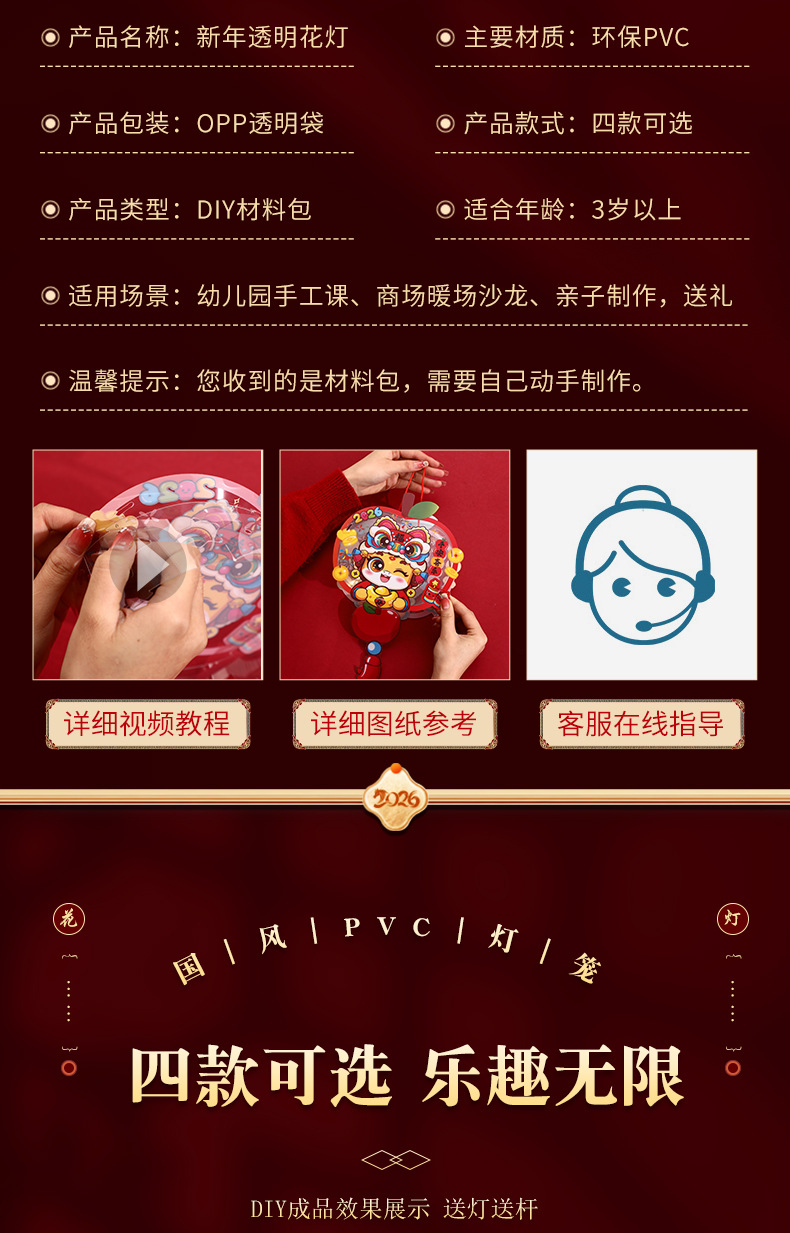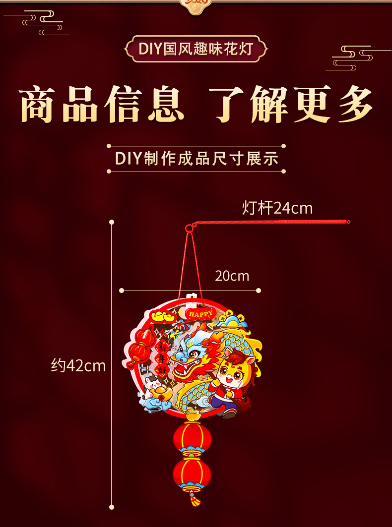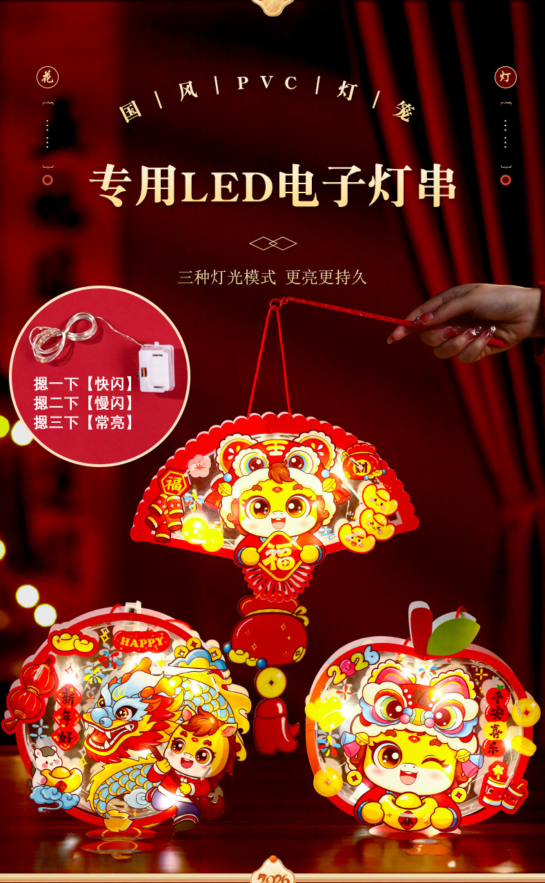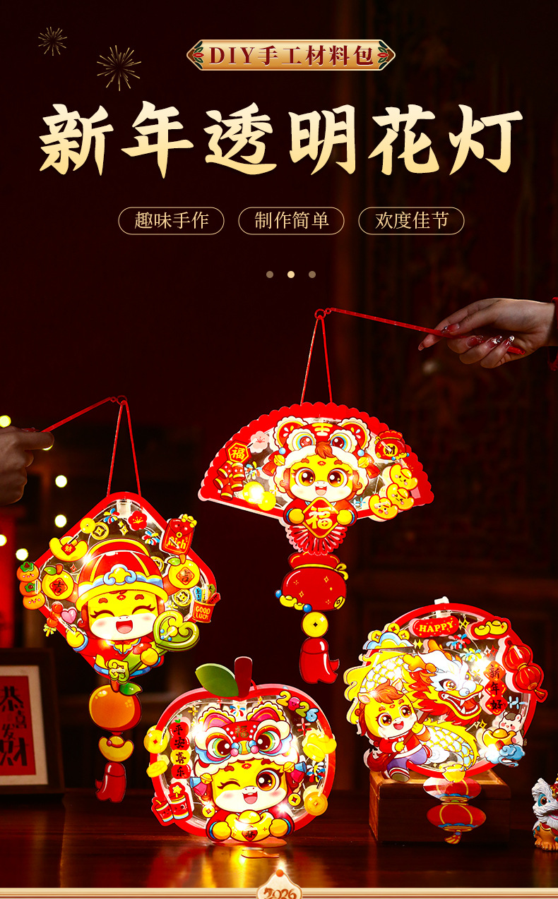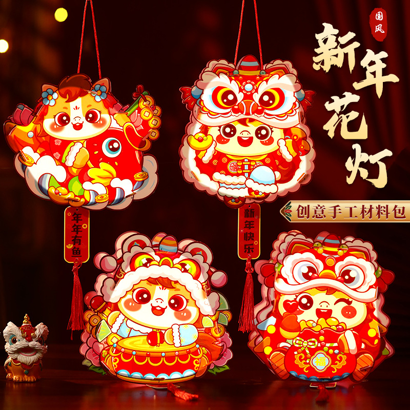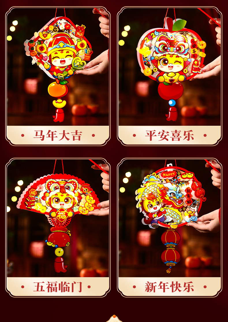 2026元旦新年马年灯笼手提发光花灯儿童卡通手工diy装饰宫灯挂饰