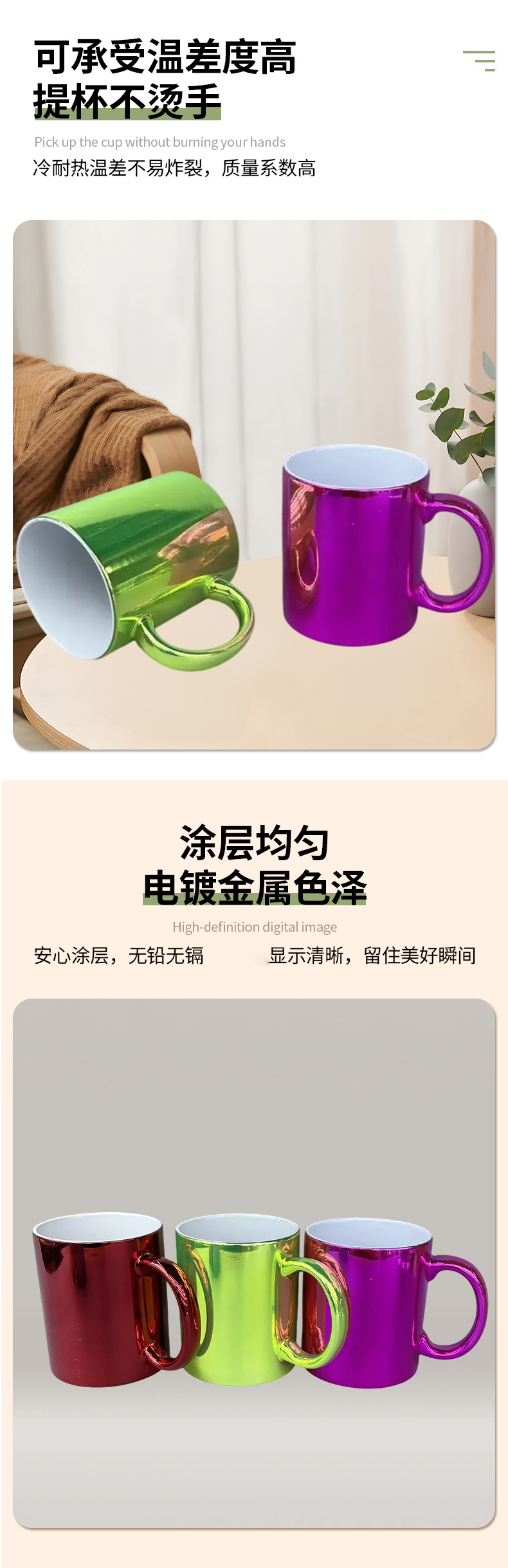 热转印马克杯mug涂层马克杯diy白杯定 制电镀热升华马克杯批发
