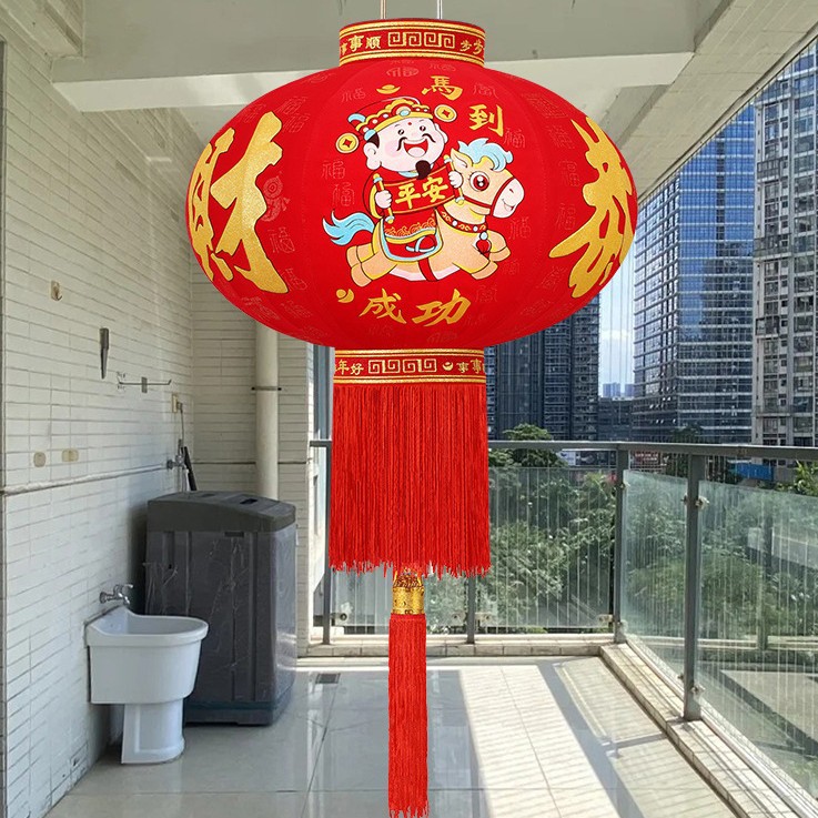 新年春节大红植绒灯笼大门口一对喜庆装饰马年大红福字灯笼批发