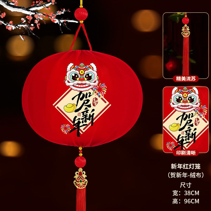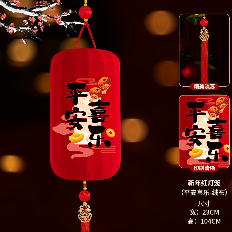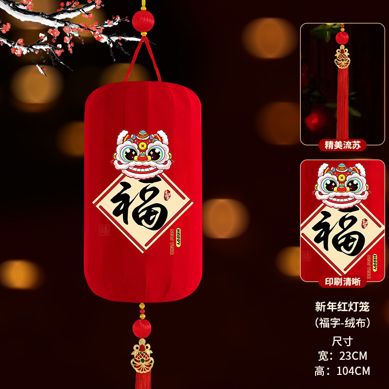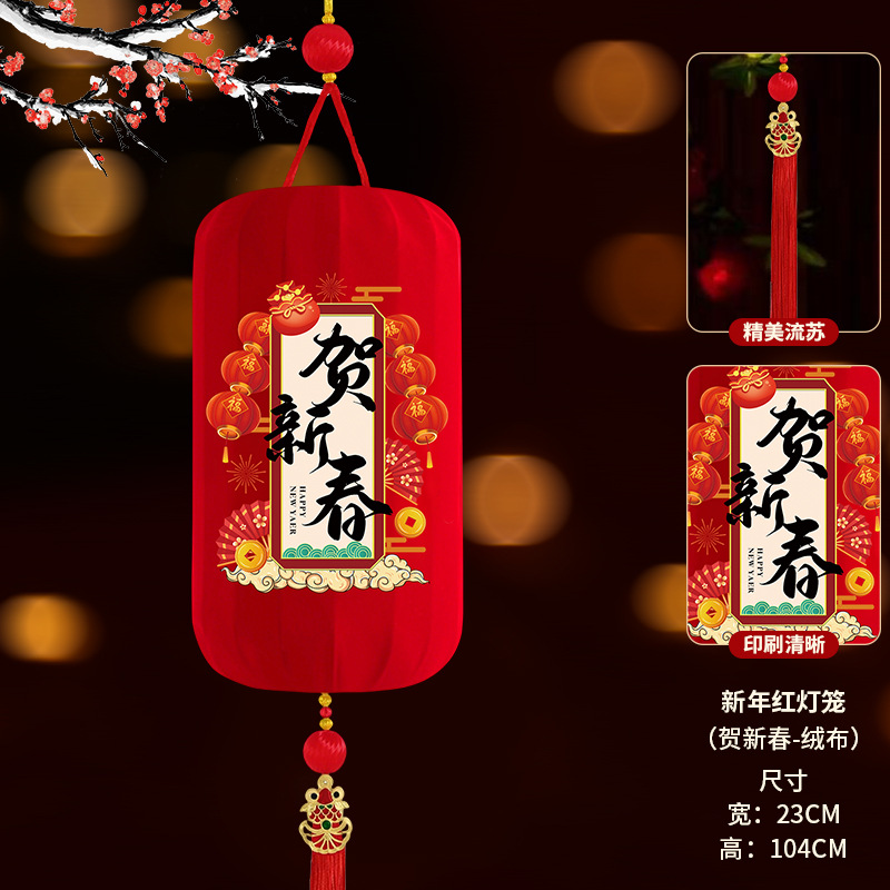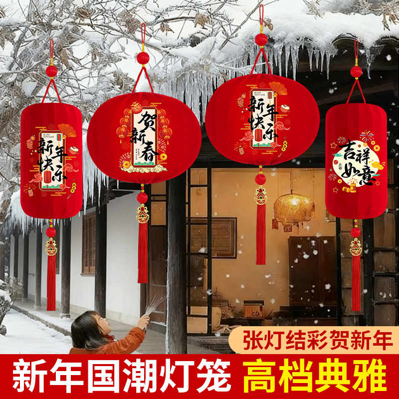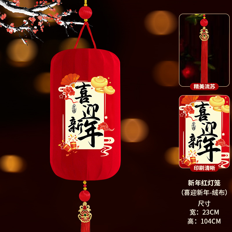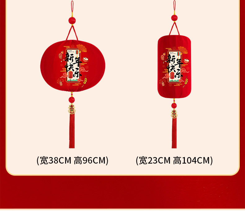 2026新年灯笼红色复古灯笼长条形植绒灯笼马年春节装饰冬瓜灯笼
