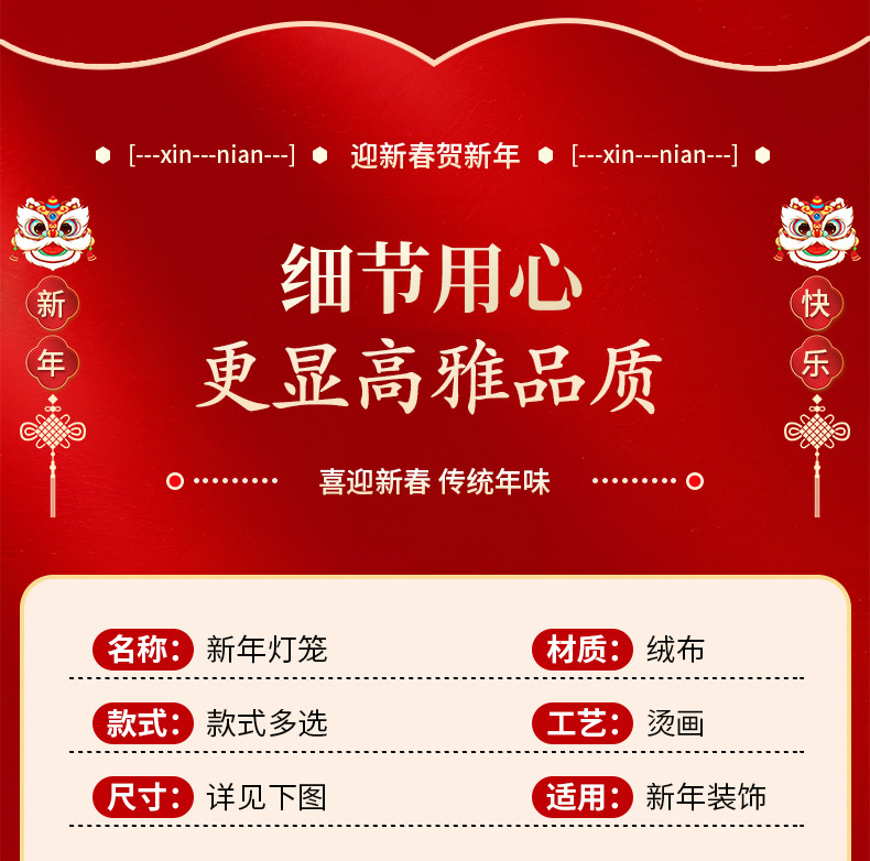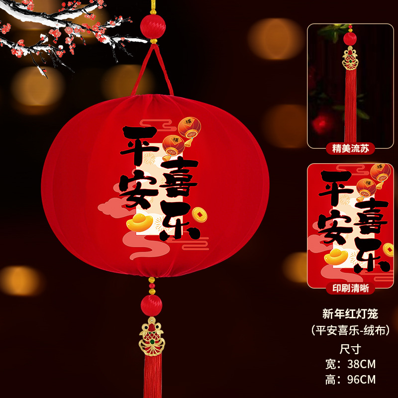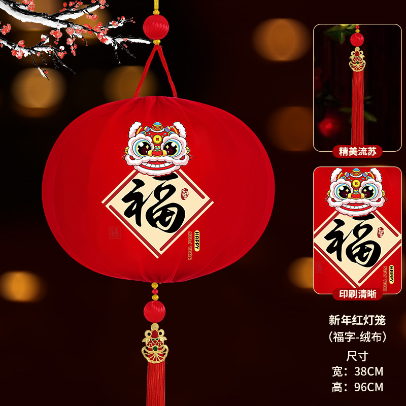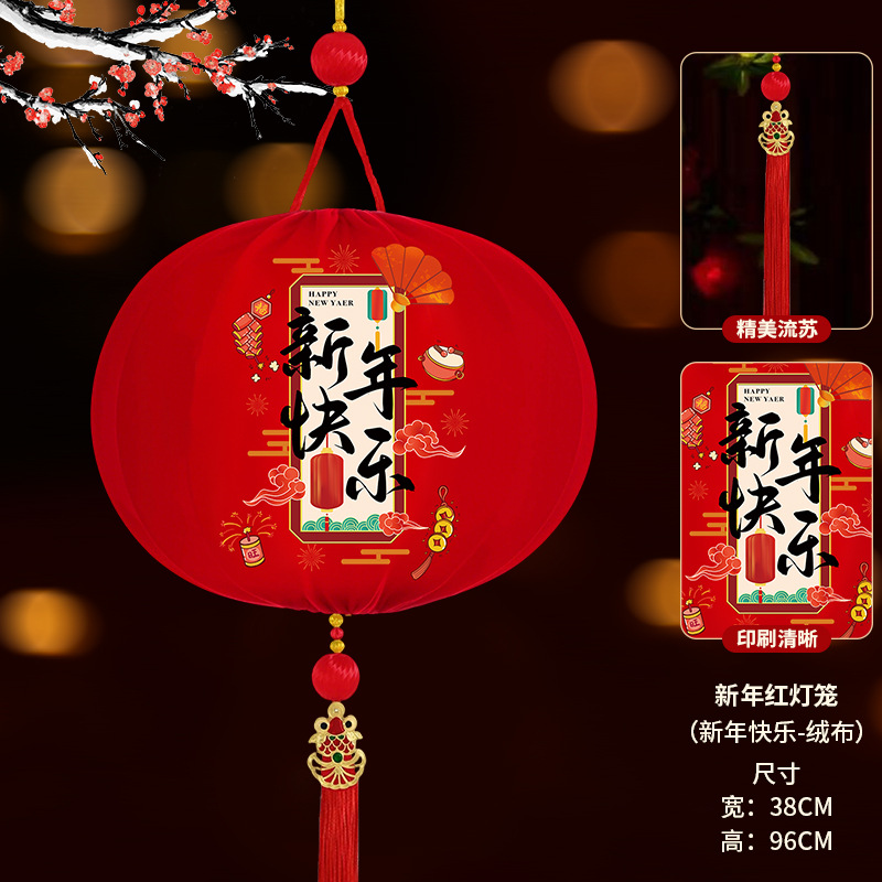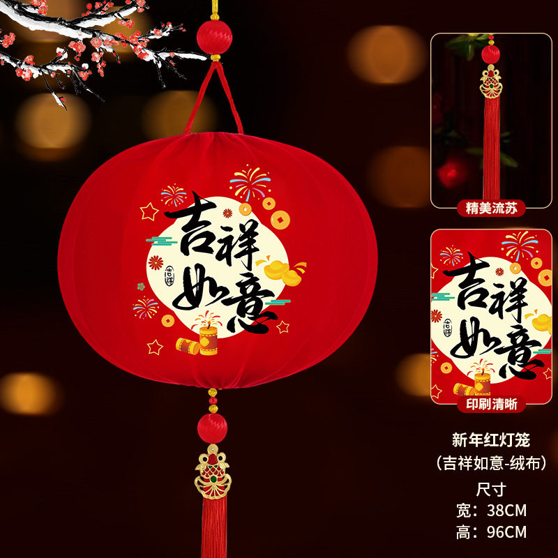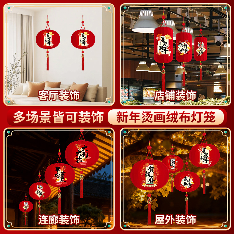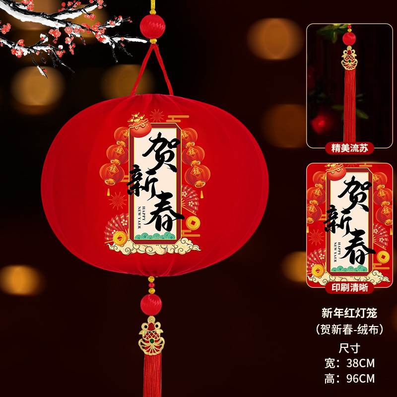 2026新年灯笼红色复古灯笼长条形植绒灯笼马年春节装饰冬瓜灯笼