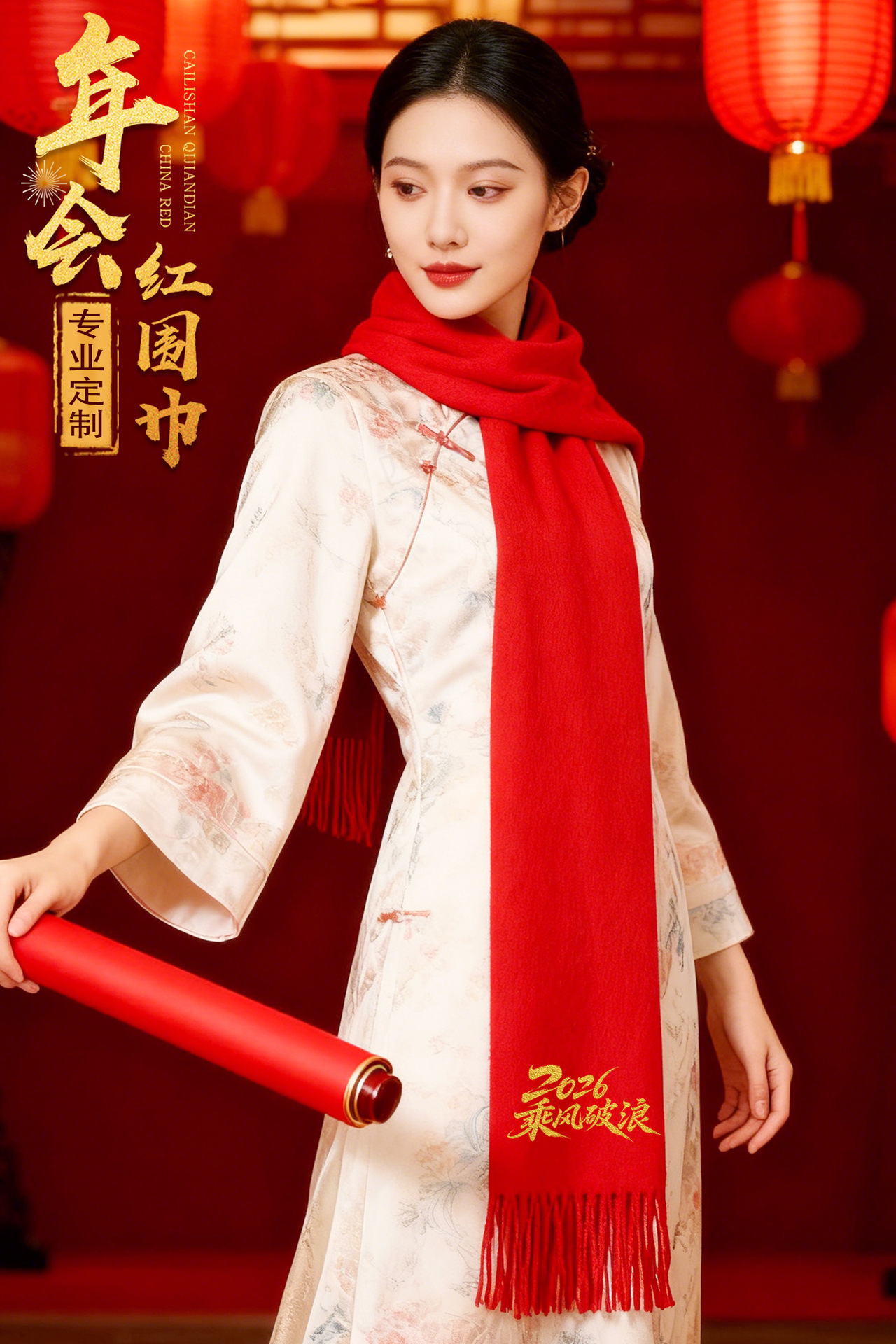 公司年会围巾定制开业庆典宗祠活动聚会红色围脖礼品印字刺绣