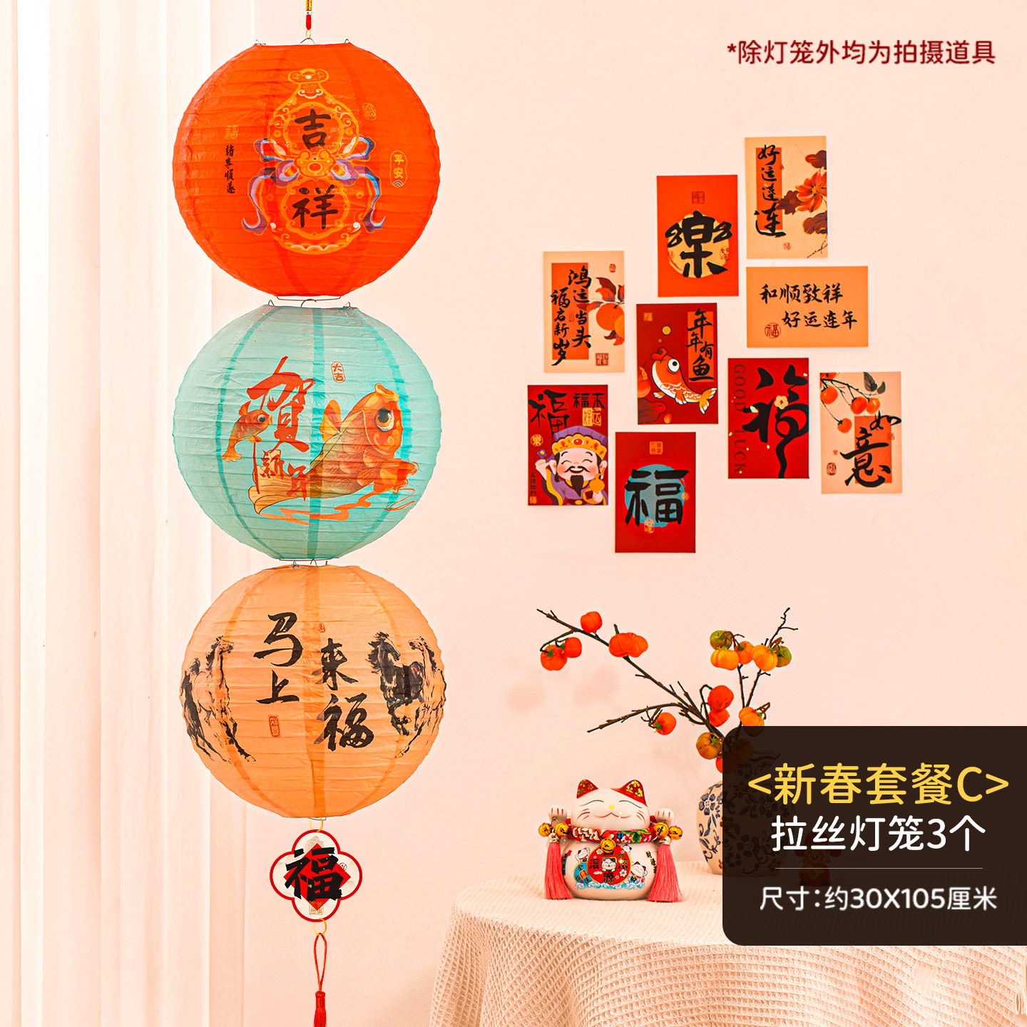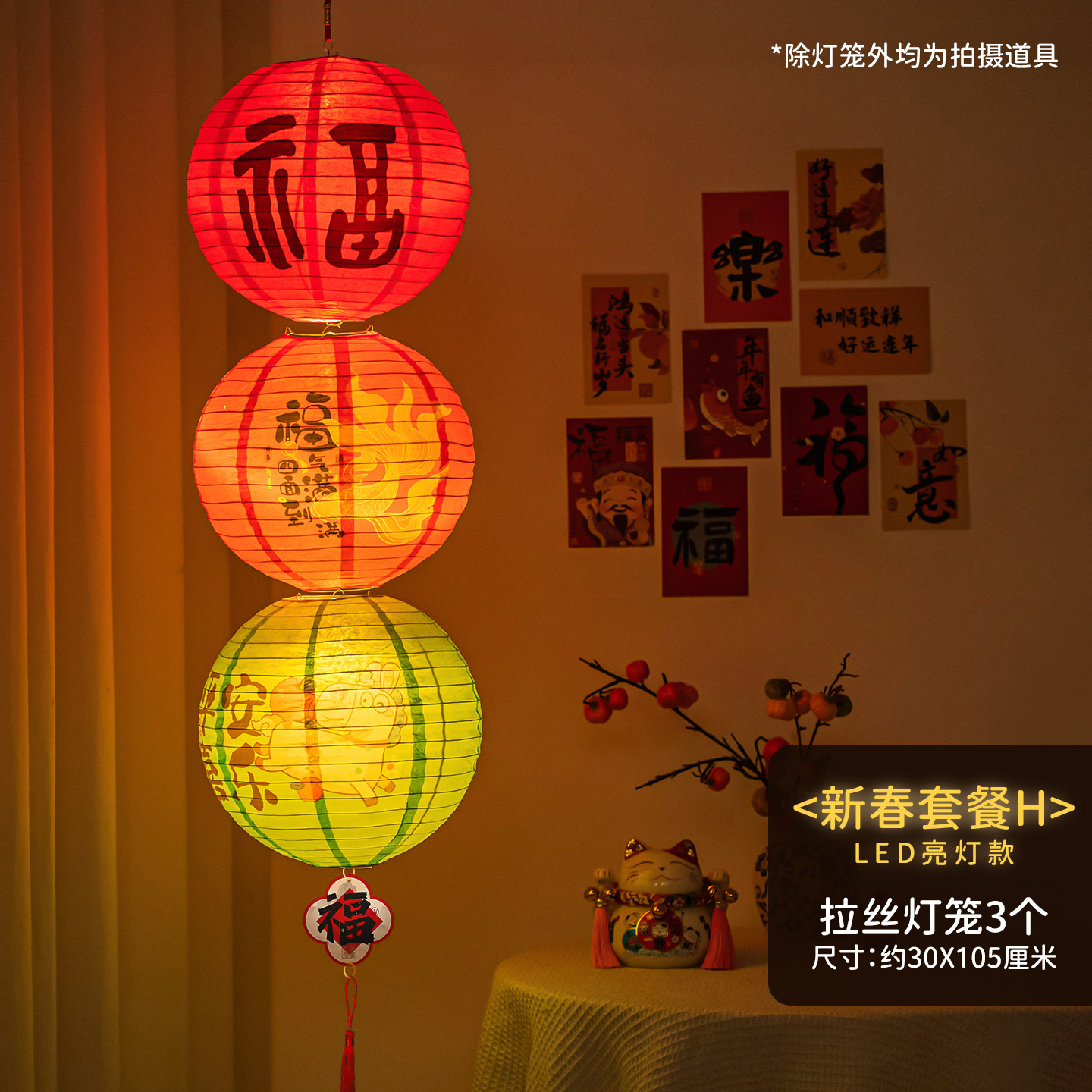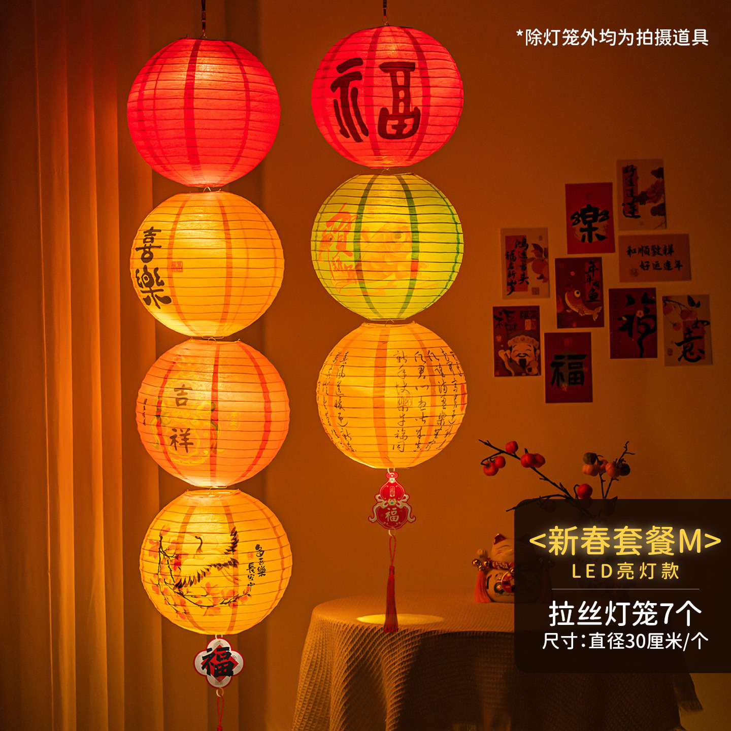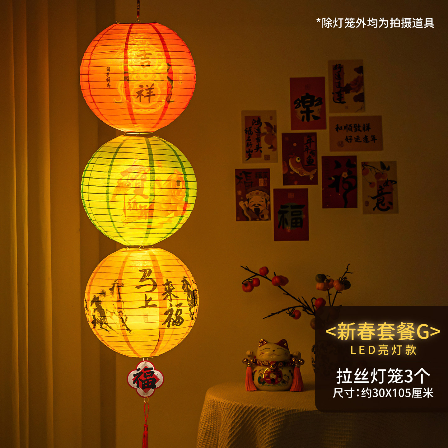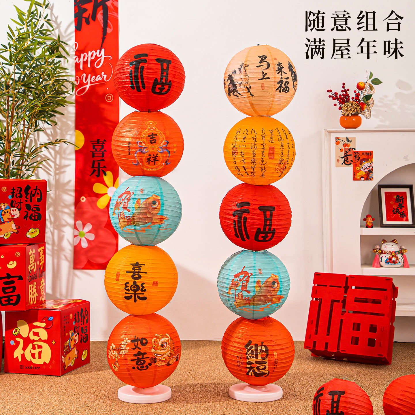 2026元旦新年装饰用品拉丝灯笼马年纸灯笼批发