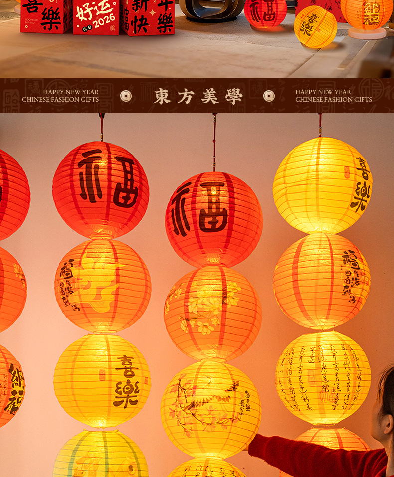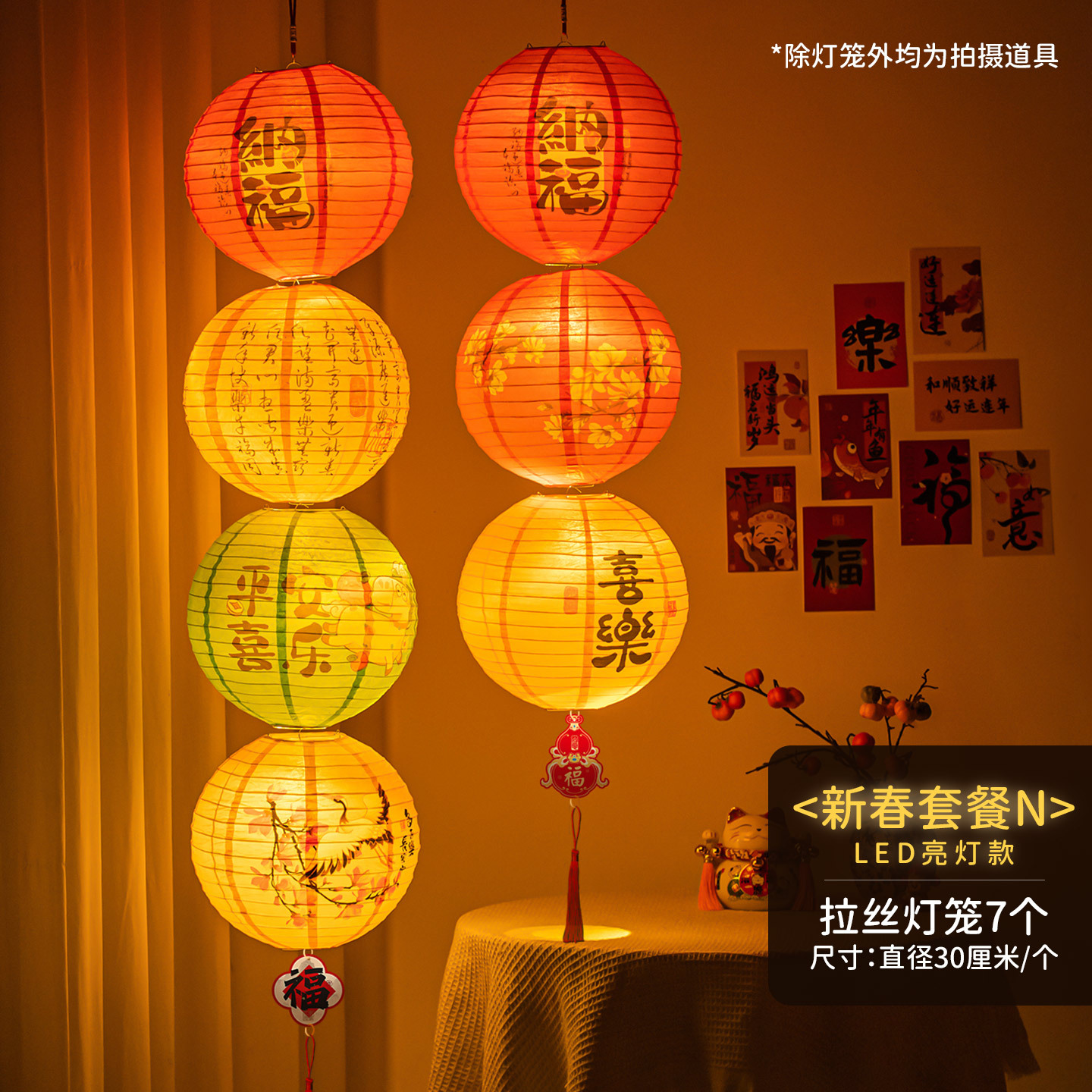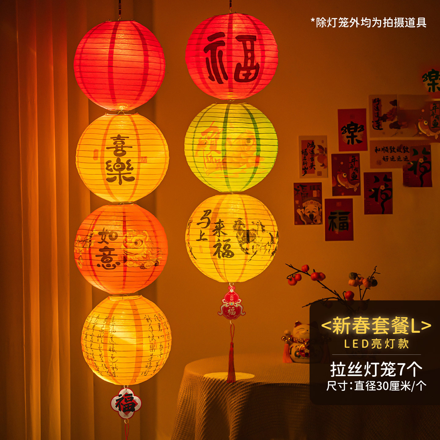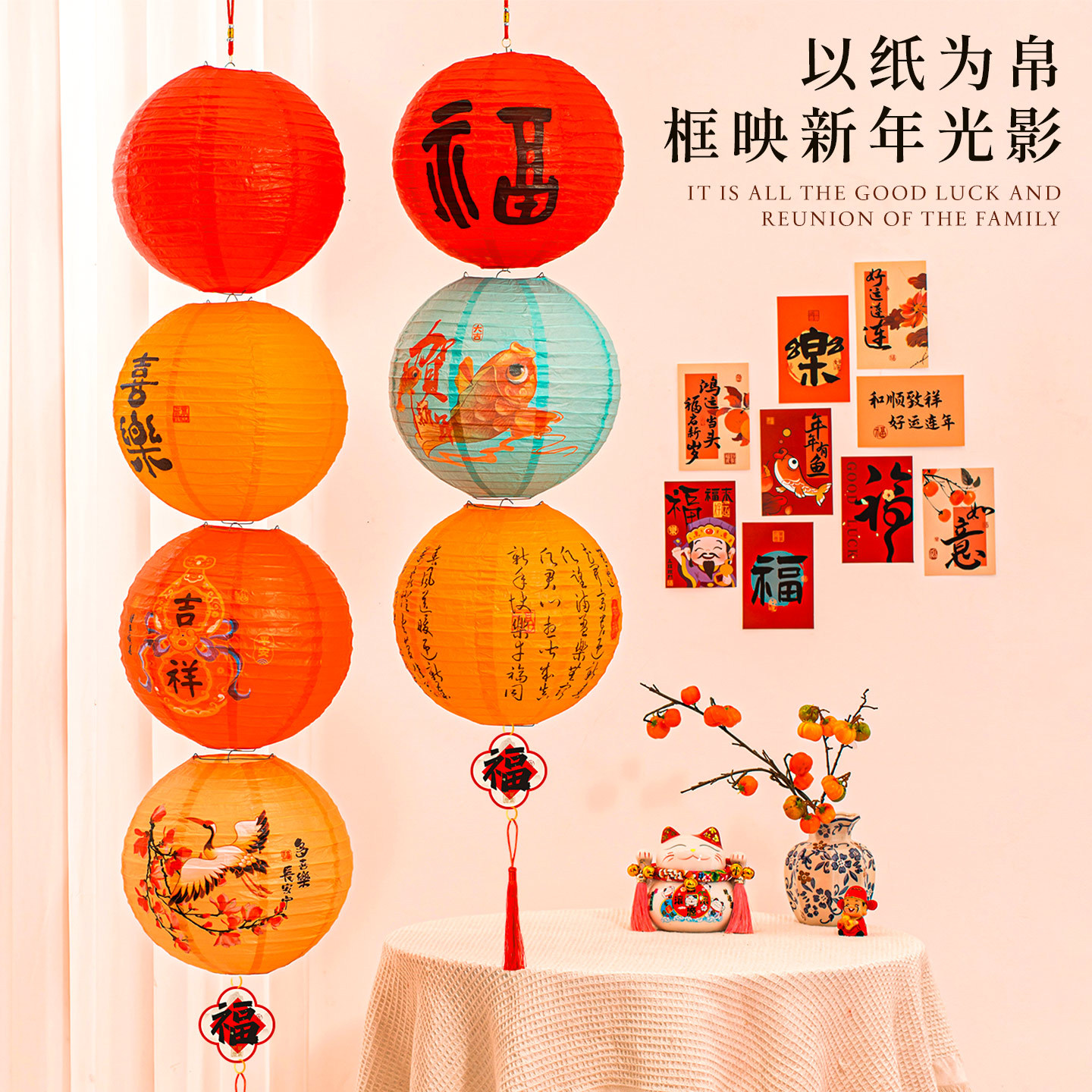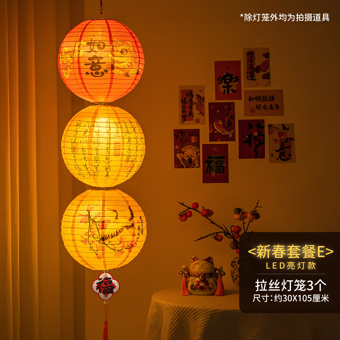 2026元旦新年装饰用品拉丝灯笼马年纸灯笼批发