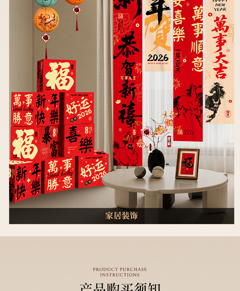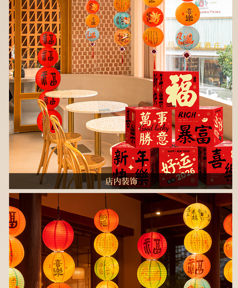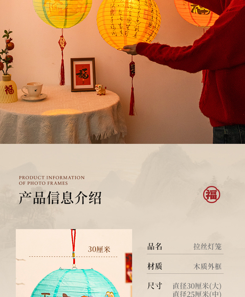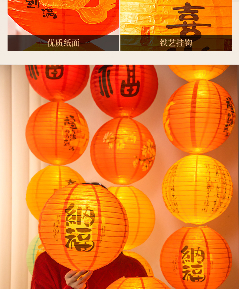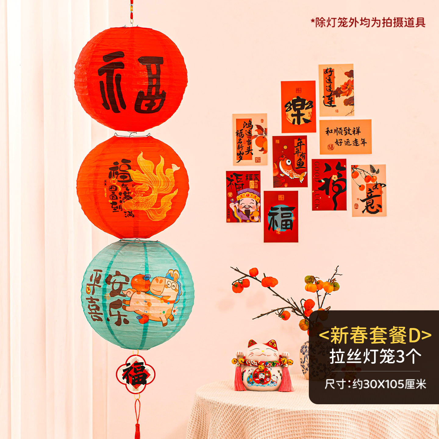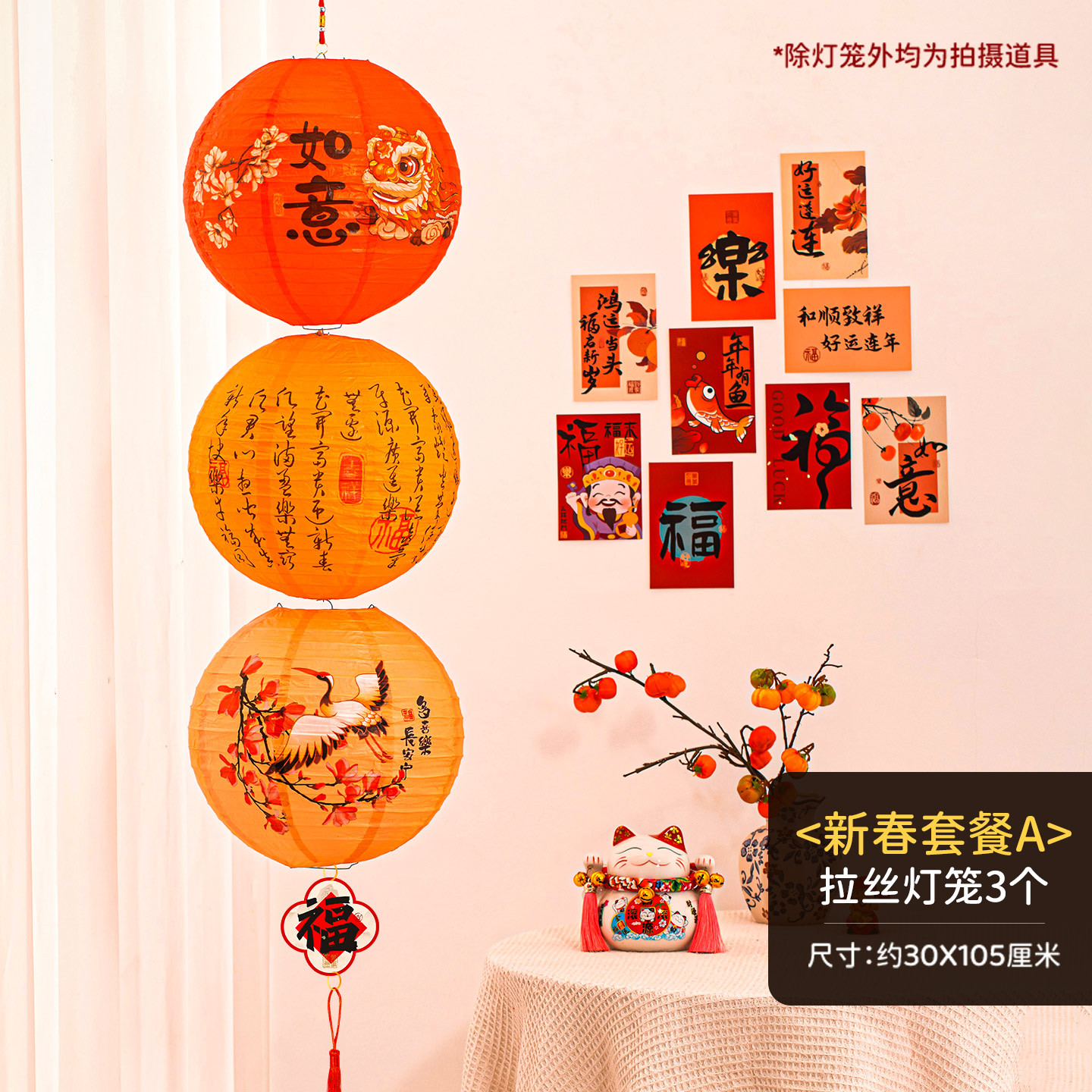 2026元旦新年装饰用品拉丝灯笼马年纸灯笼批发