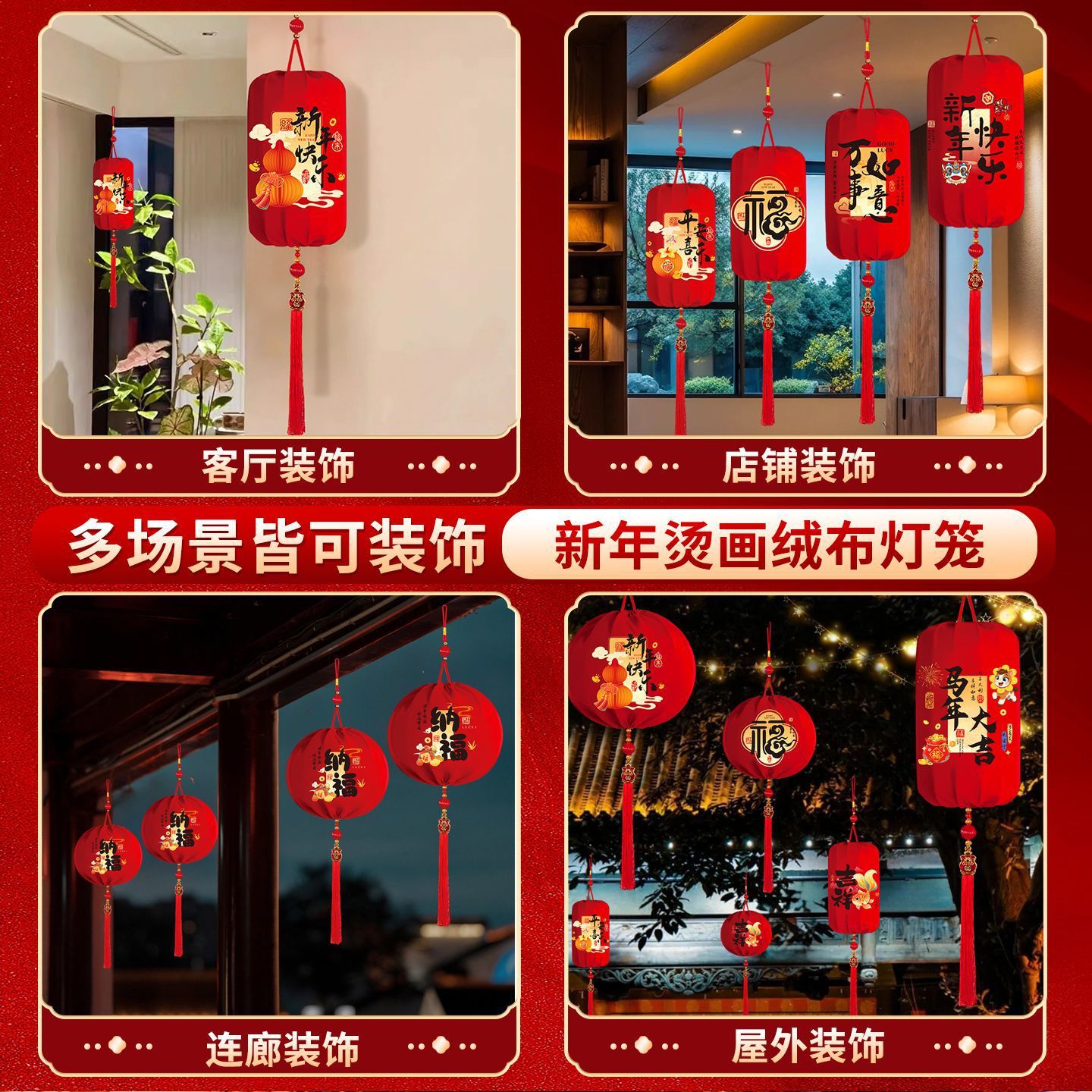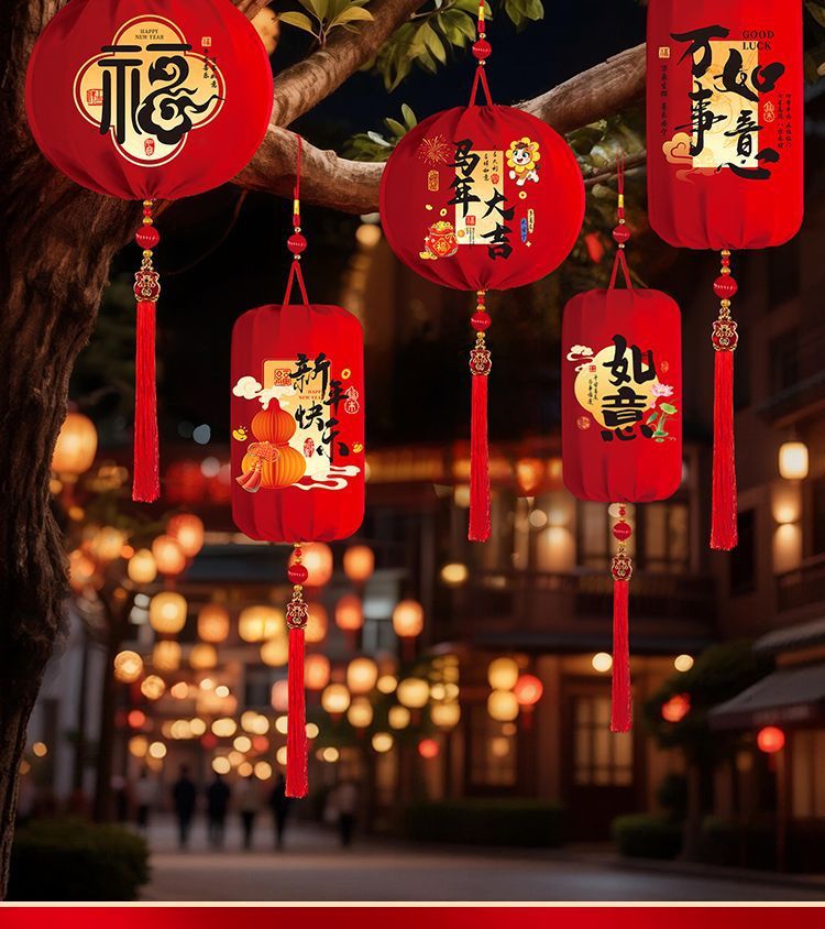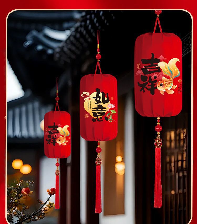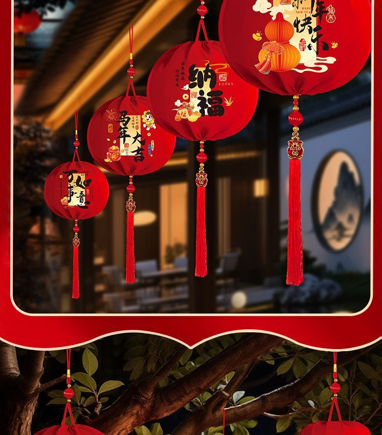 2026春节灯笼福字新款布艺装饰挂件阳台户外布置装饰过年红灯笼