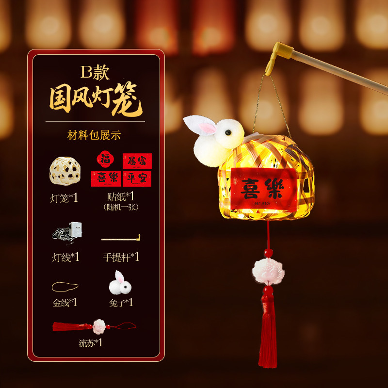 竹编手提DIY灯笼发光迷你小灯笼儿童手工编织diy材料包