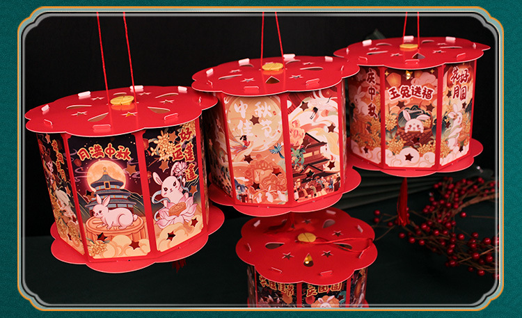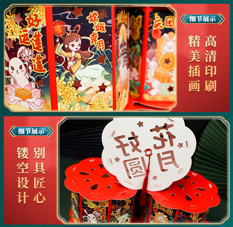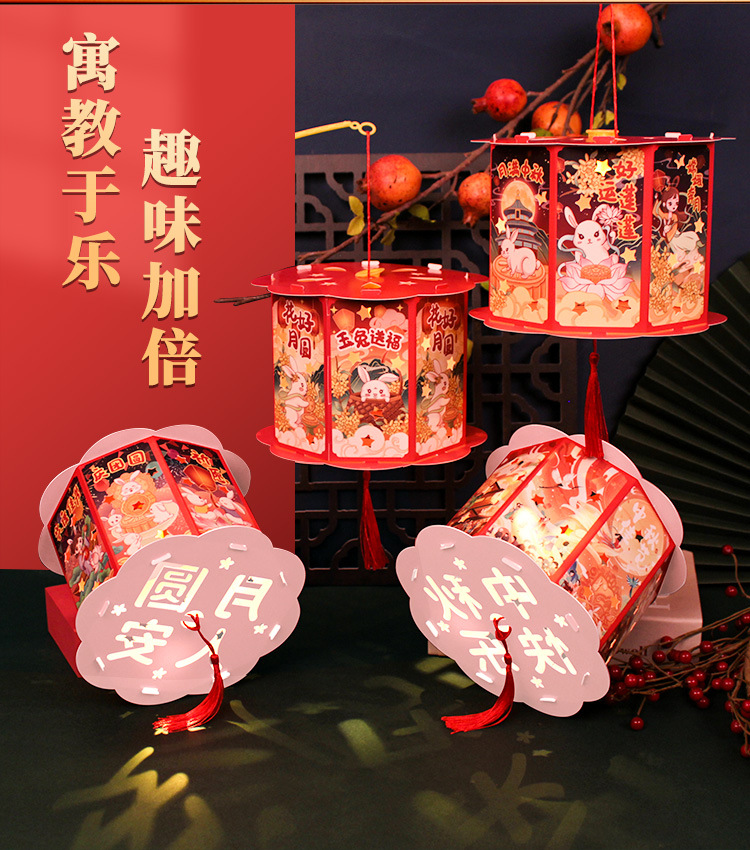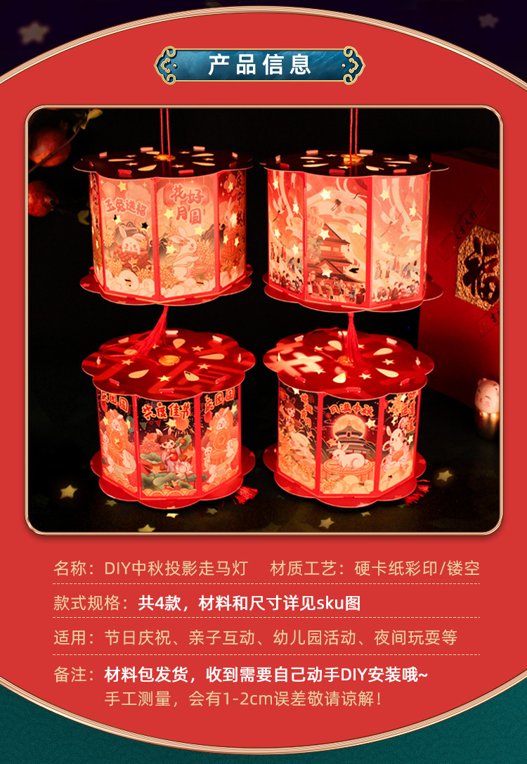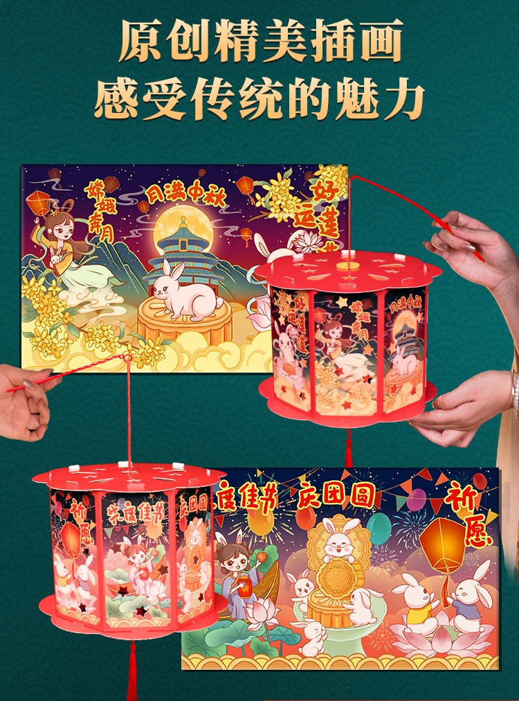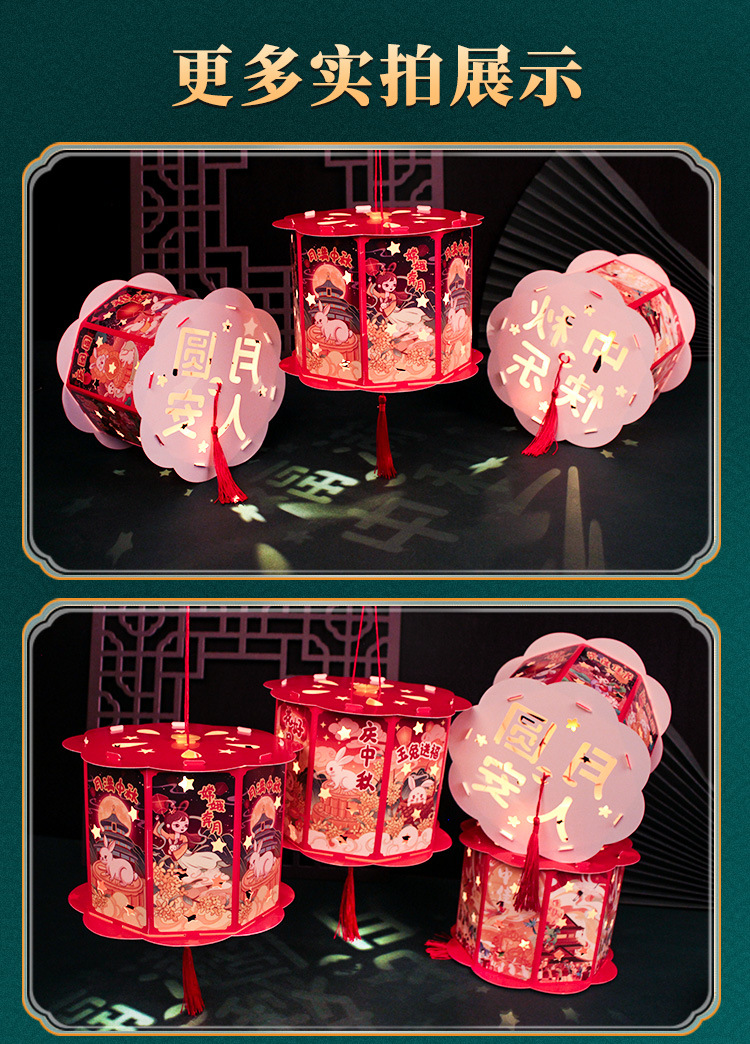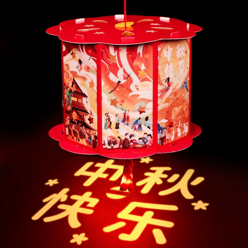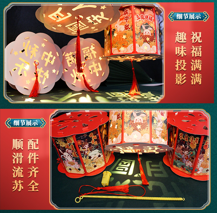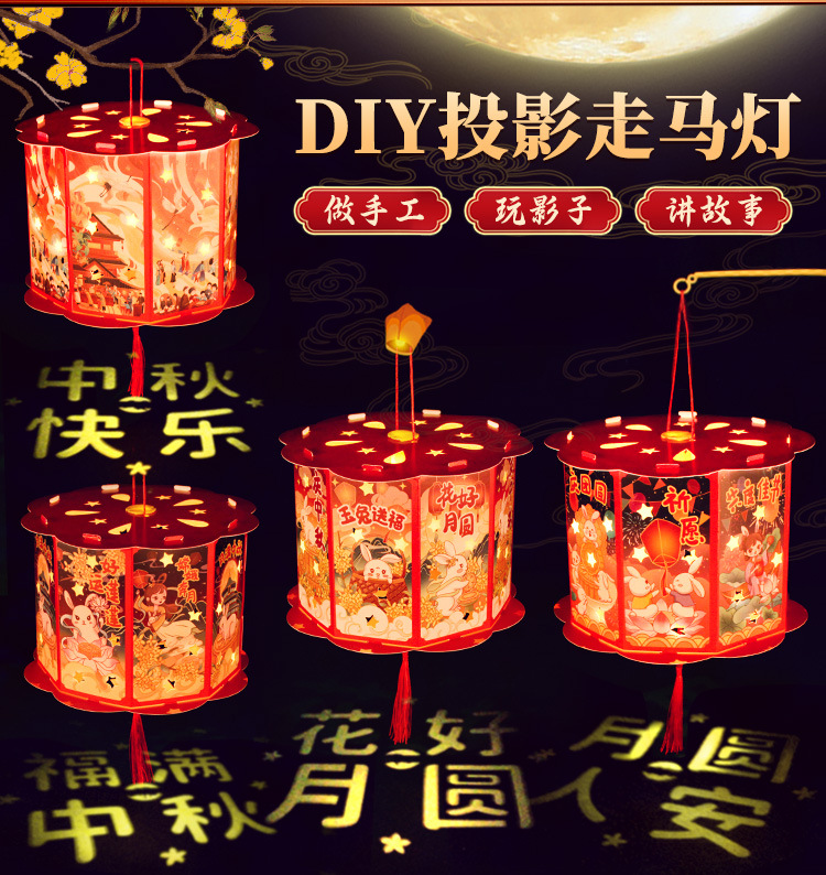 中秋国庆节投影灯笼手提走马灯儿童卡通手工花灯笼diy材料包