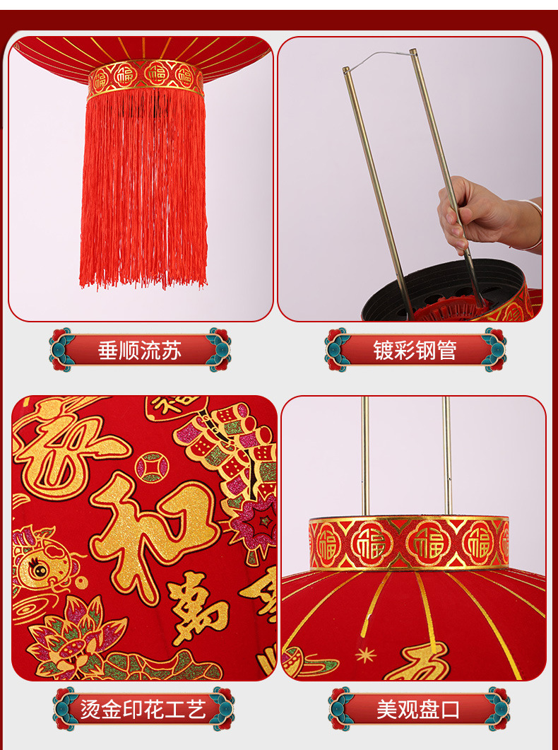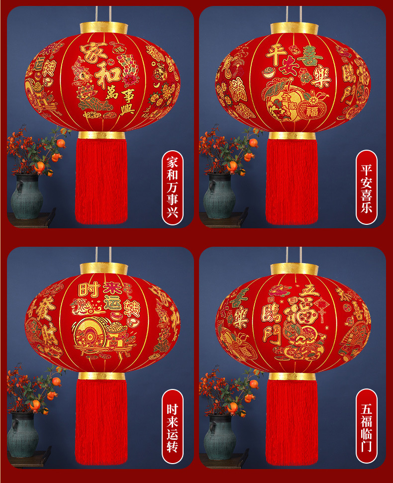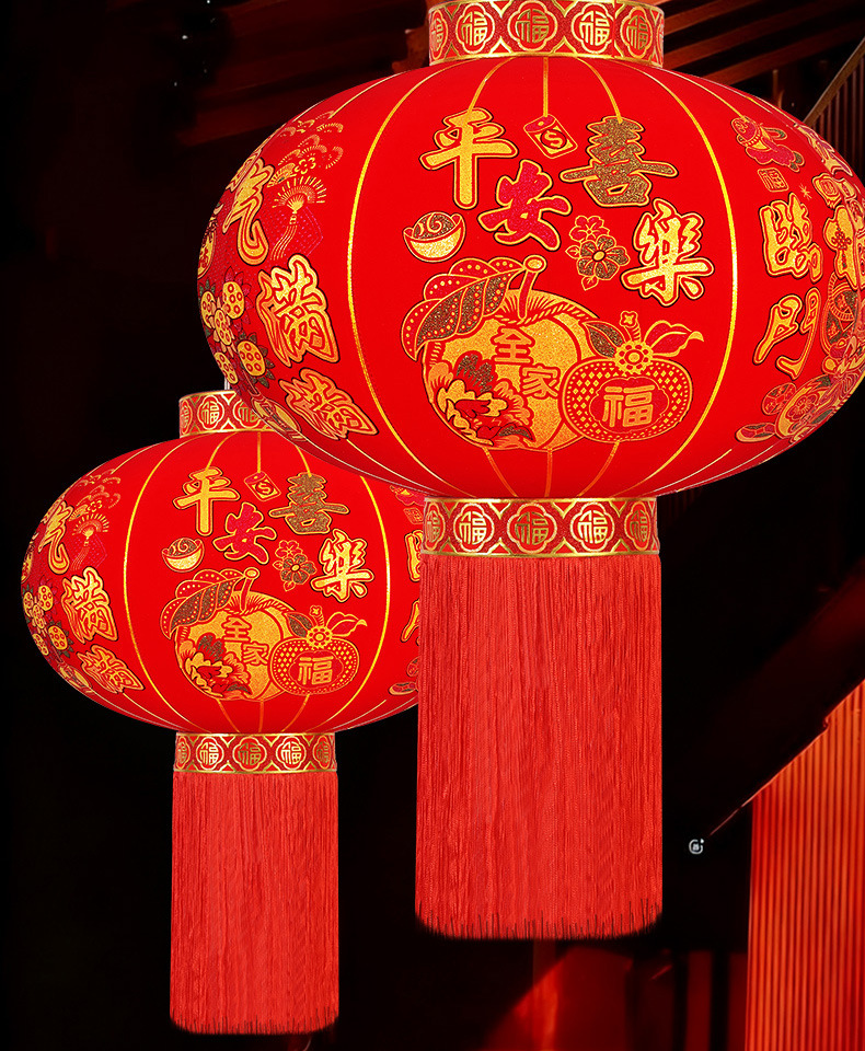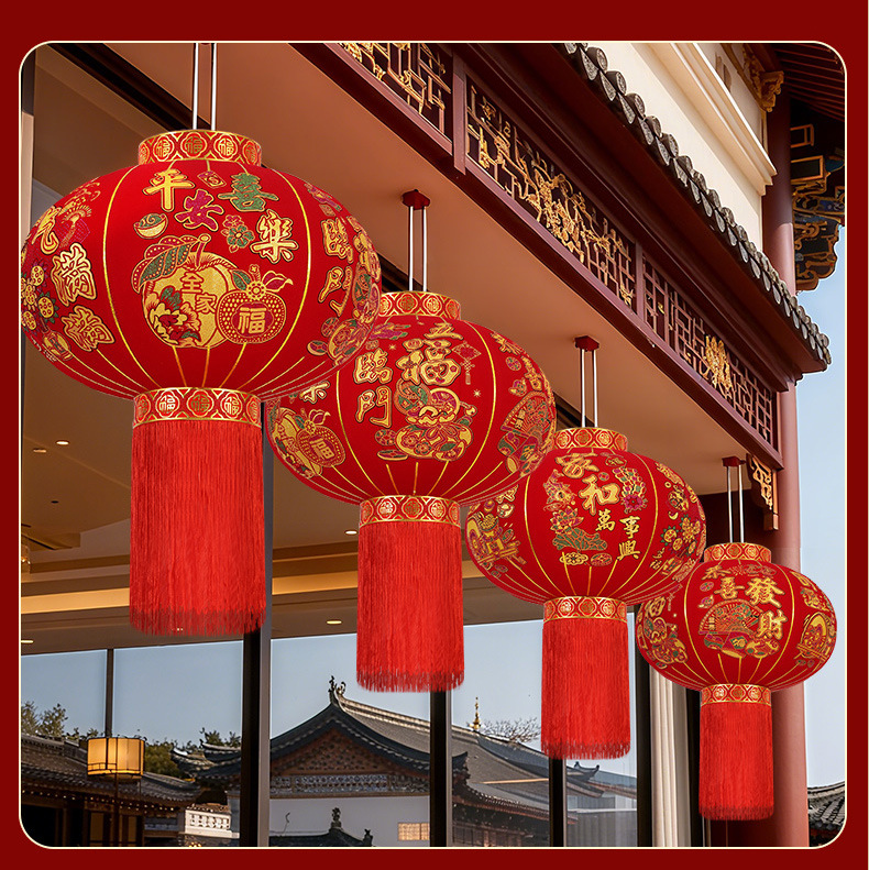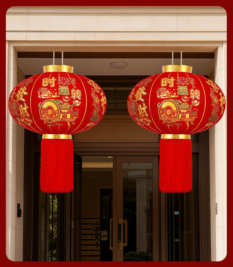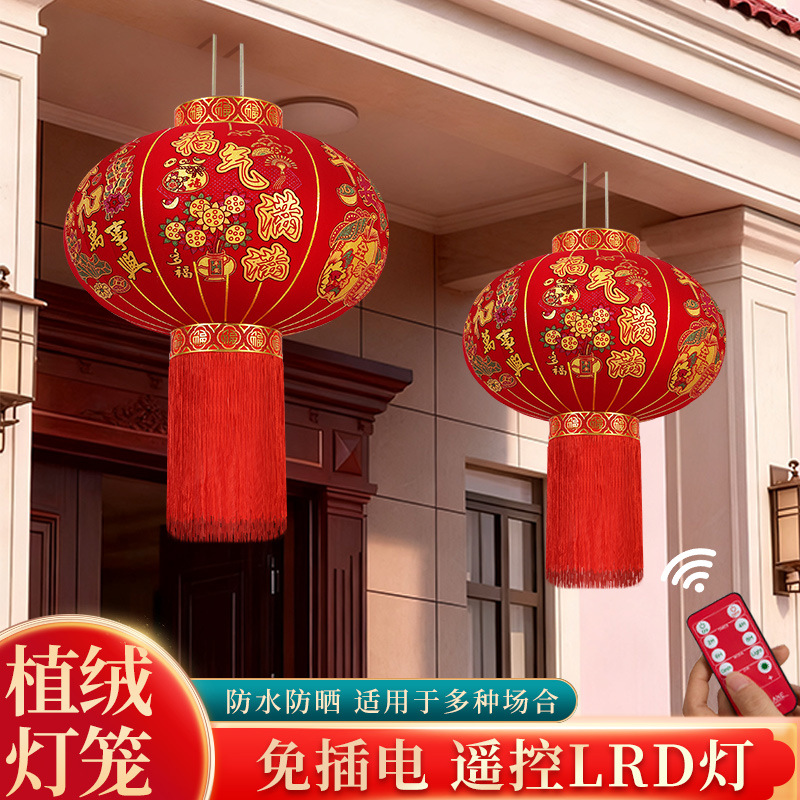 源头厂家植绒灯笼新年春节灯笼马年灯笼喜庆植绒大门灯笼全套现货