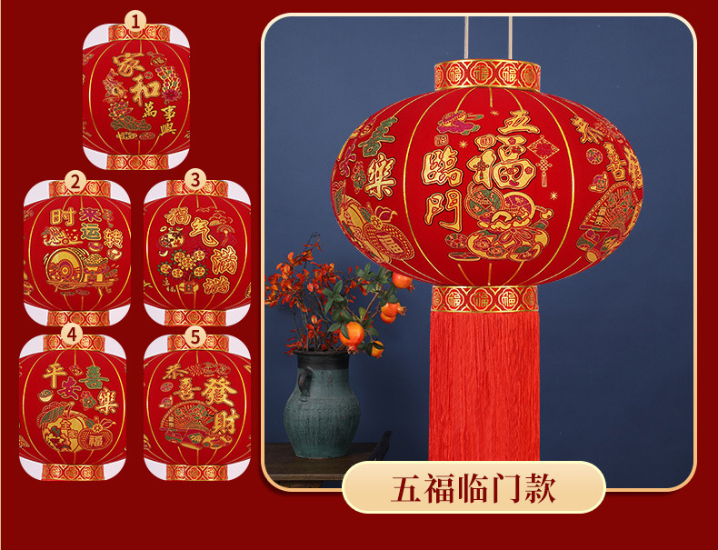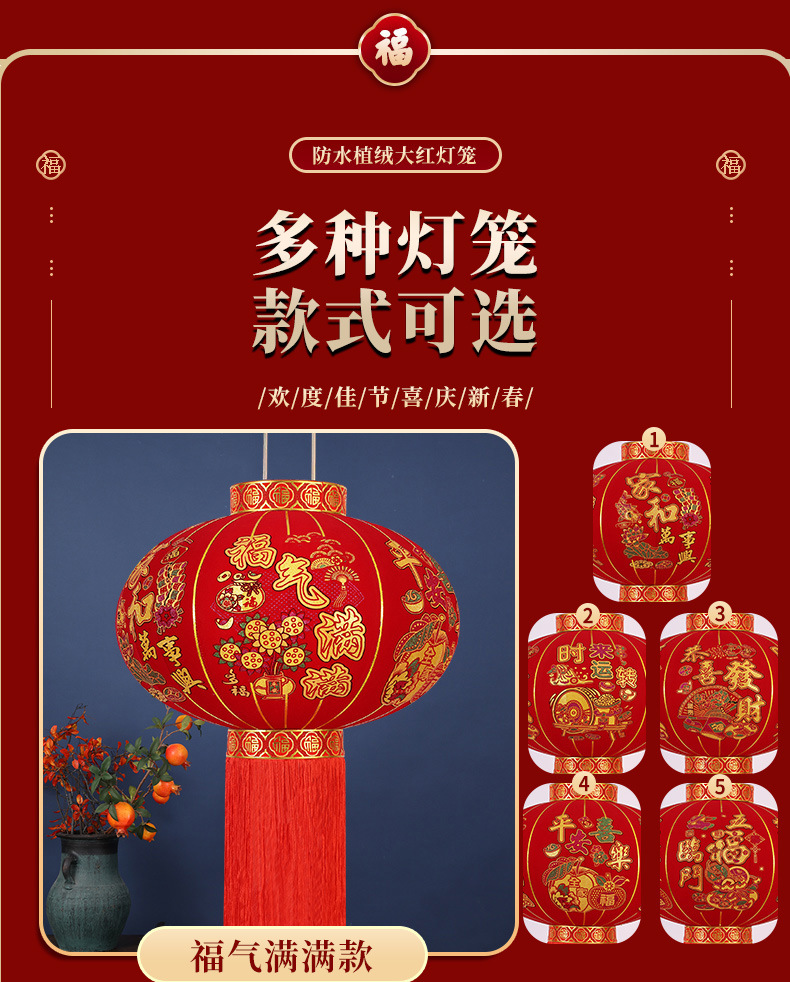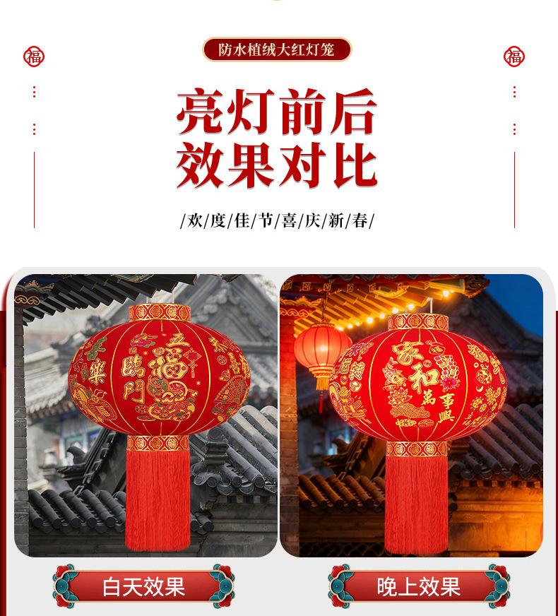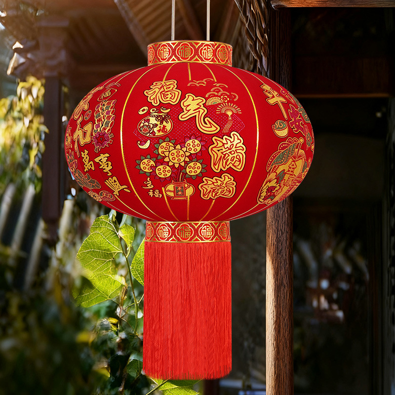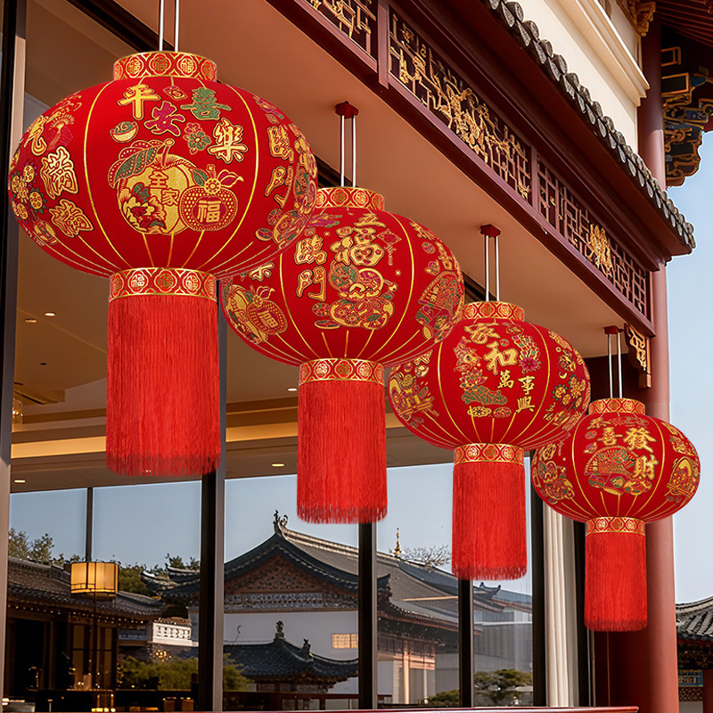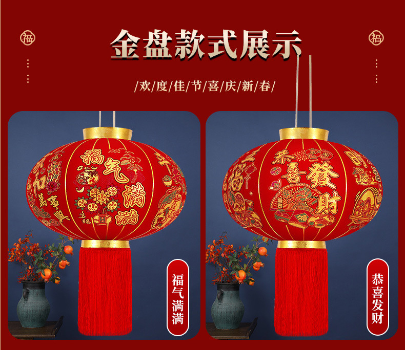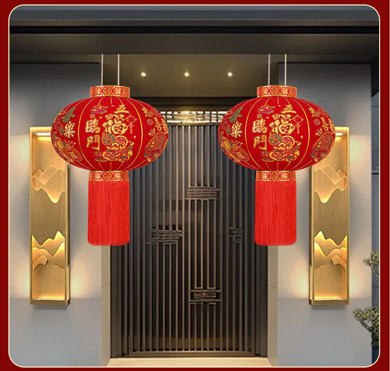 源头厂家植绒灯笼新年春节灯笼马年灯笼喜庆植绒大门灯笼全套现货