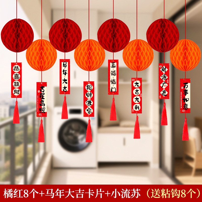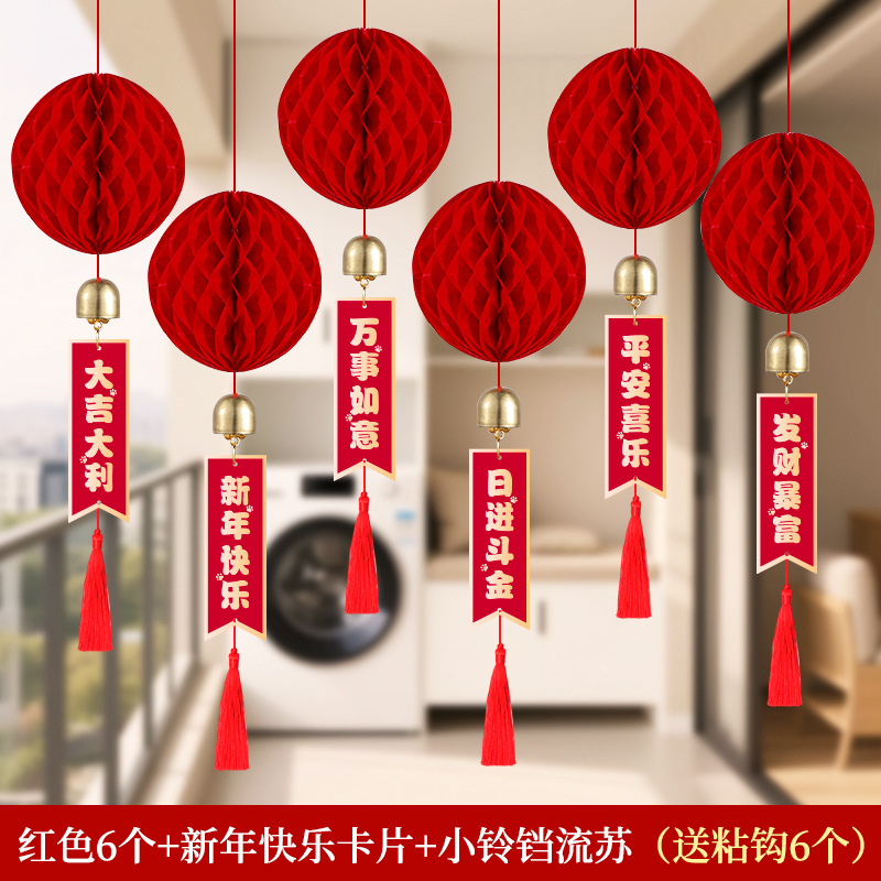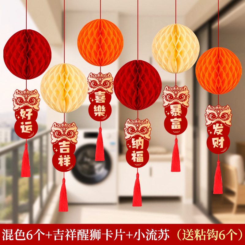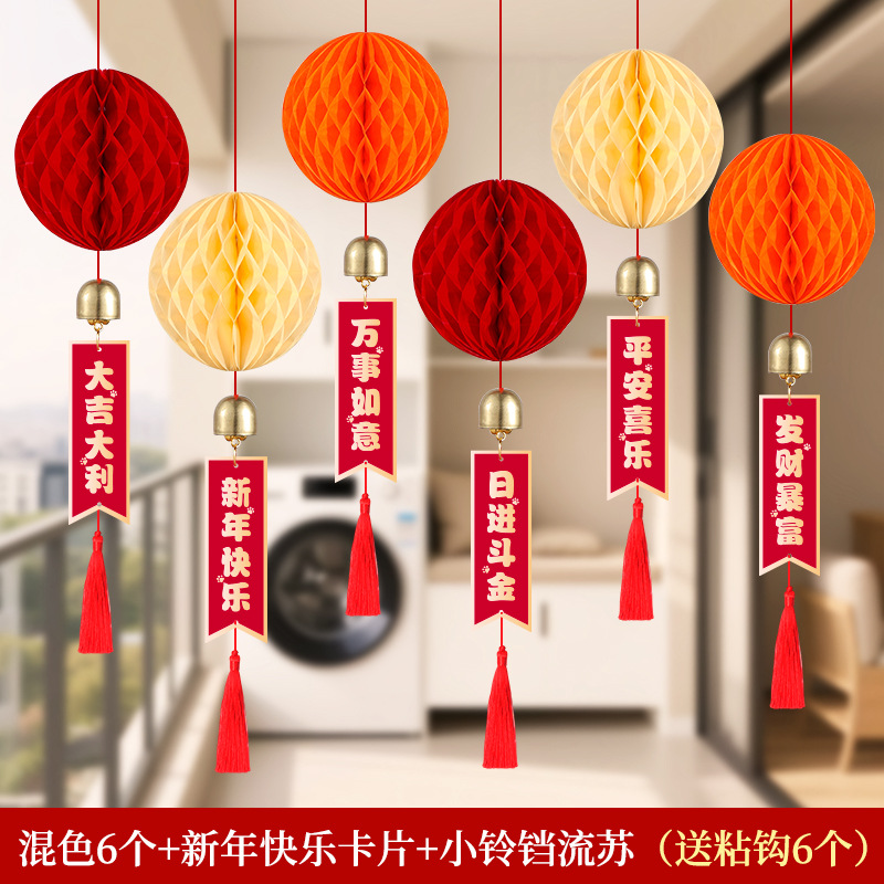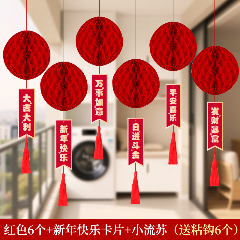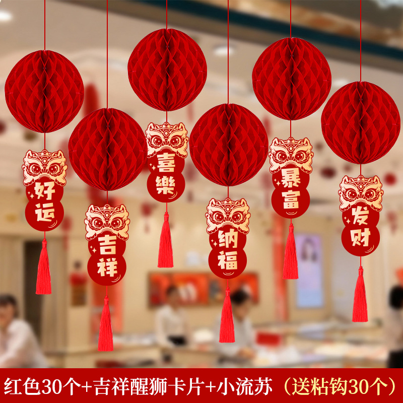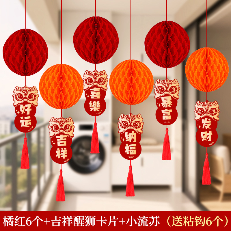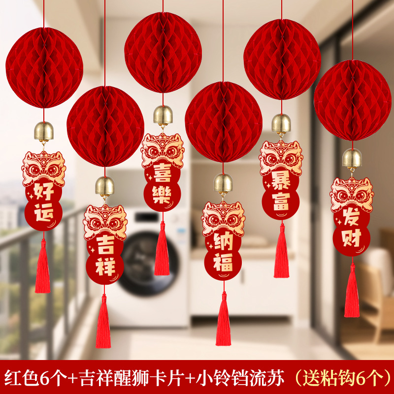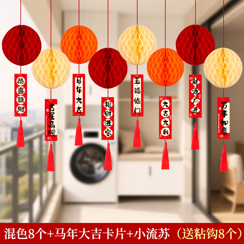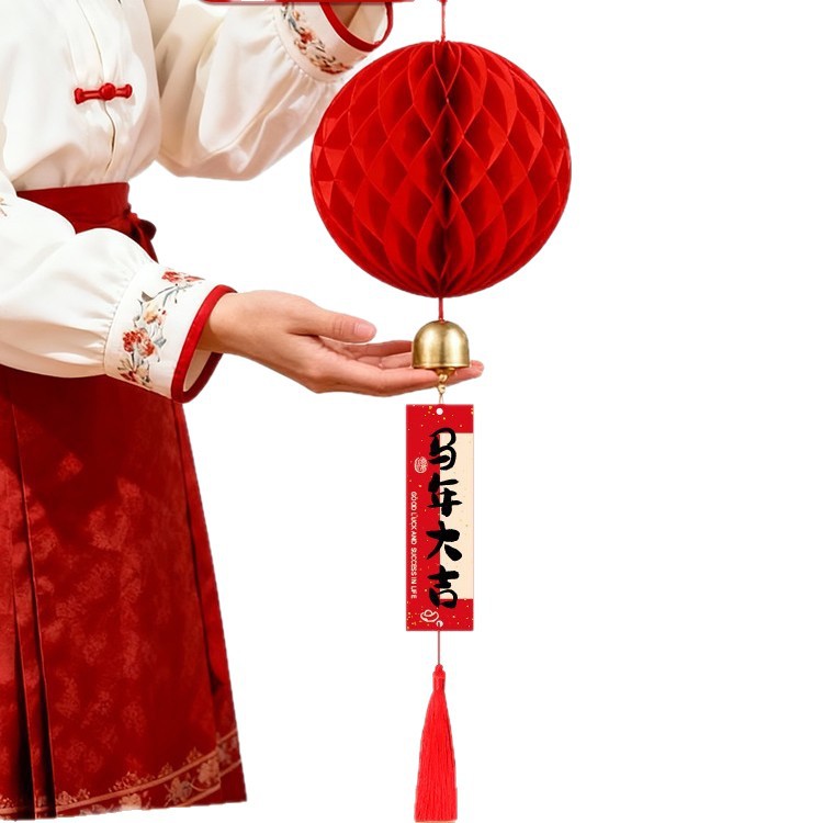 2026马年装饰红灯笼挂件蜂窝挂饰新年纸灯笼元旦春节场景氛围布置
