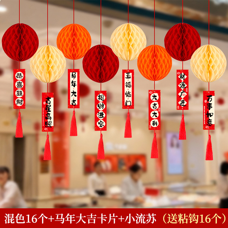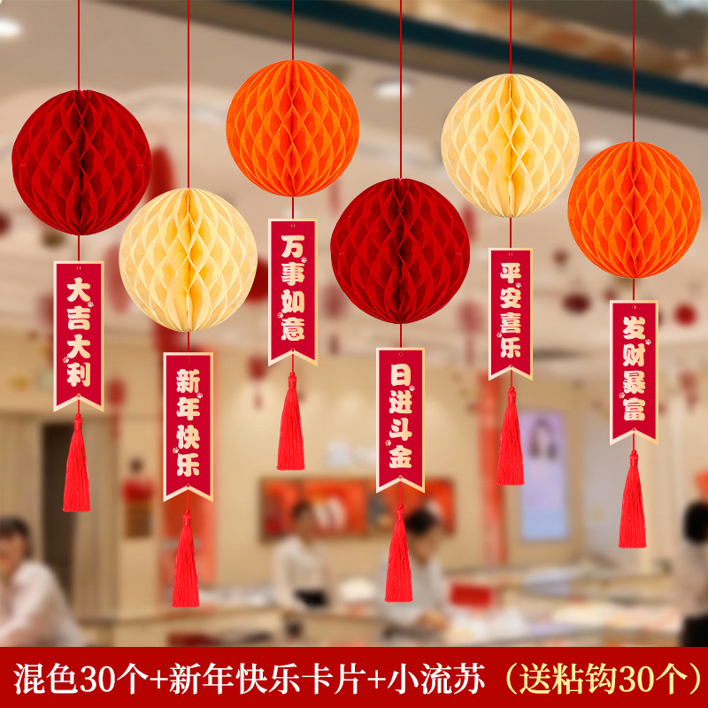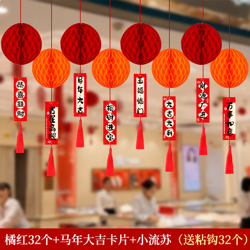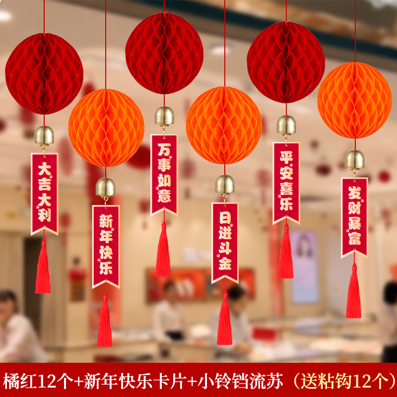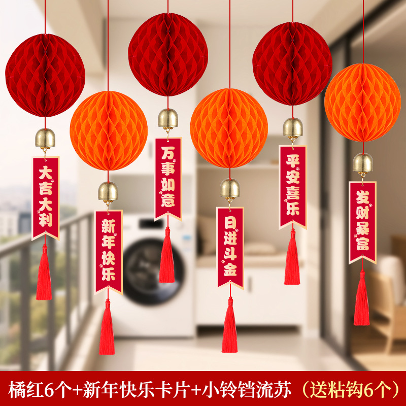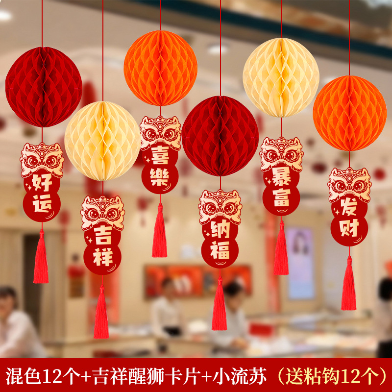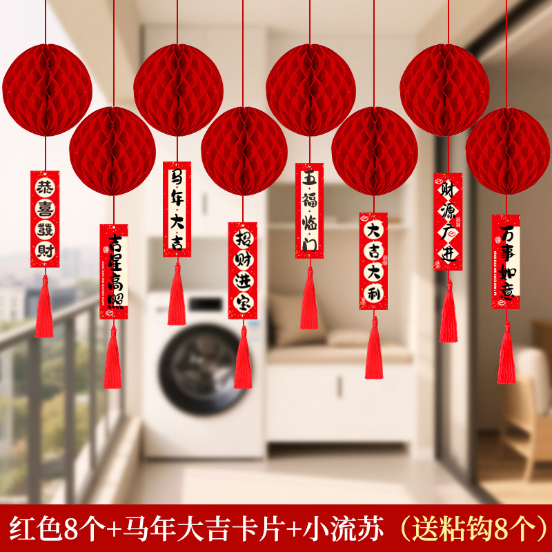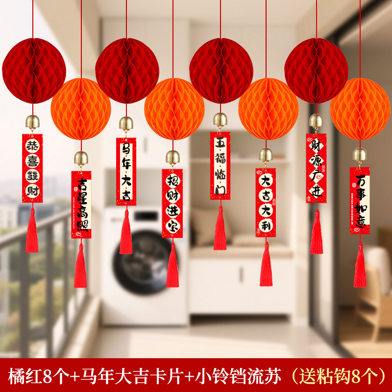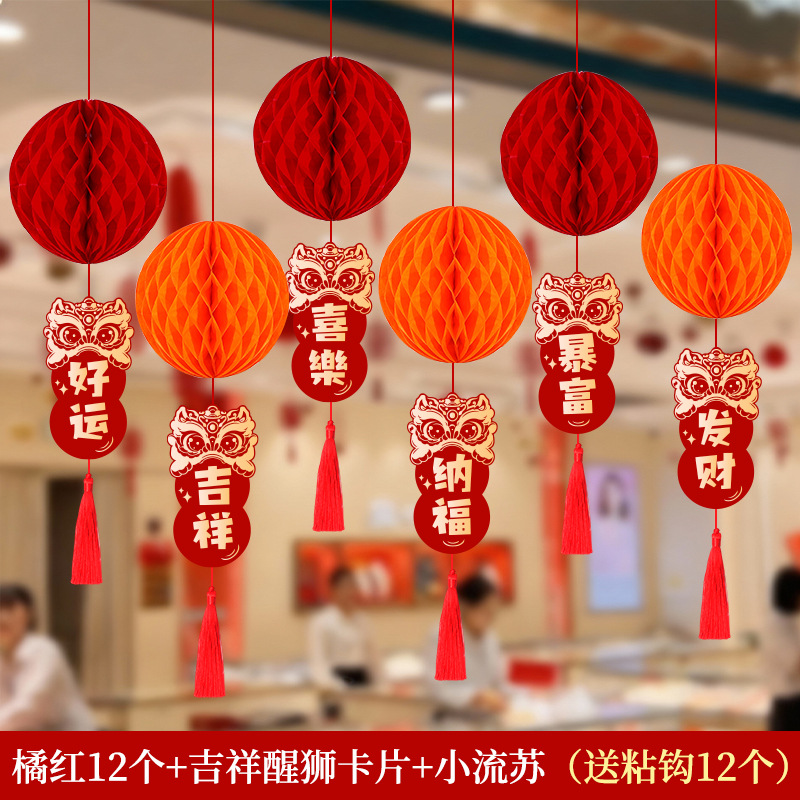 2026马年装饰红灯笼挂件蜂窝挂饰新年纸灯笼元旦春节场景氛围布置