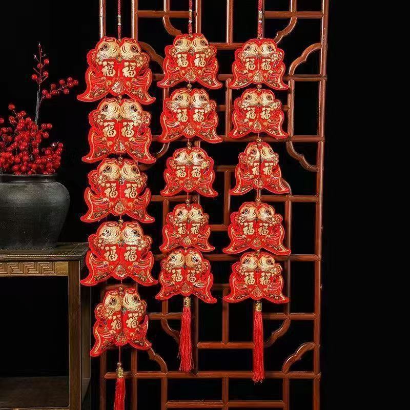 2026新年春节双鱼过年乔迁装饰场景布置客厅香包挂件辣椒挂串挂饰