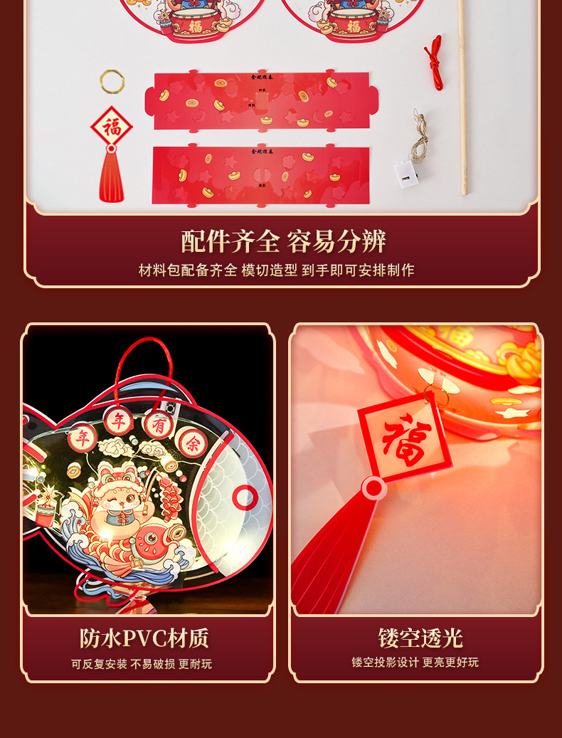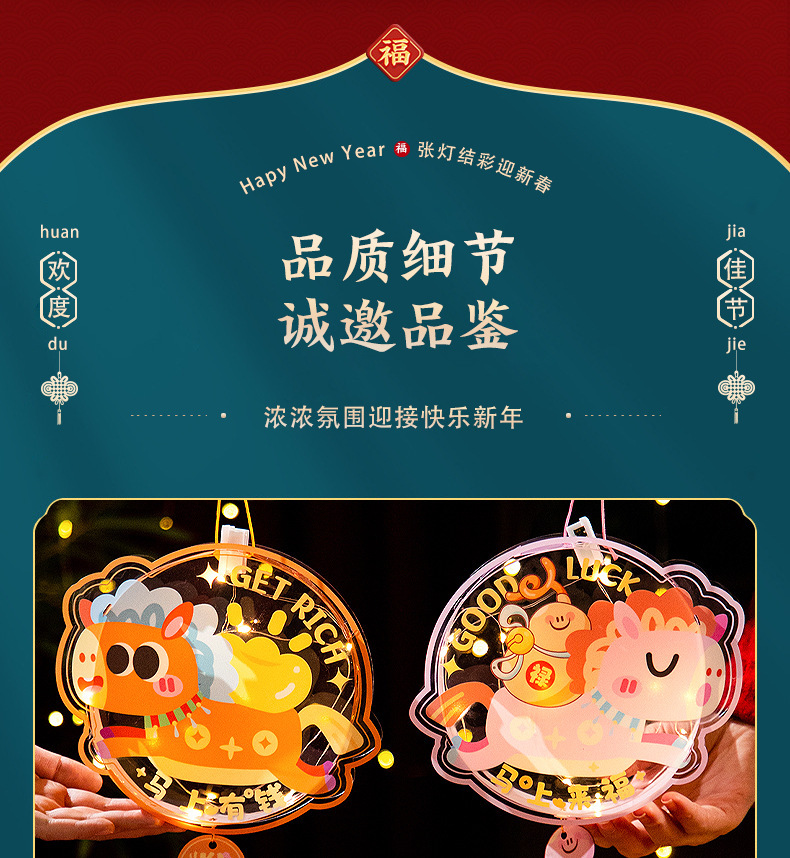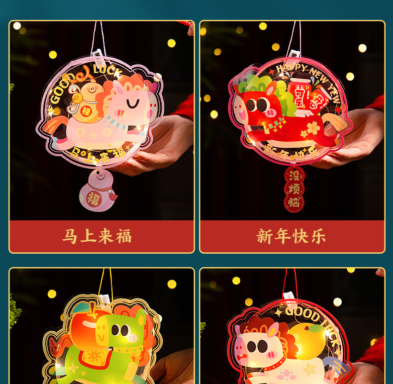 2026新款马年手提灯笼儿童手工DIY材料包幼儿园发光灯笼元宵花灯