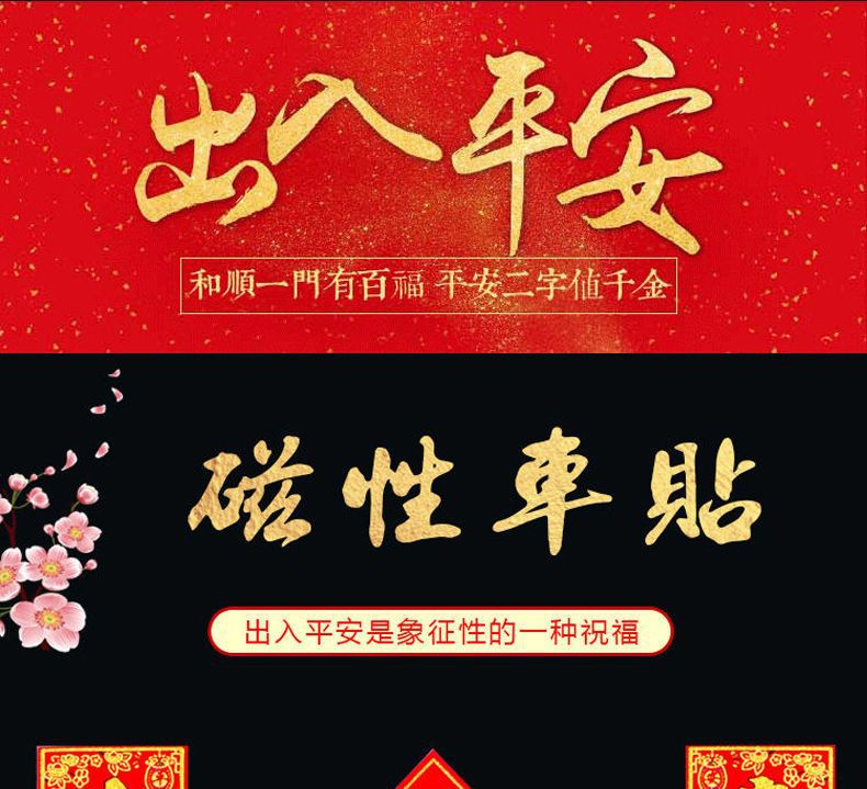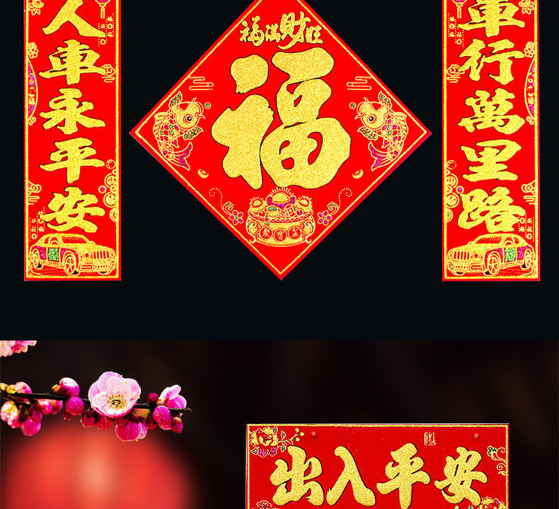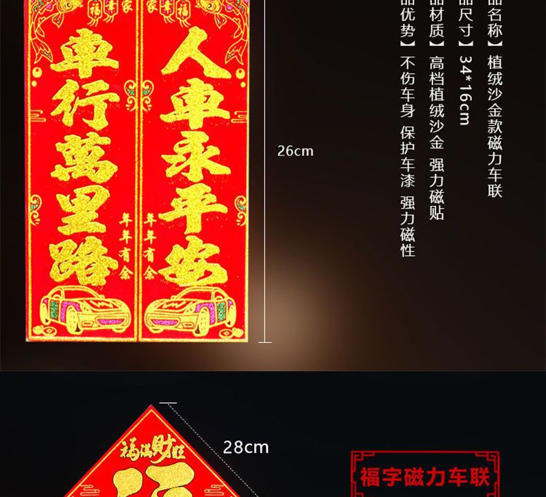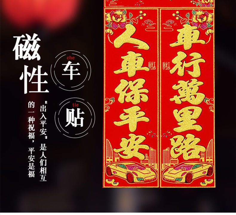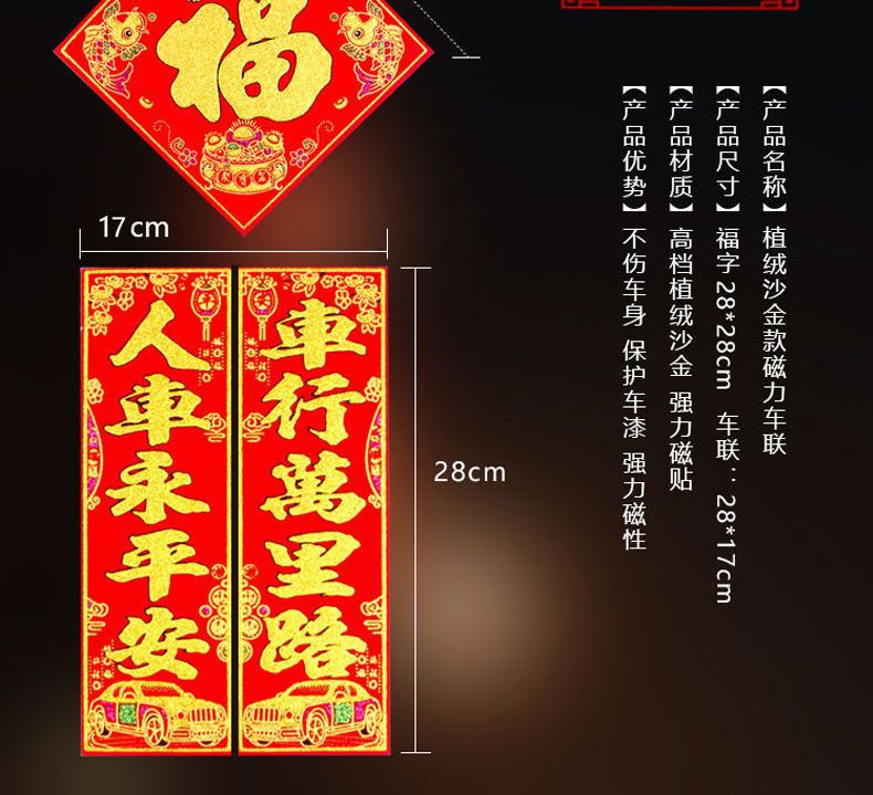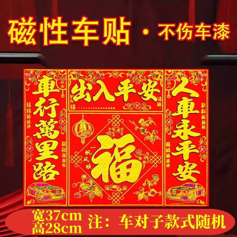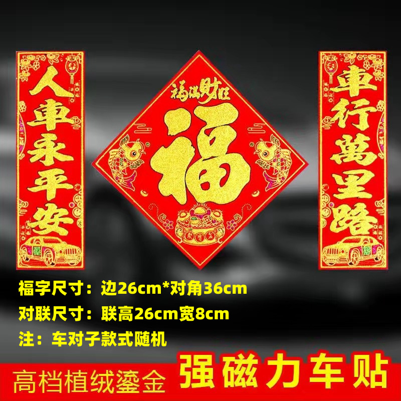 2026汽车磁吸新春对联植绒福字立体车春联磁力车贴不伤车车载喜庆
