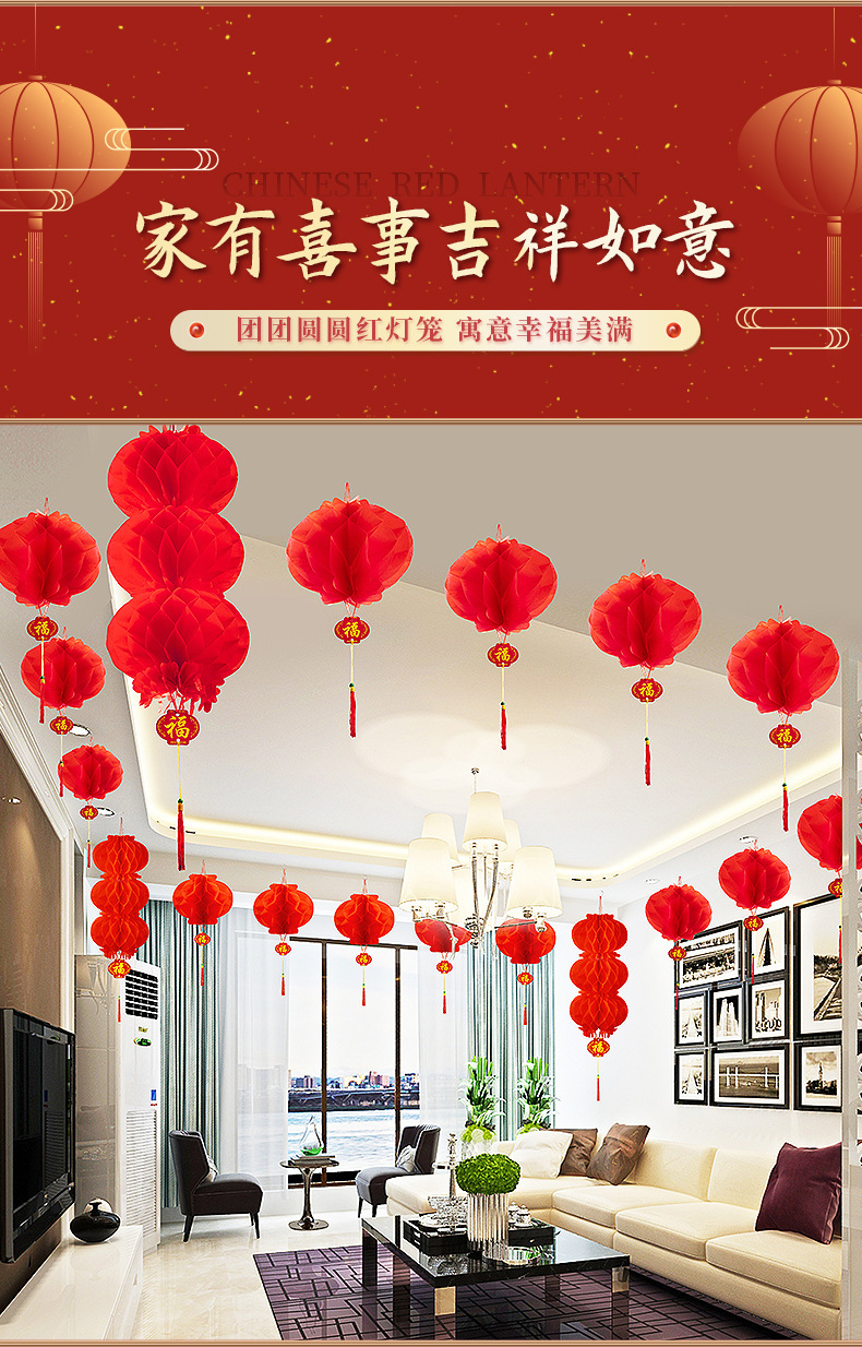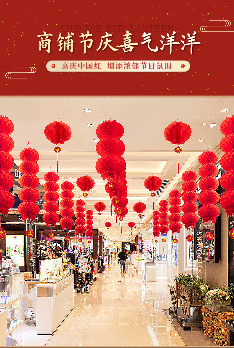 塑纸小红灯笼挂饰结婚庆典小灯笼过年装饰场景布置纸灯笼椭圆灯笼