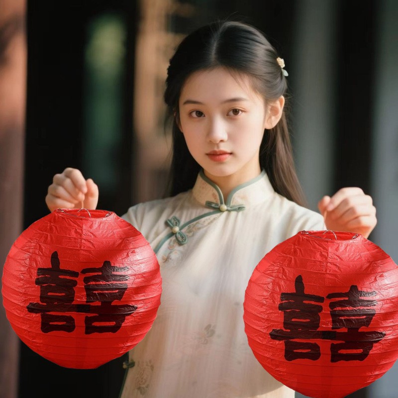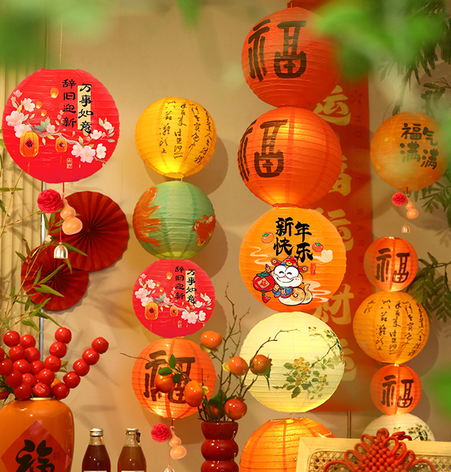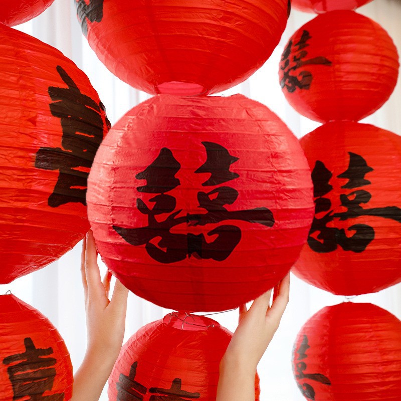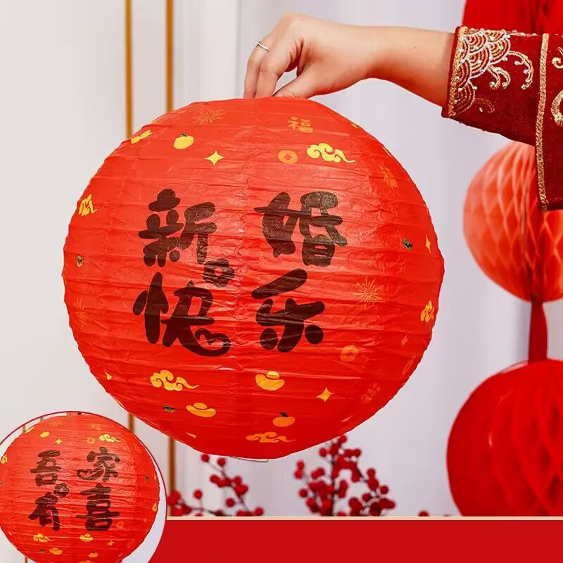 2026马年新款新年纸灯笼大门口一对婚房布置新年装饰挂件小礼品