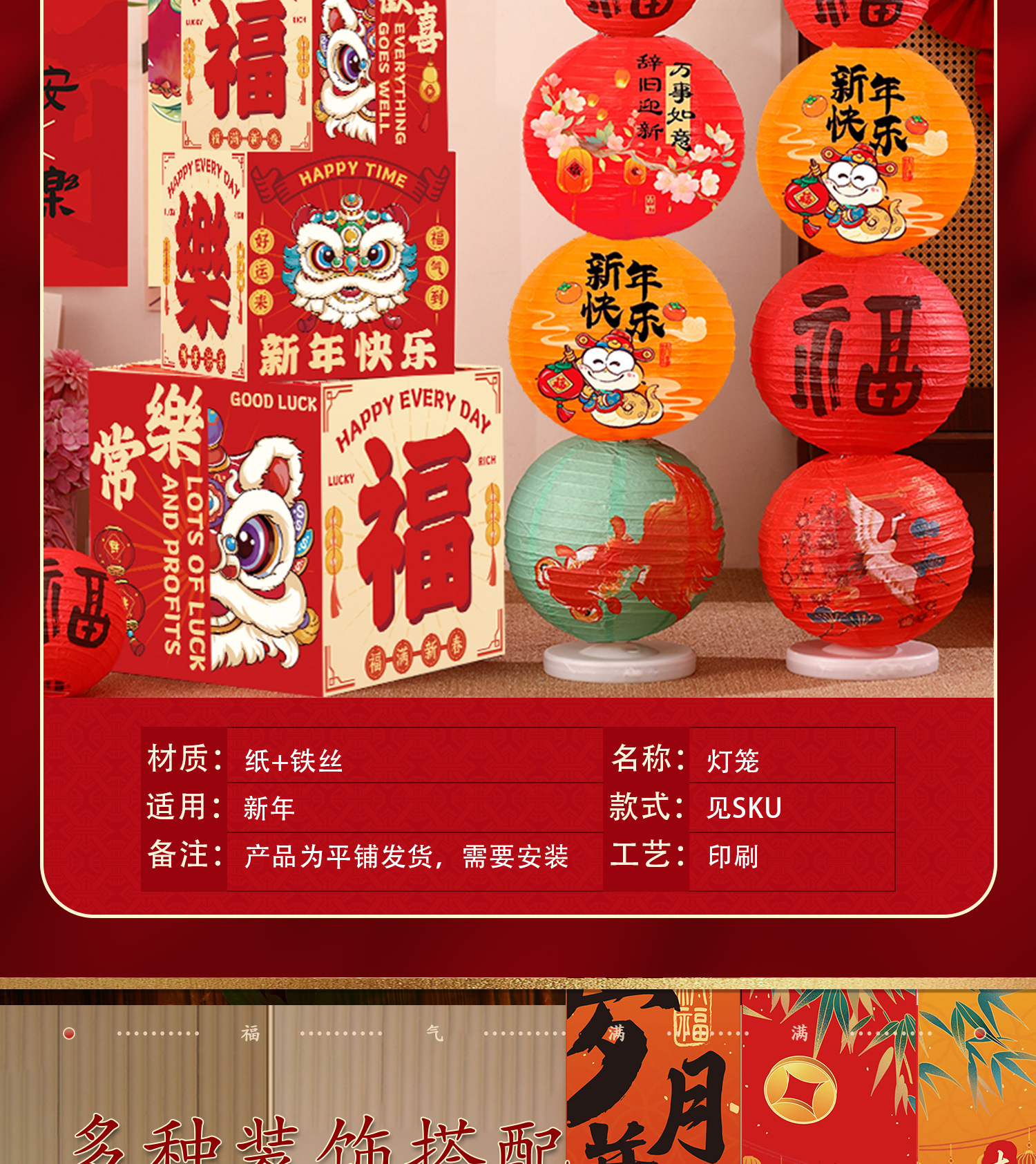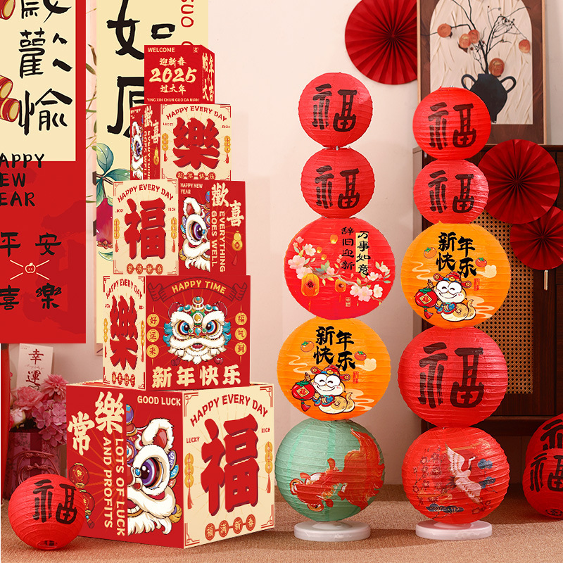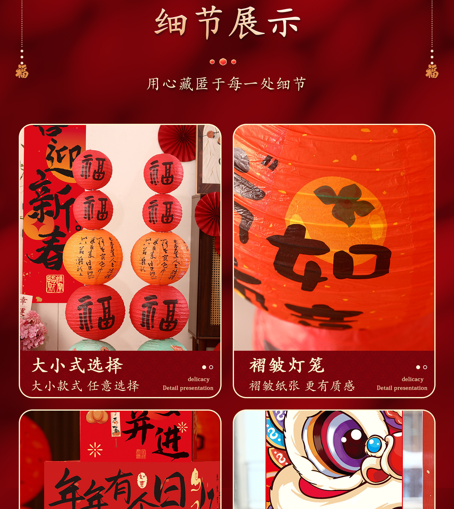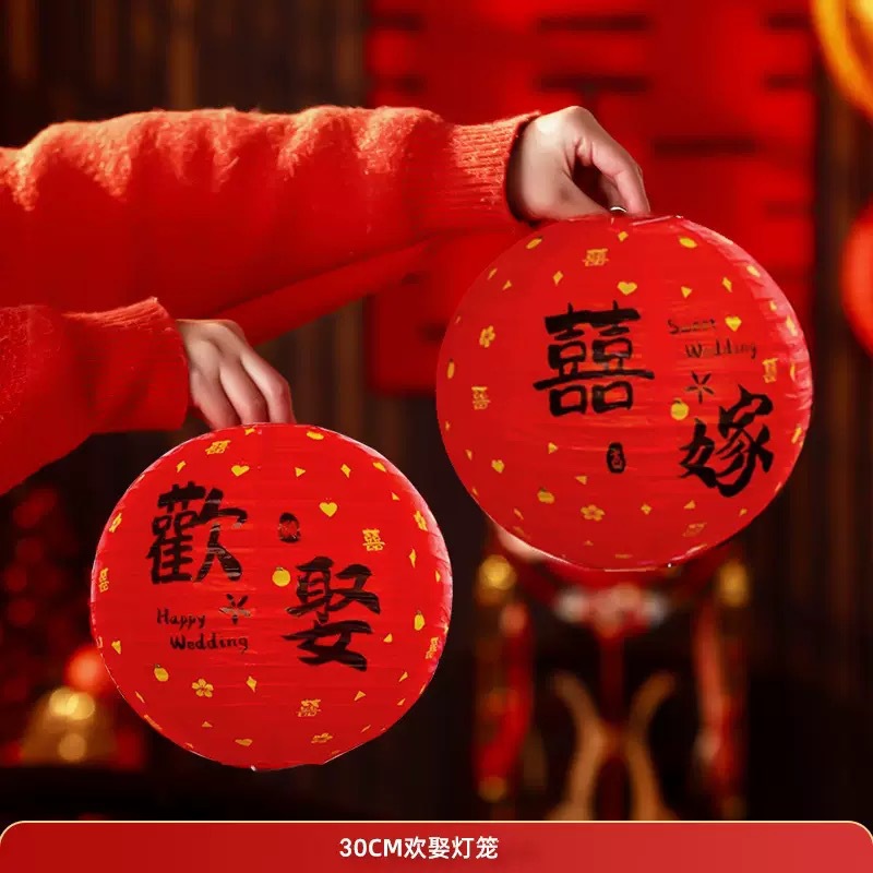 2026马年新款新年纸灯笼大门口一对婚房布置新年装饰挂件小礼品