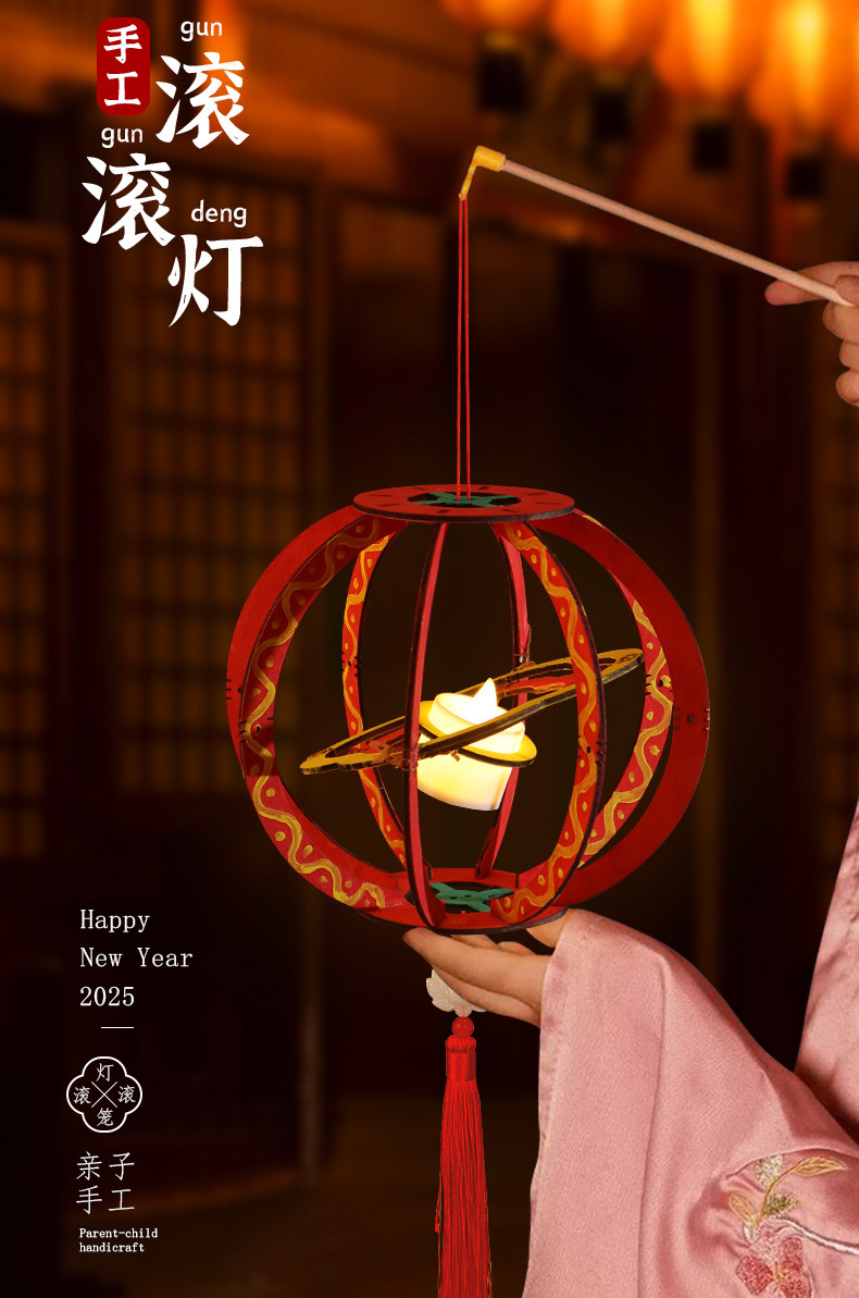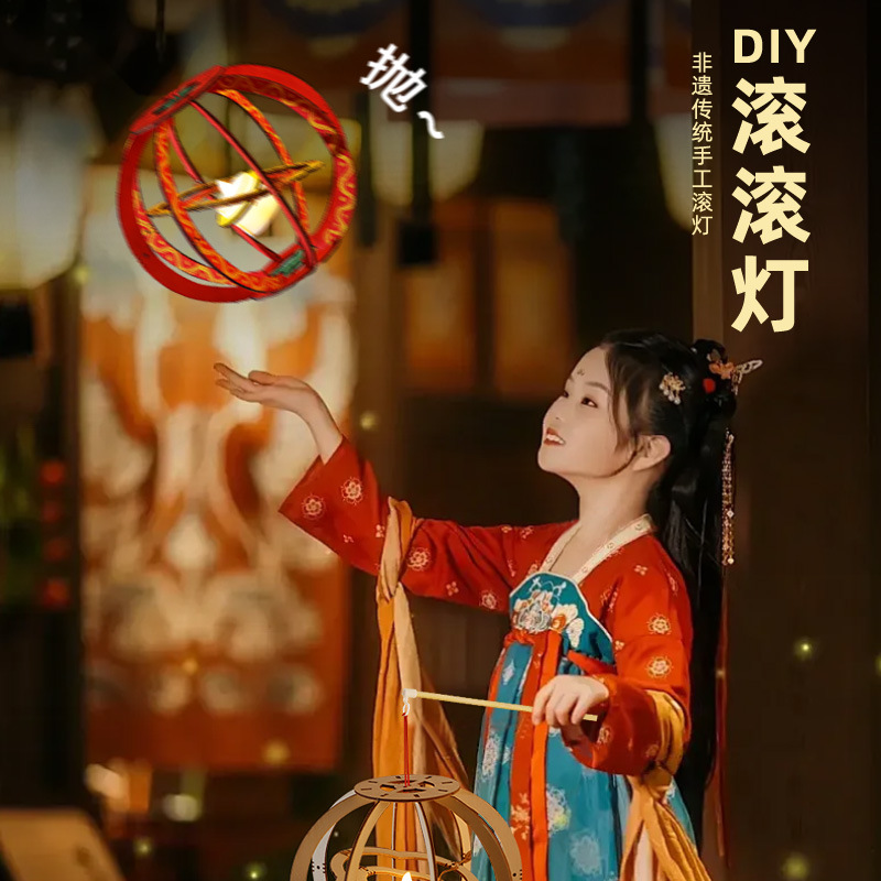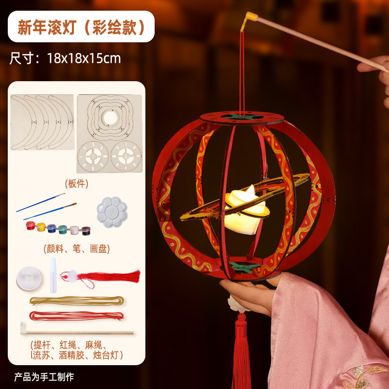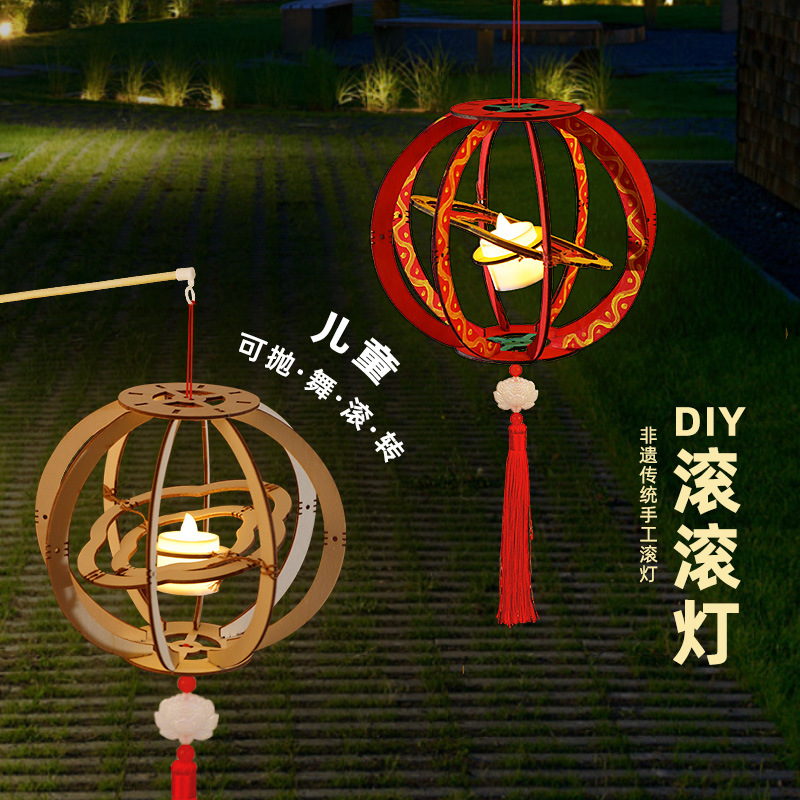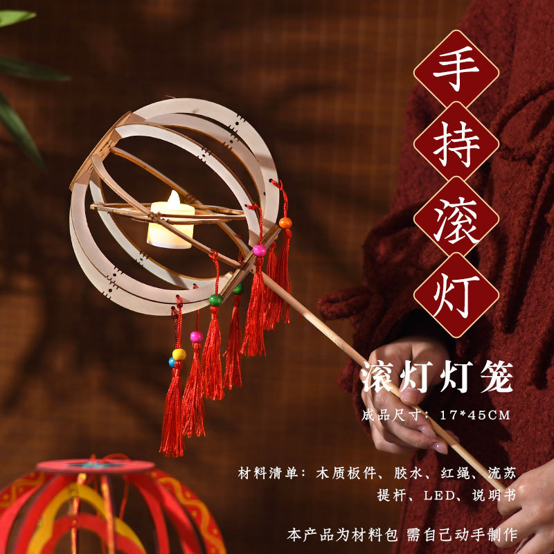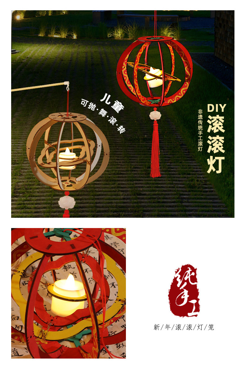 马年非遗滚灯笼新年手工diy传统滚花灯儿童手提古风发光游玩礼物