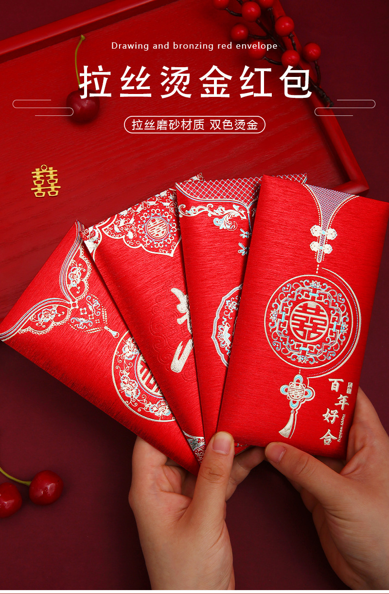 马年新款结婚千元红包婚礼改口喜字加厚利是封金葱烫金磨砂千元封