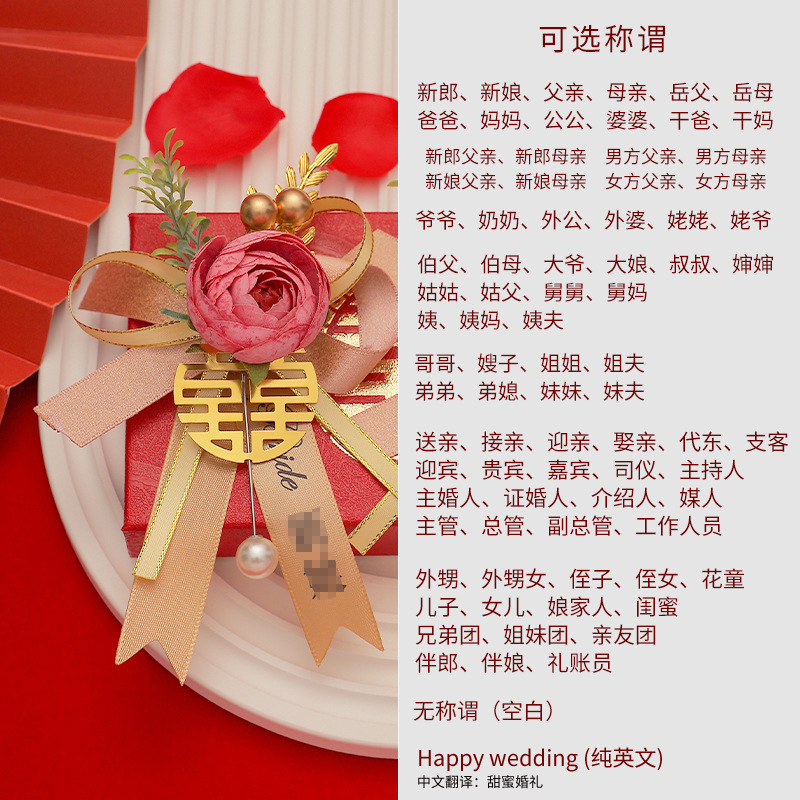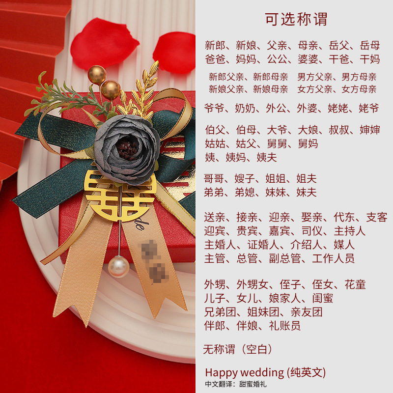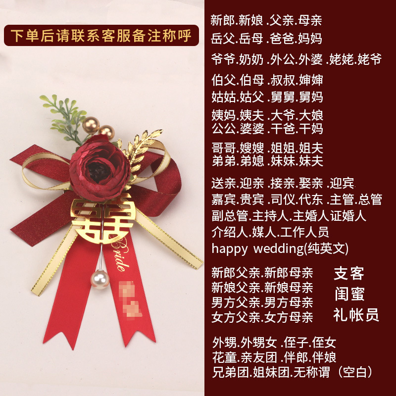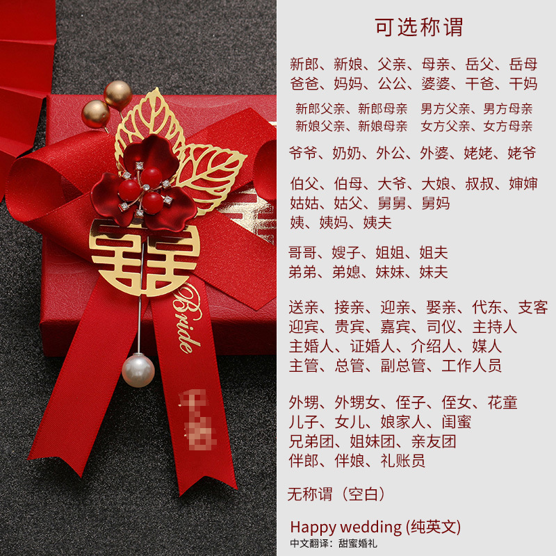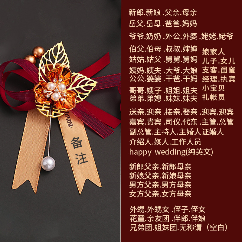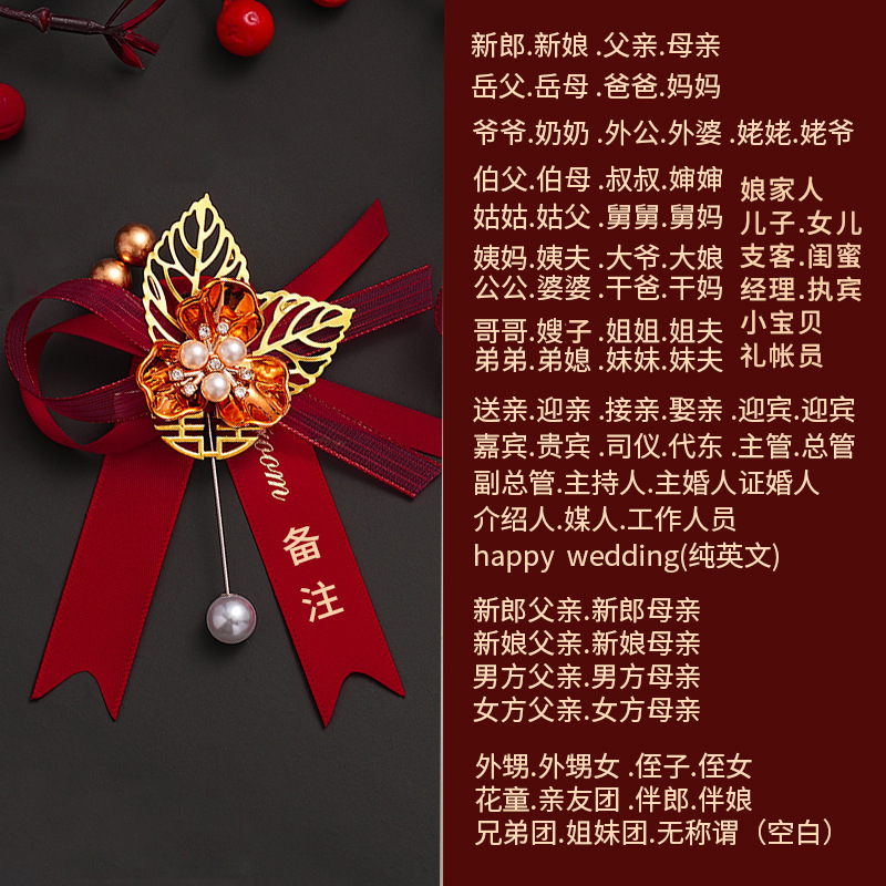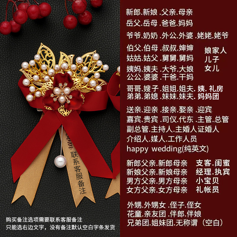 批发代发中式国风新郎新娘结婚胸花婚礼全套家人父亲母亲针扣花秀