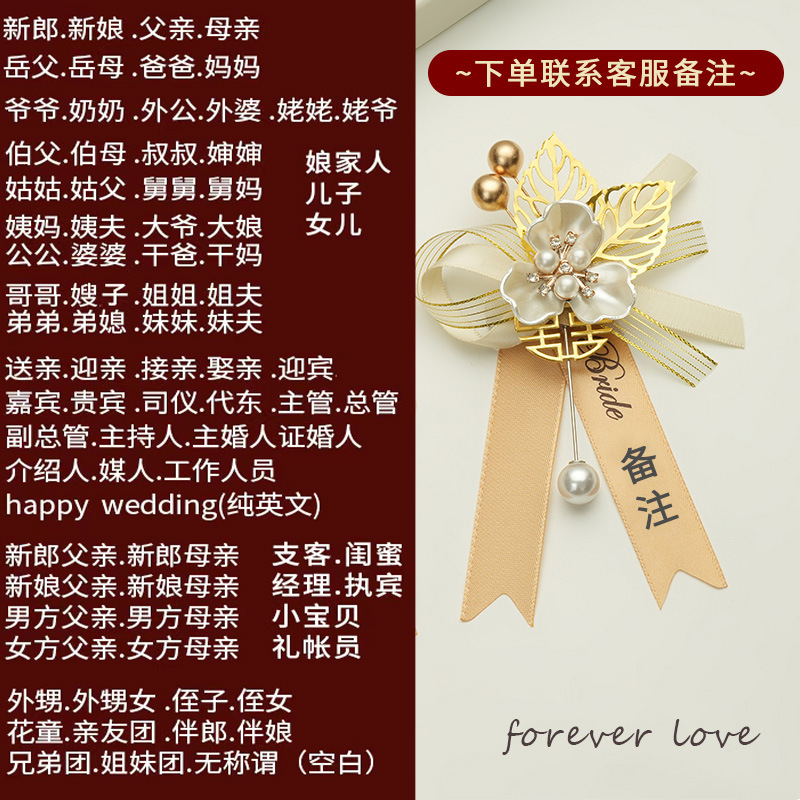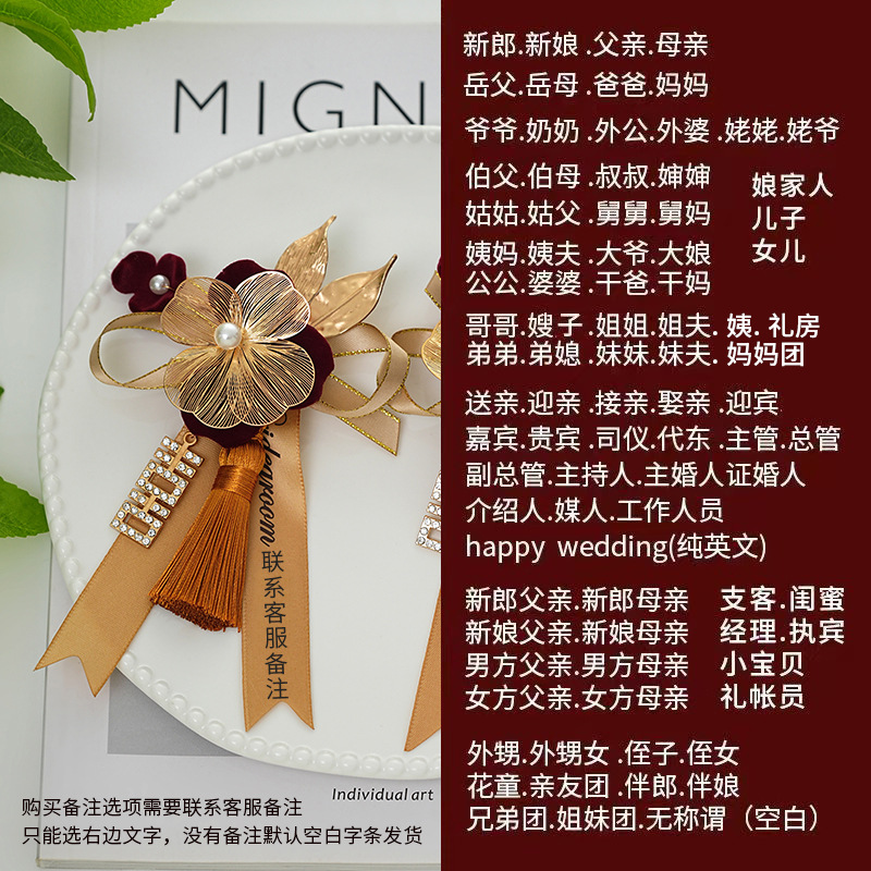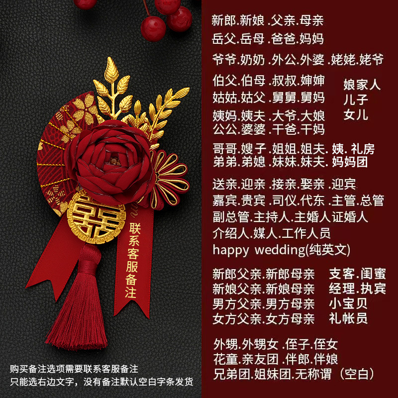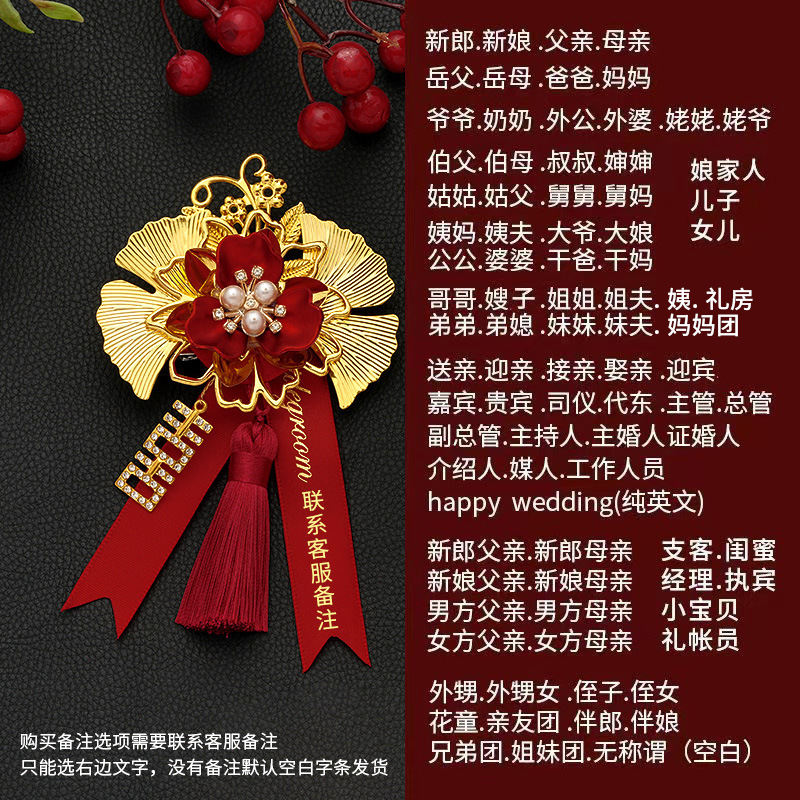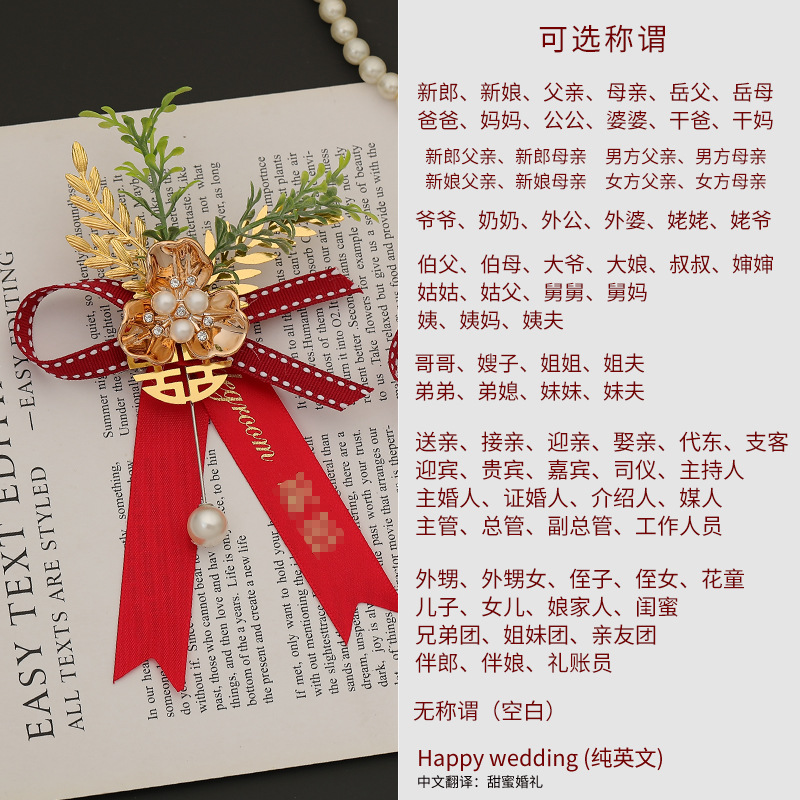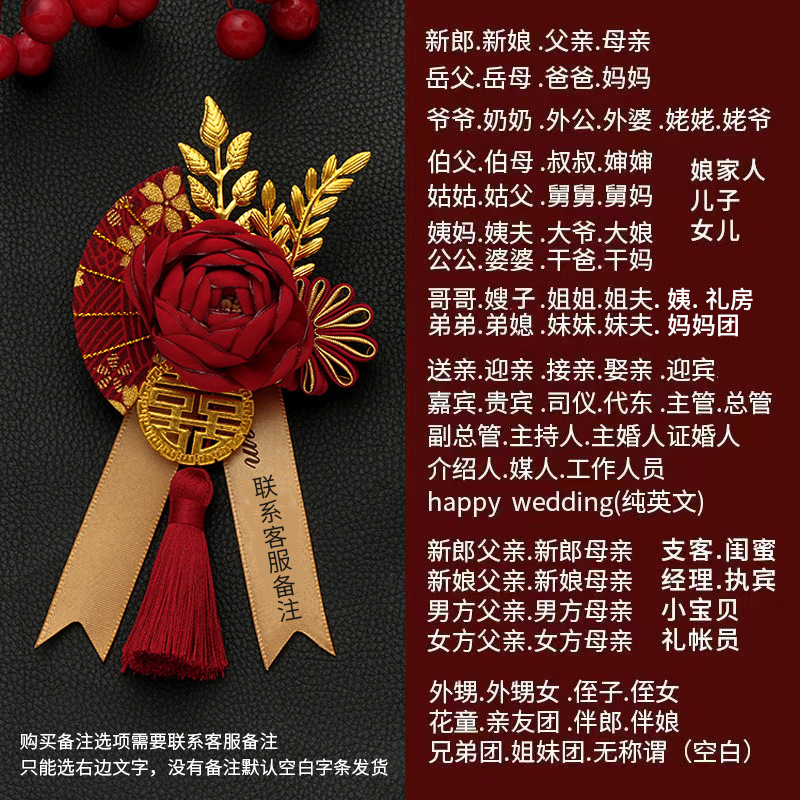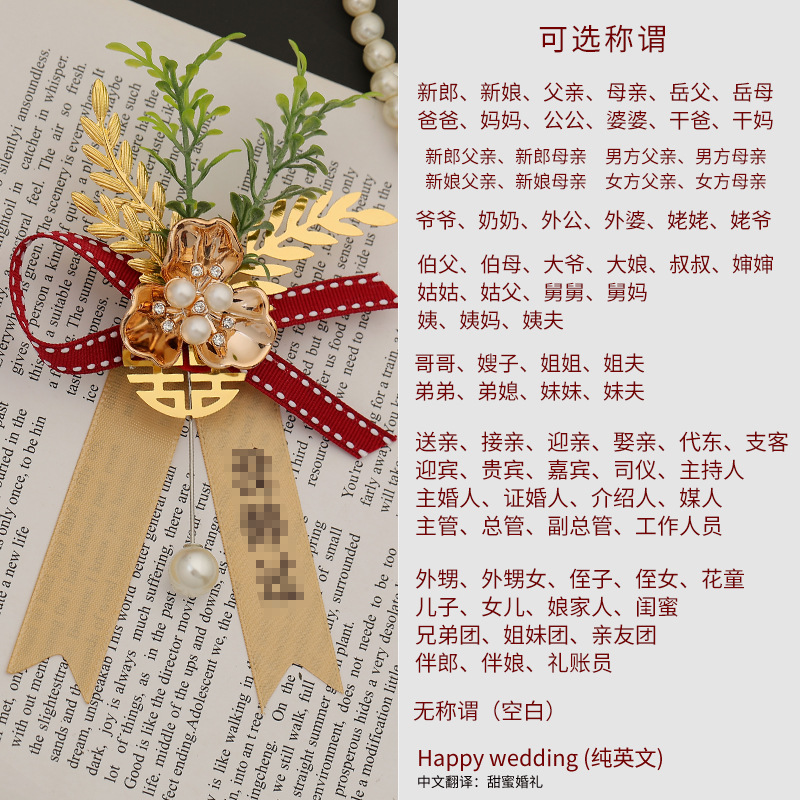 批发代发中式国风新郎新娘结婚胸花婚礼全套家人父亲母亲针扣花秀