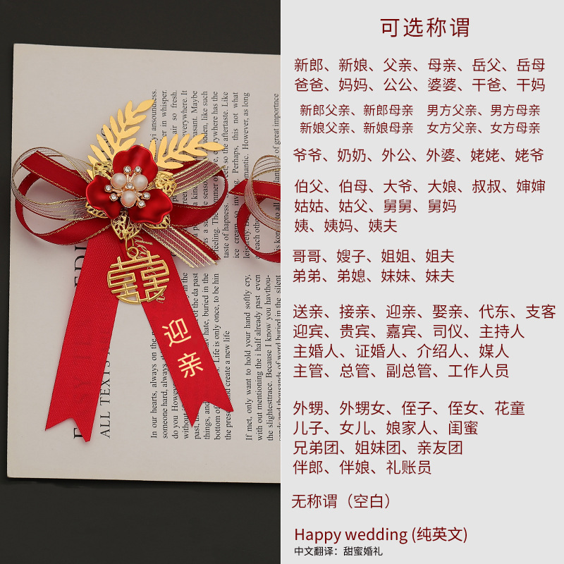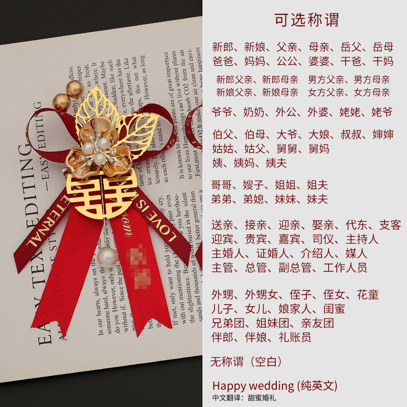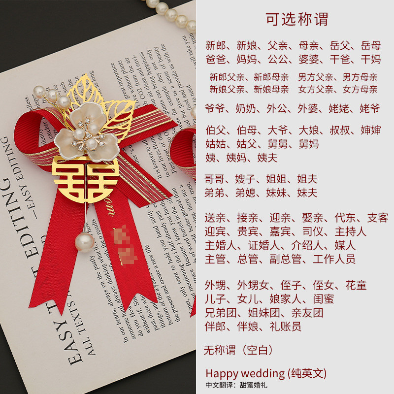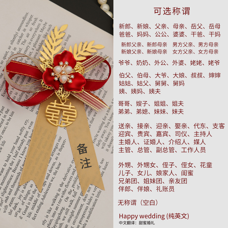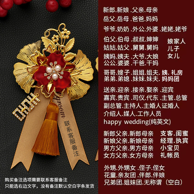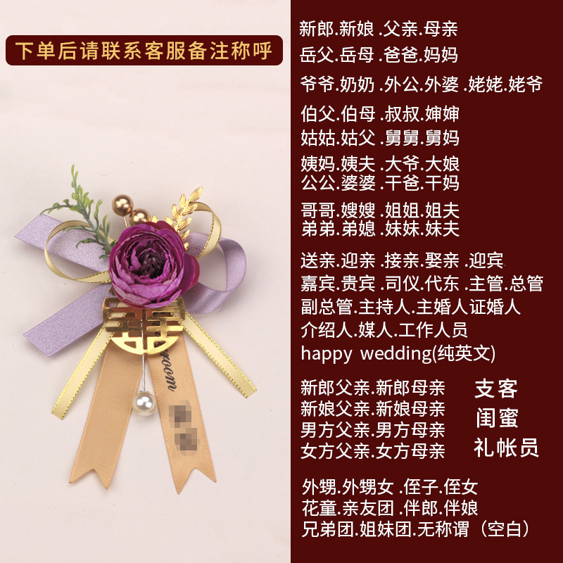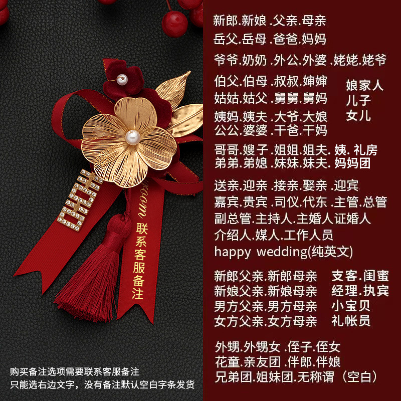 批发代发中式国风新郎新娘结婚胸花婚礼全套家人父亲母亲针扣花秀