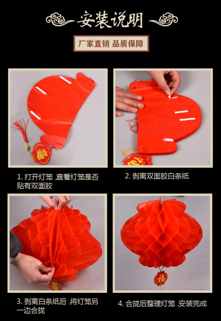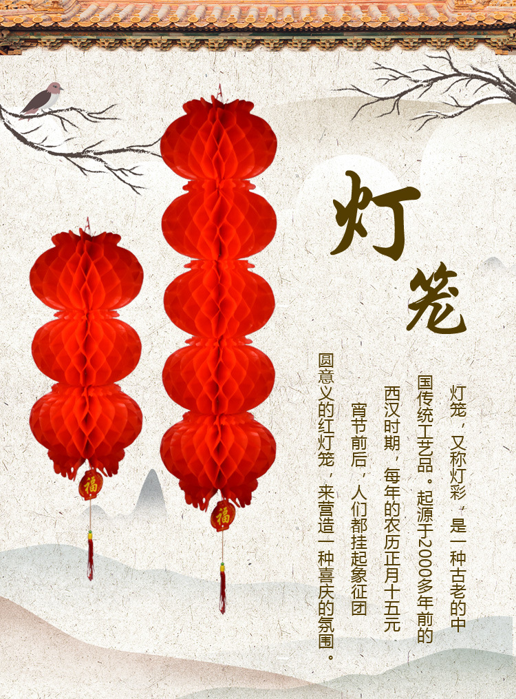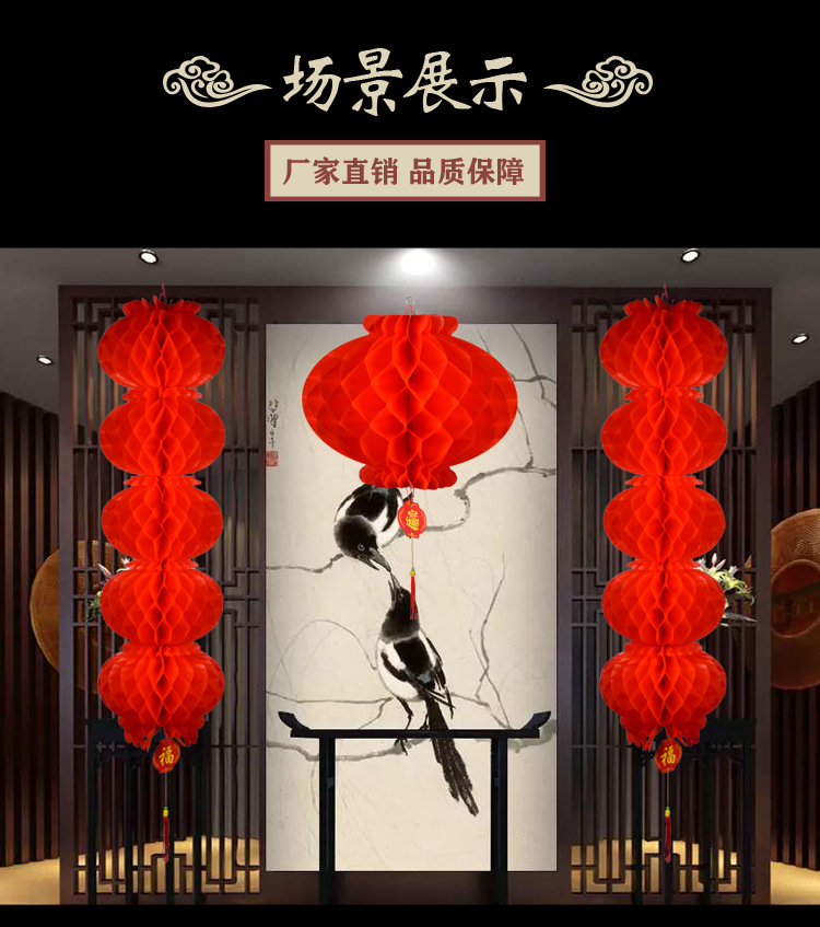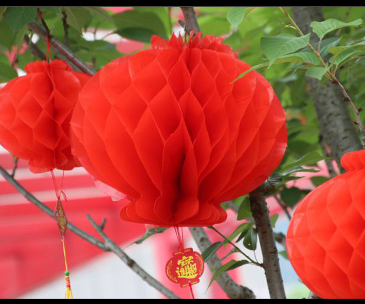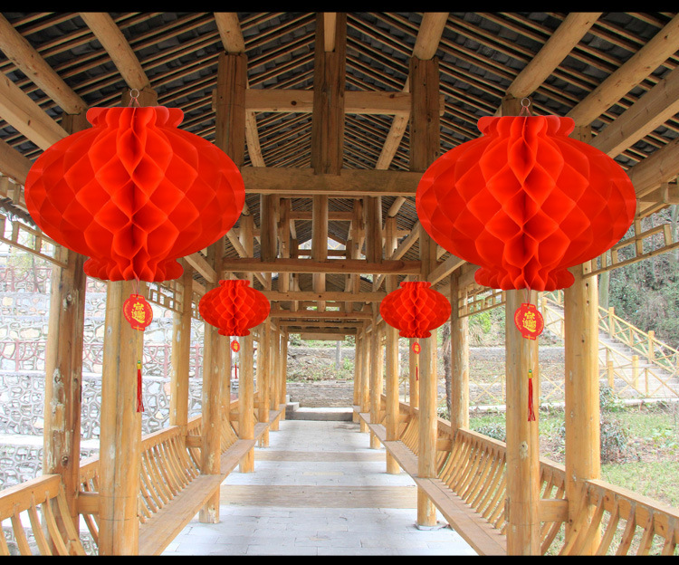 小红灯笼挂饰新年春节大红灯笼蜂窝灯装饰场景布置结婚纸灯笼批发