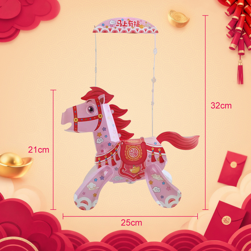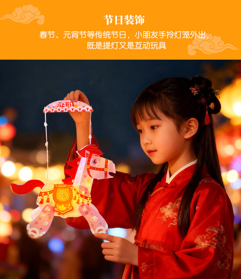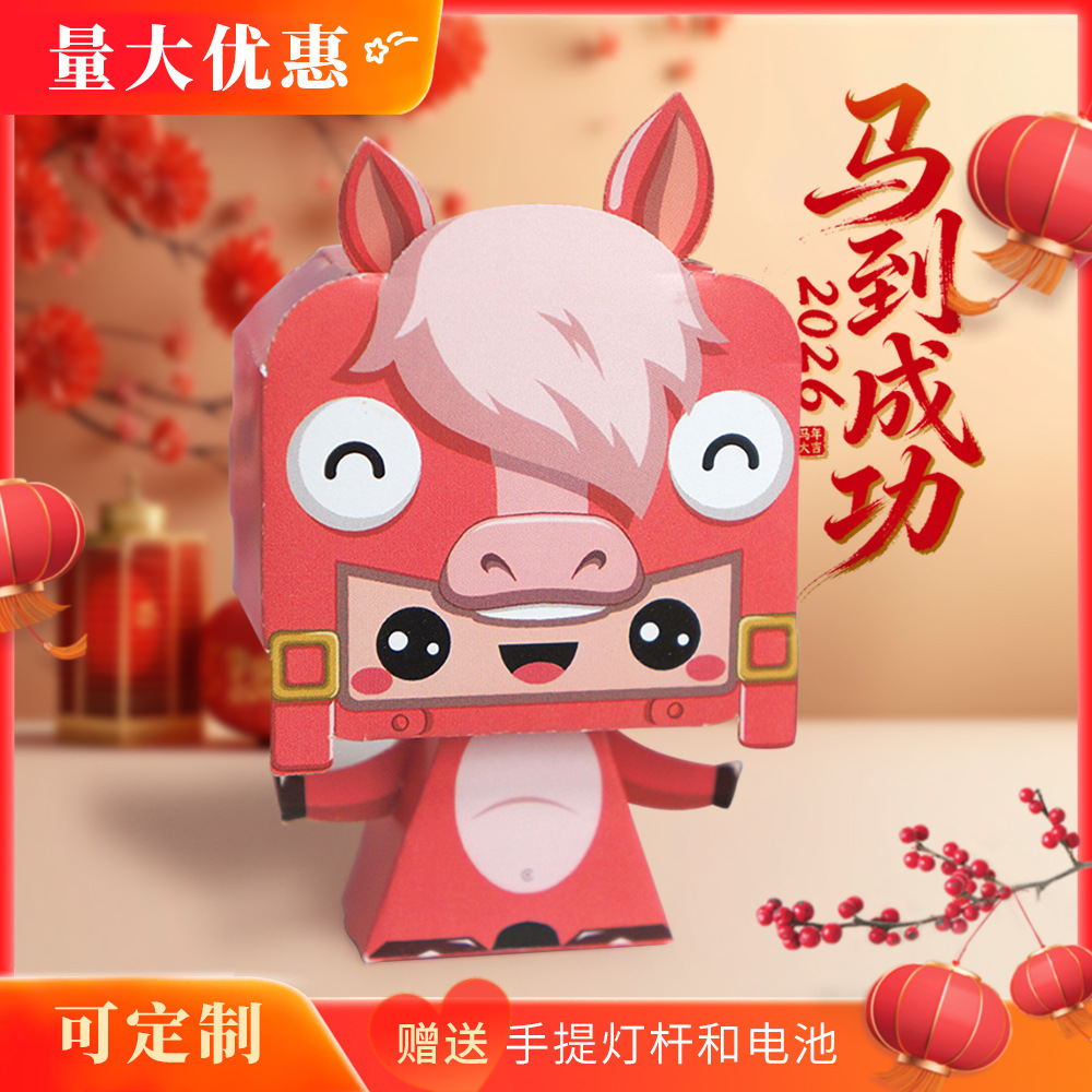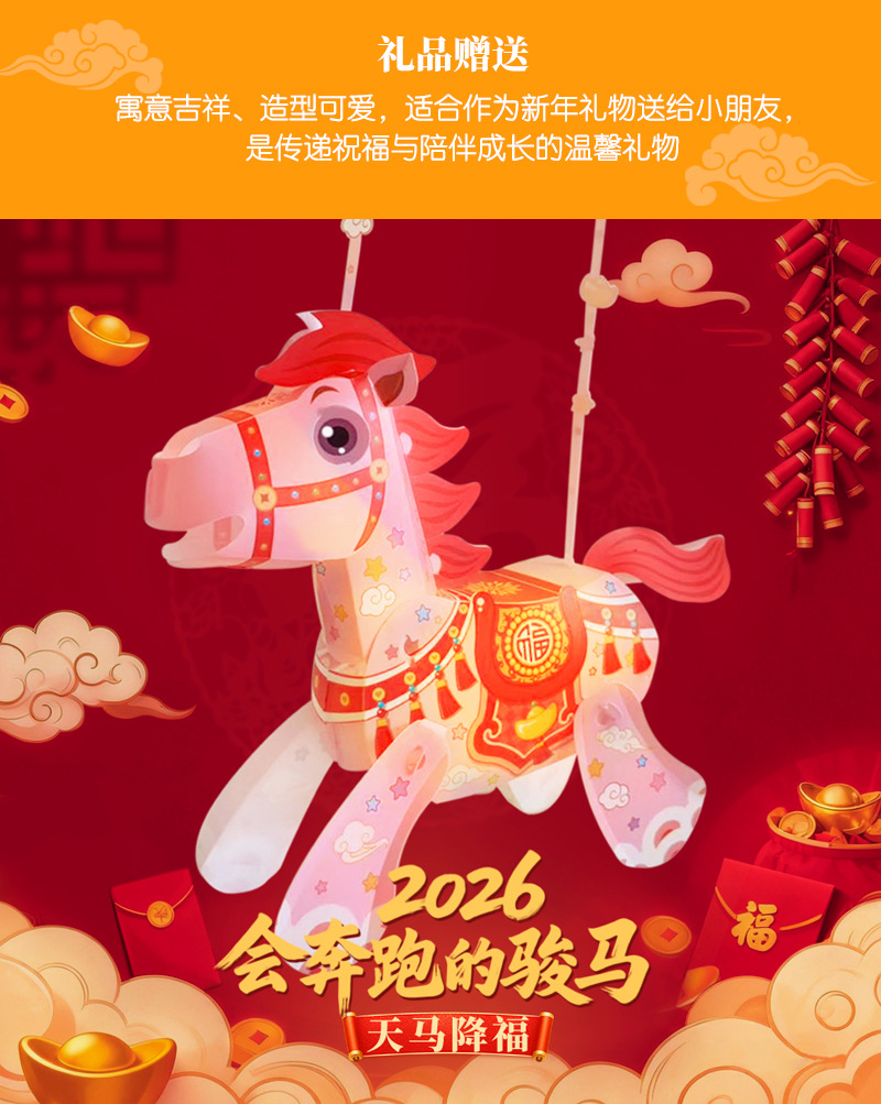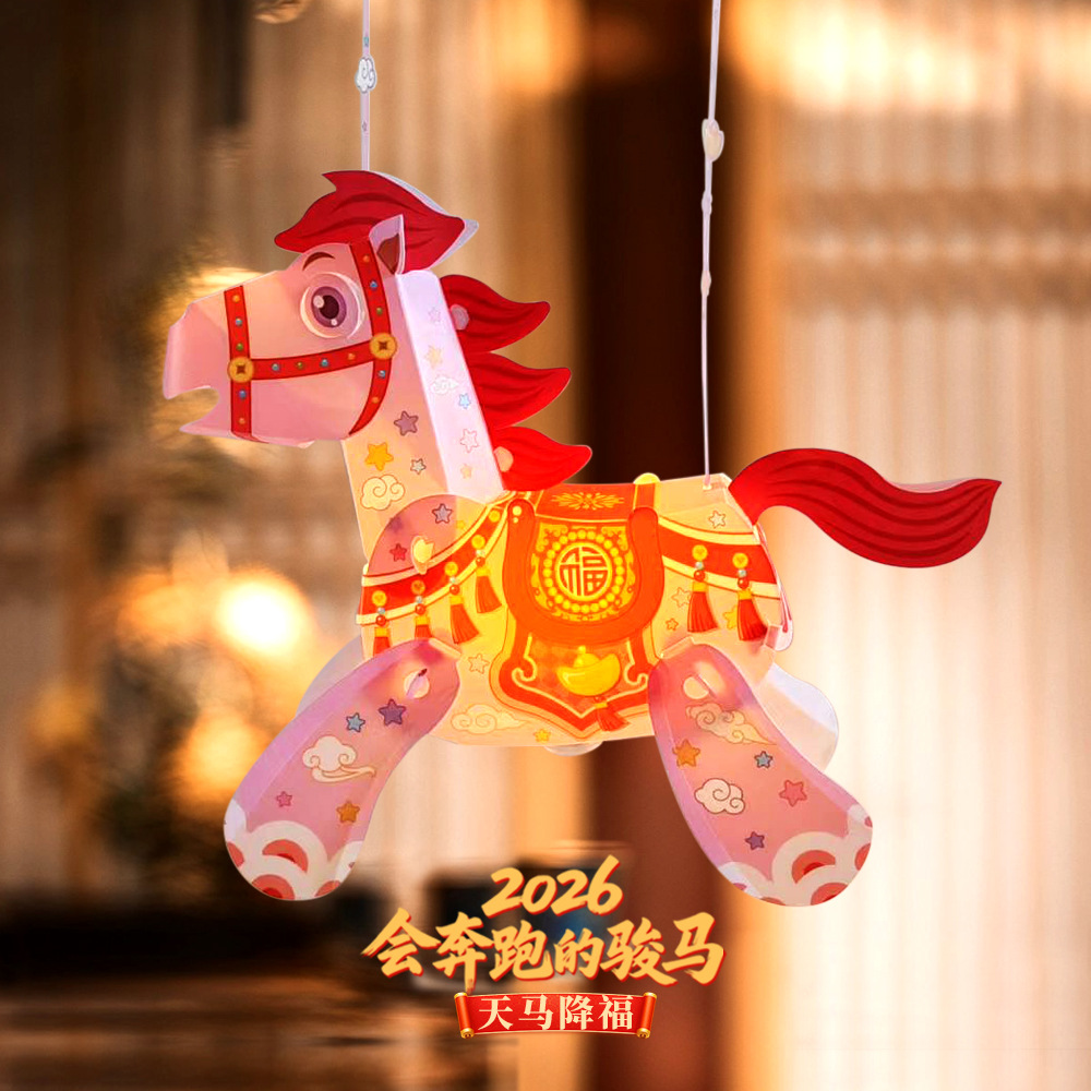 2026年马年春节元宵节新款卡通小马投影手提灯笼手工diy手提灯笼