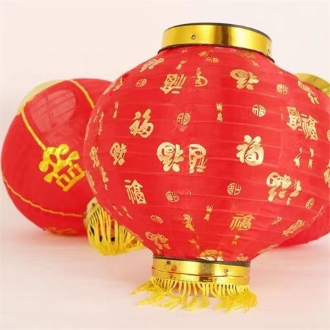 批发跳舞小灯笼古风灯茏防风舞蹈 韩式拉丝折叠大红圆形金条灯笼