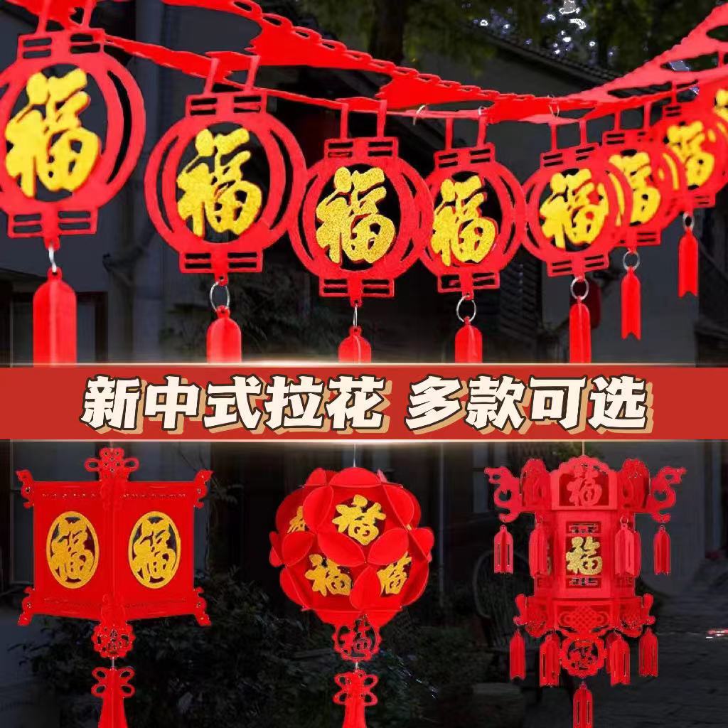 新年灯笼2026马年元旦大红小灯笼植绒无纺布福字春节布置装饰宫灯