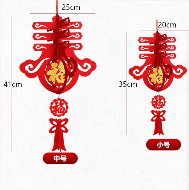 春节无纺布宫灯毛毡灯笼元旦新年装饰福字灯笼绣球春字挂件挂饰