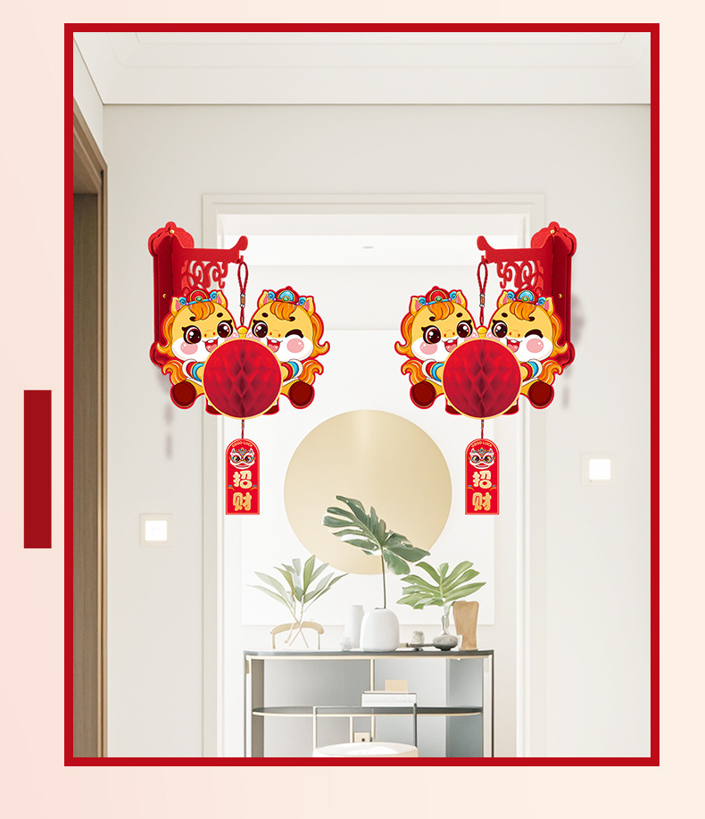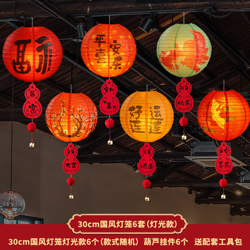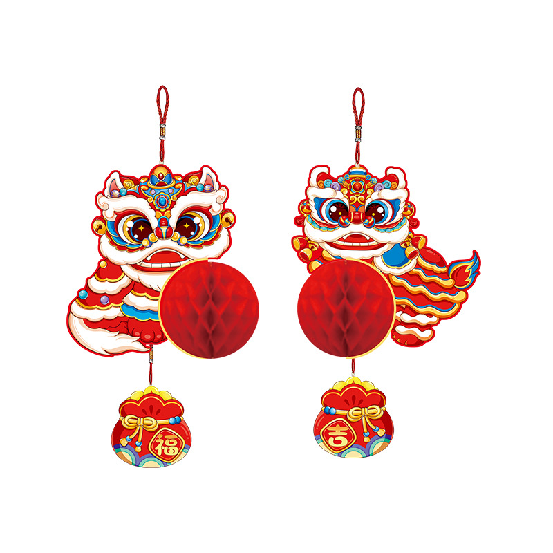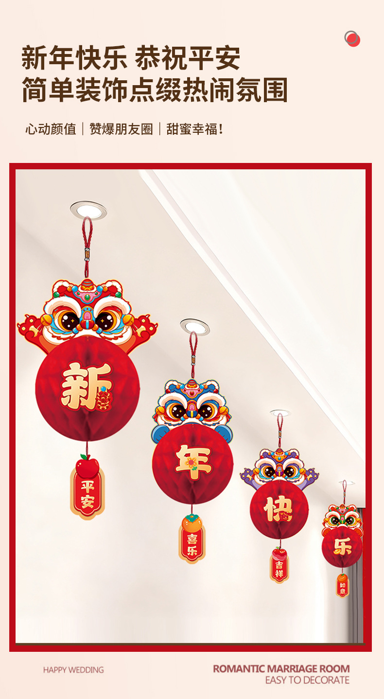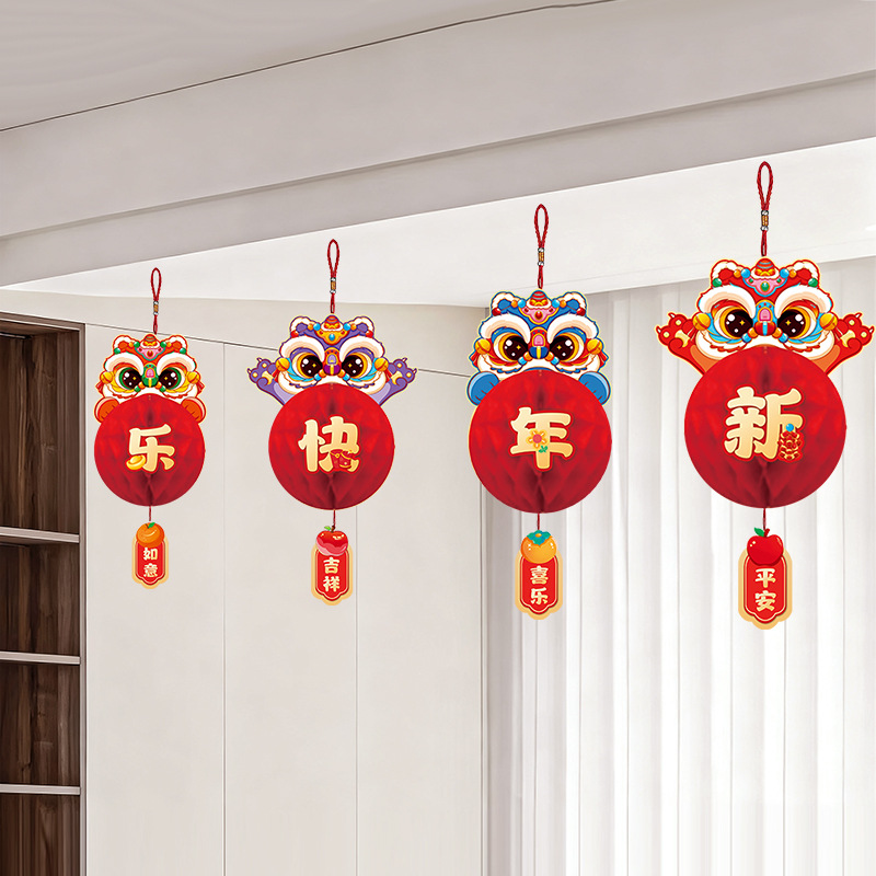 新年纸灯笼装饰马年新款蜂窝挂饰挂件元旦春节商场店铺小灯笼布置