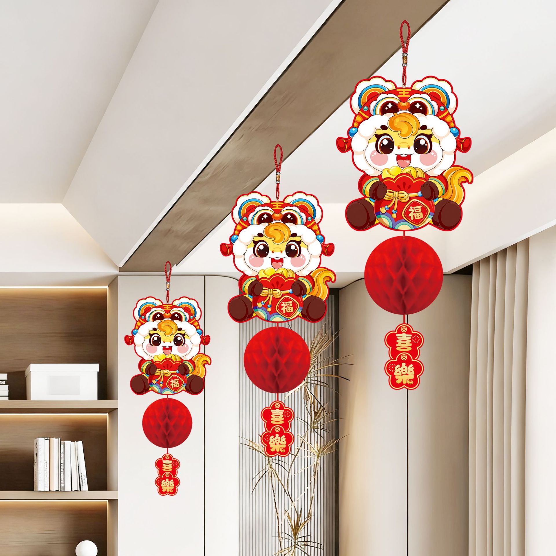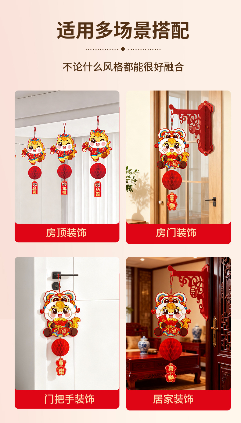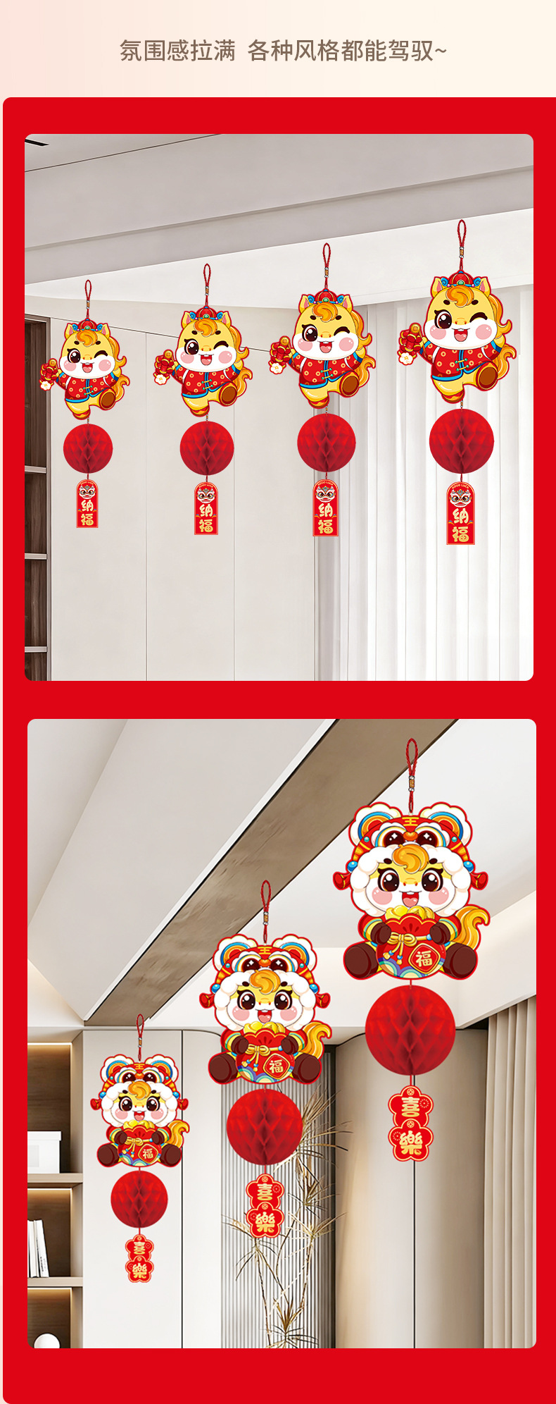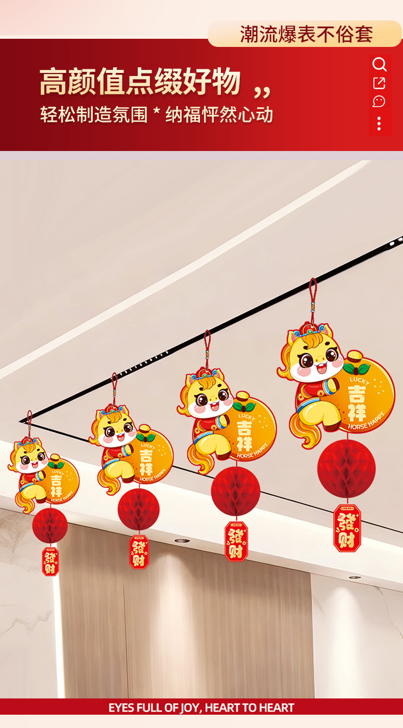 新年纸灯笼装饰马年新款蜂窝挂饰挂件元旦春节商场店铺小灯笼布置