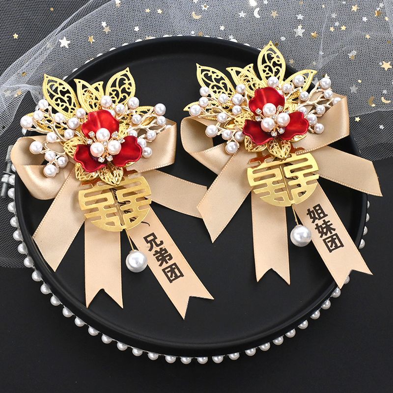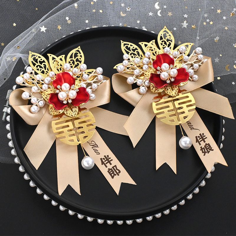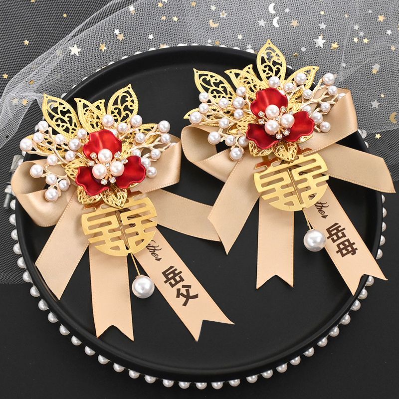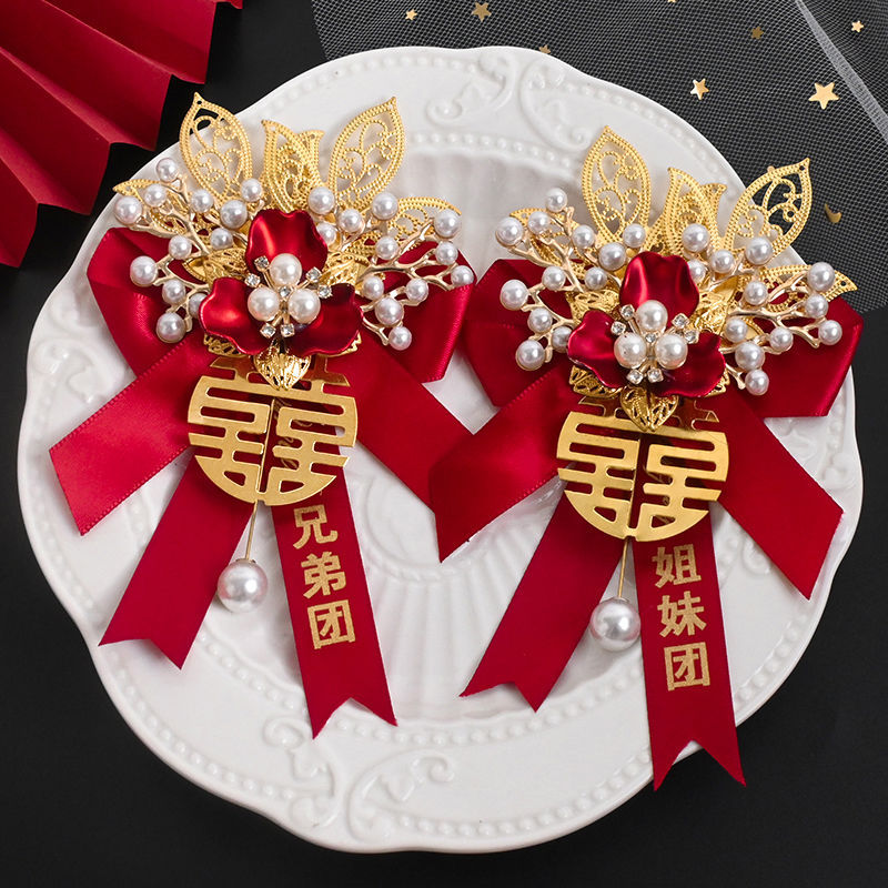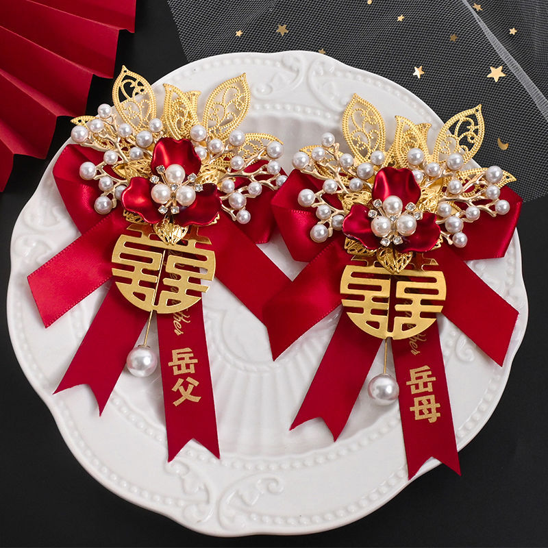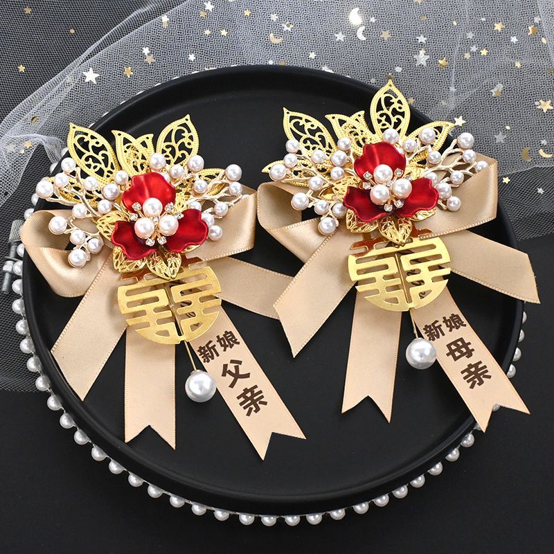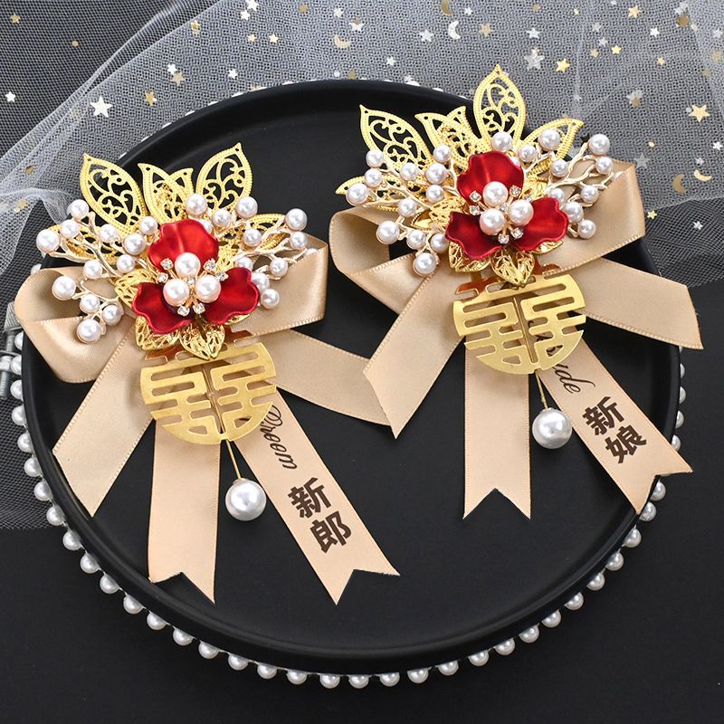 高级感结婚胸花新郎新娘婚礼伴郎伴娘迎亲花父亲母亲仿真襟花胸针