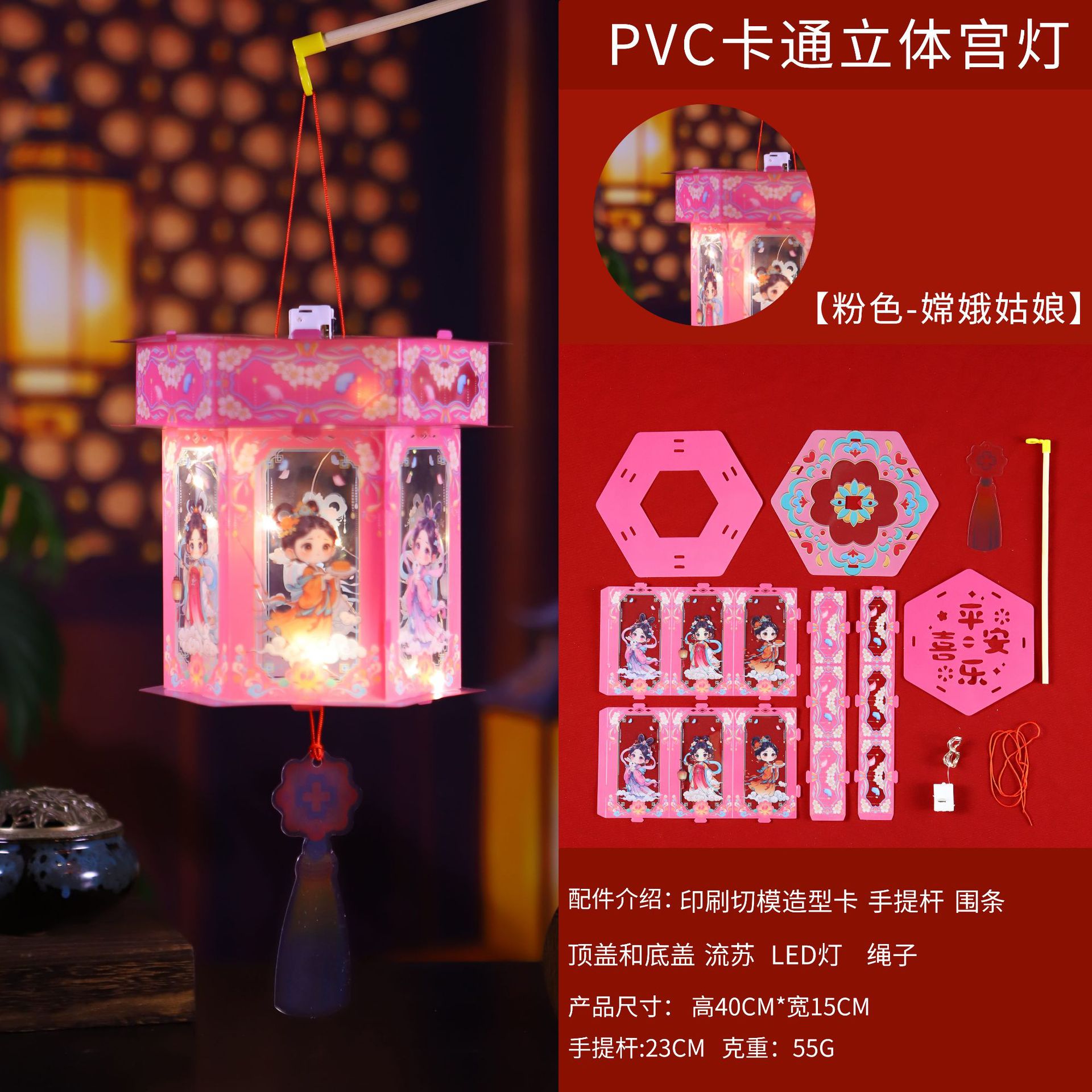 中秋节灯笼古风发光小灯笼儿童手提diy材料包兔子灯花灯宫灯礼品