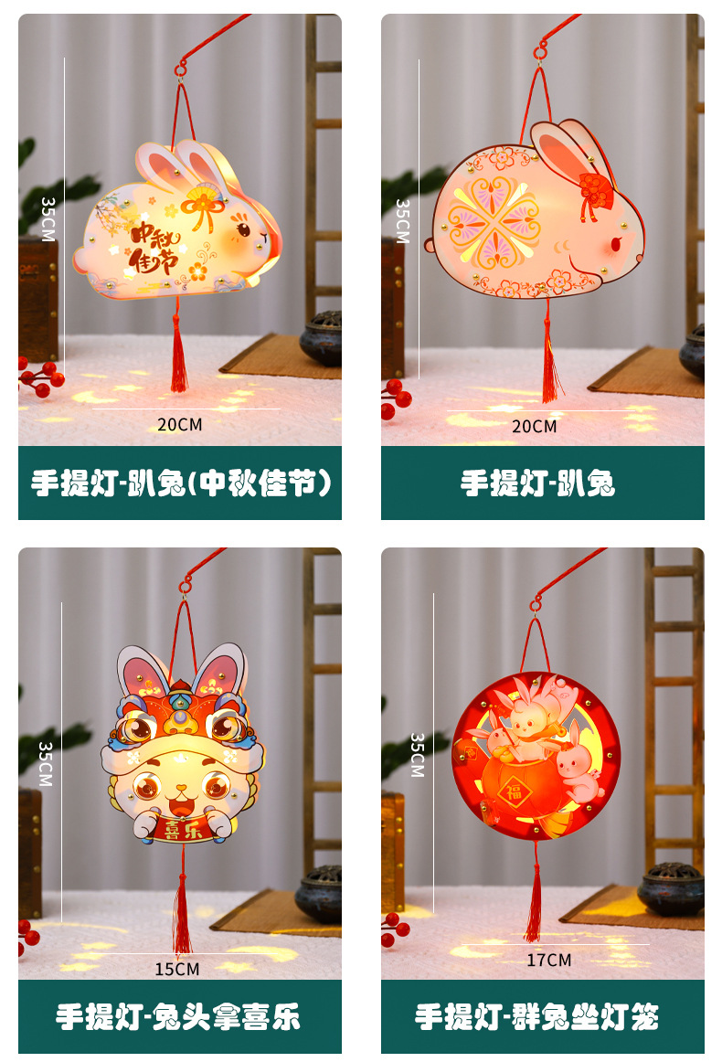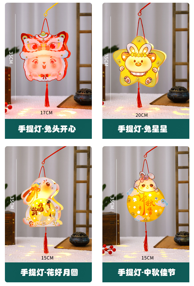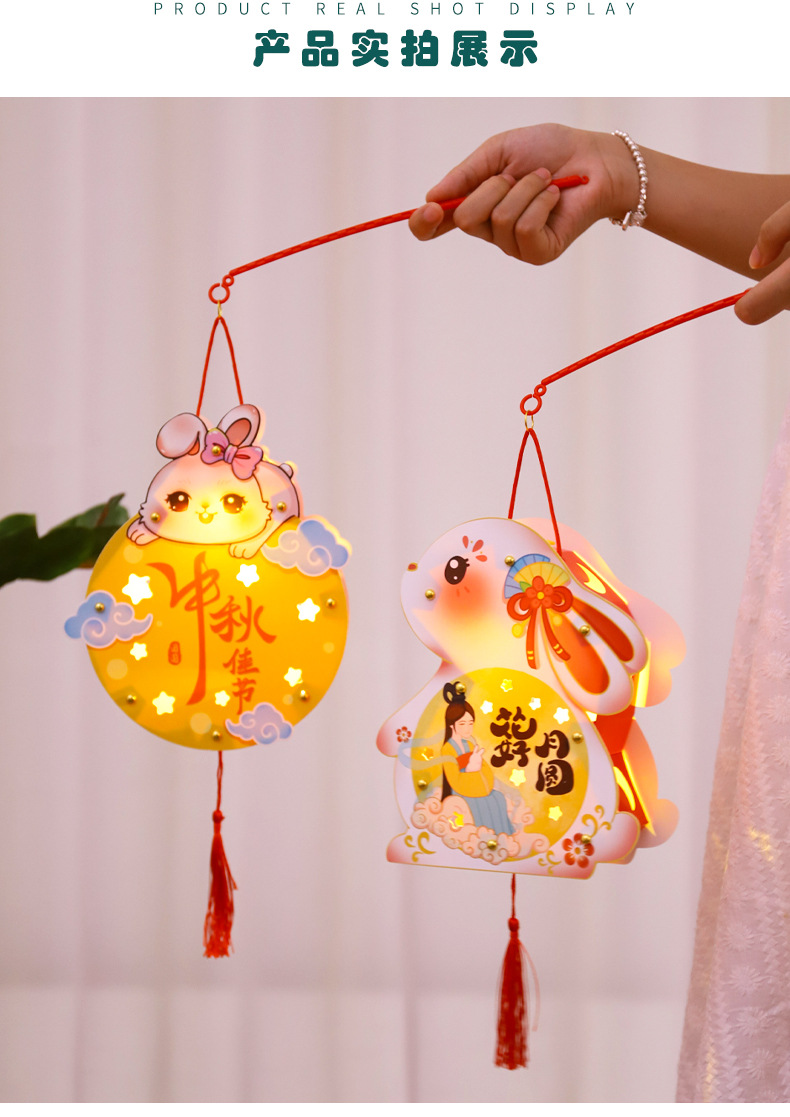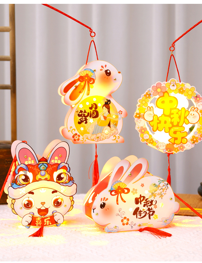 中秋节灯笼手提兔子发光灯笼花灯宫灯儿童diy手工制作材料包厂家