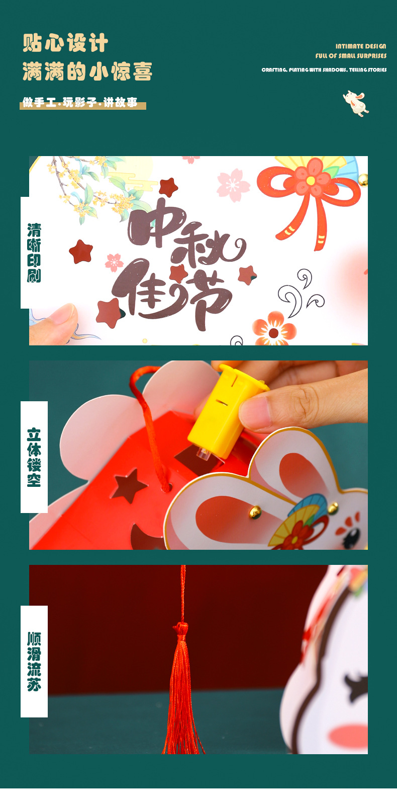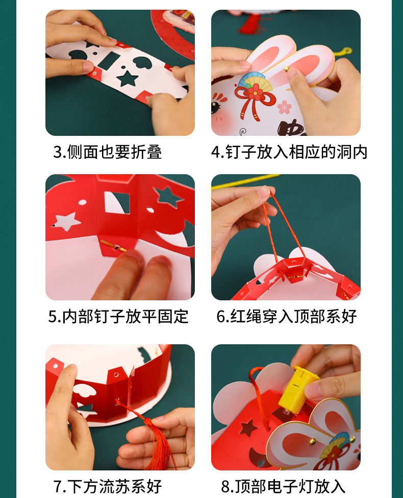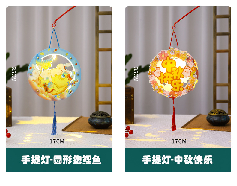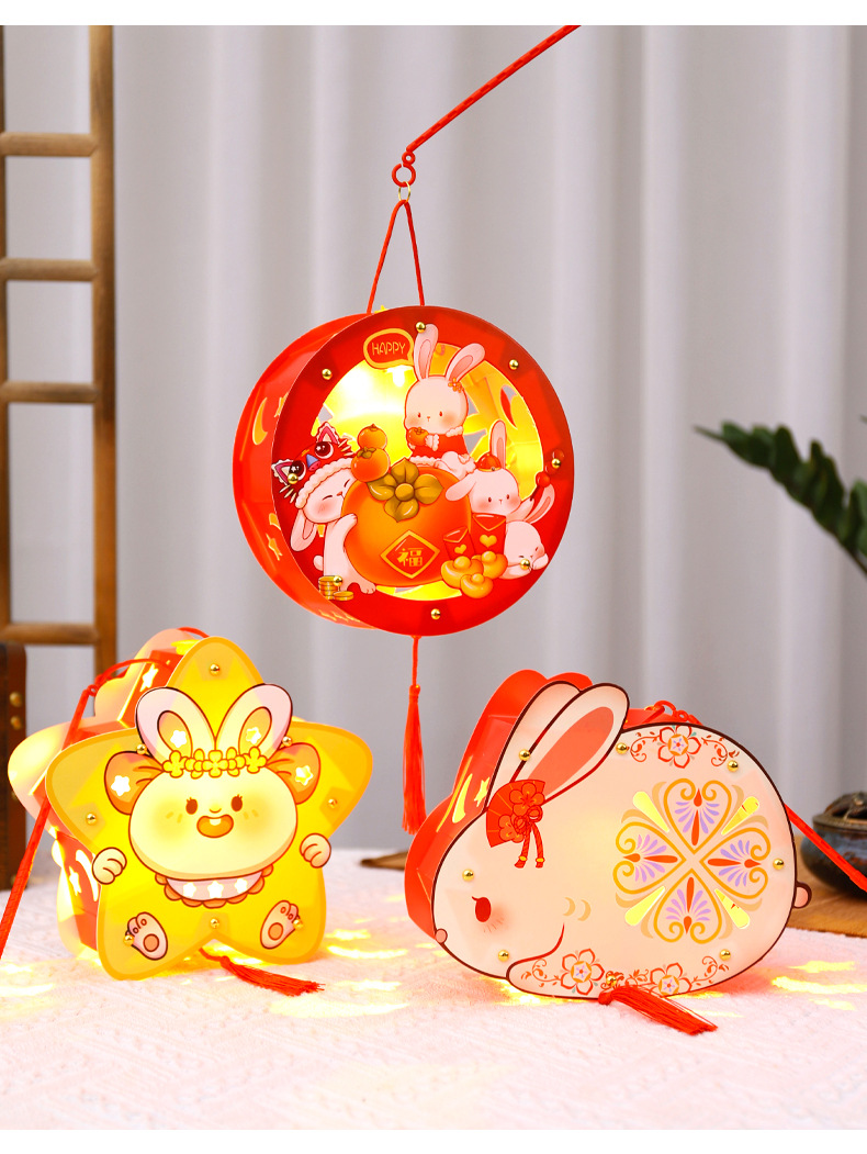 中秋节灯笼手提兔子发光灯笼花灯宫灯儿童diy手工制作材料包厂家